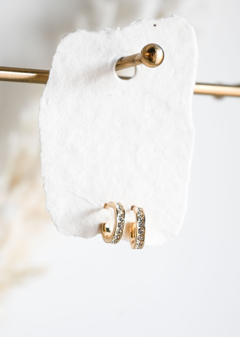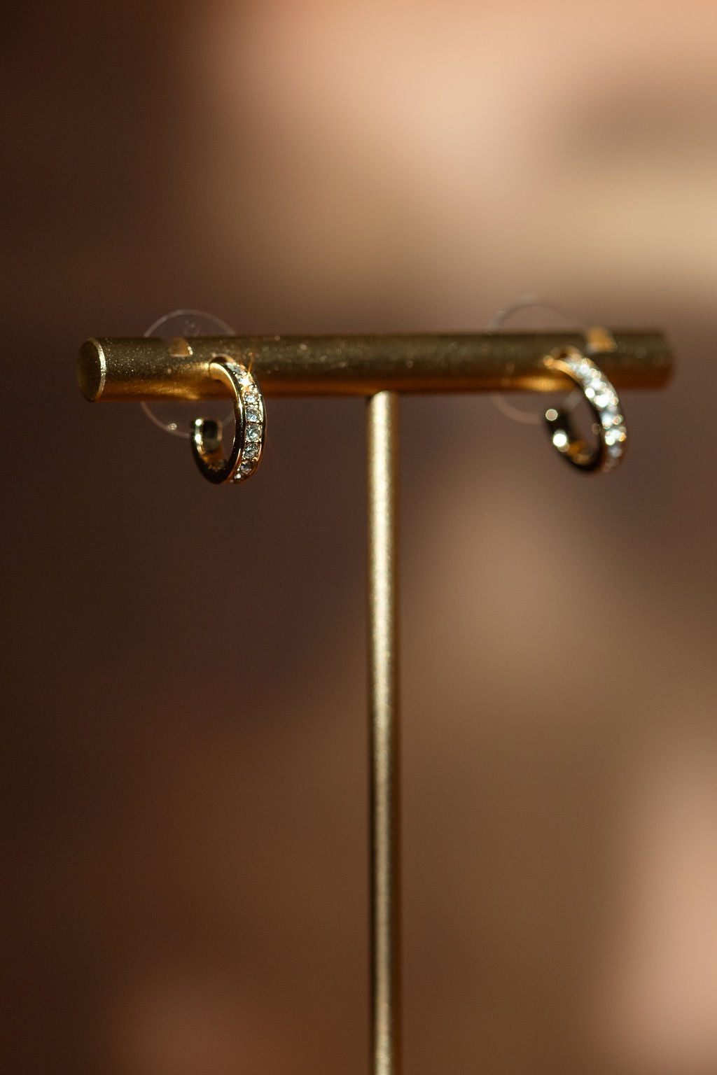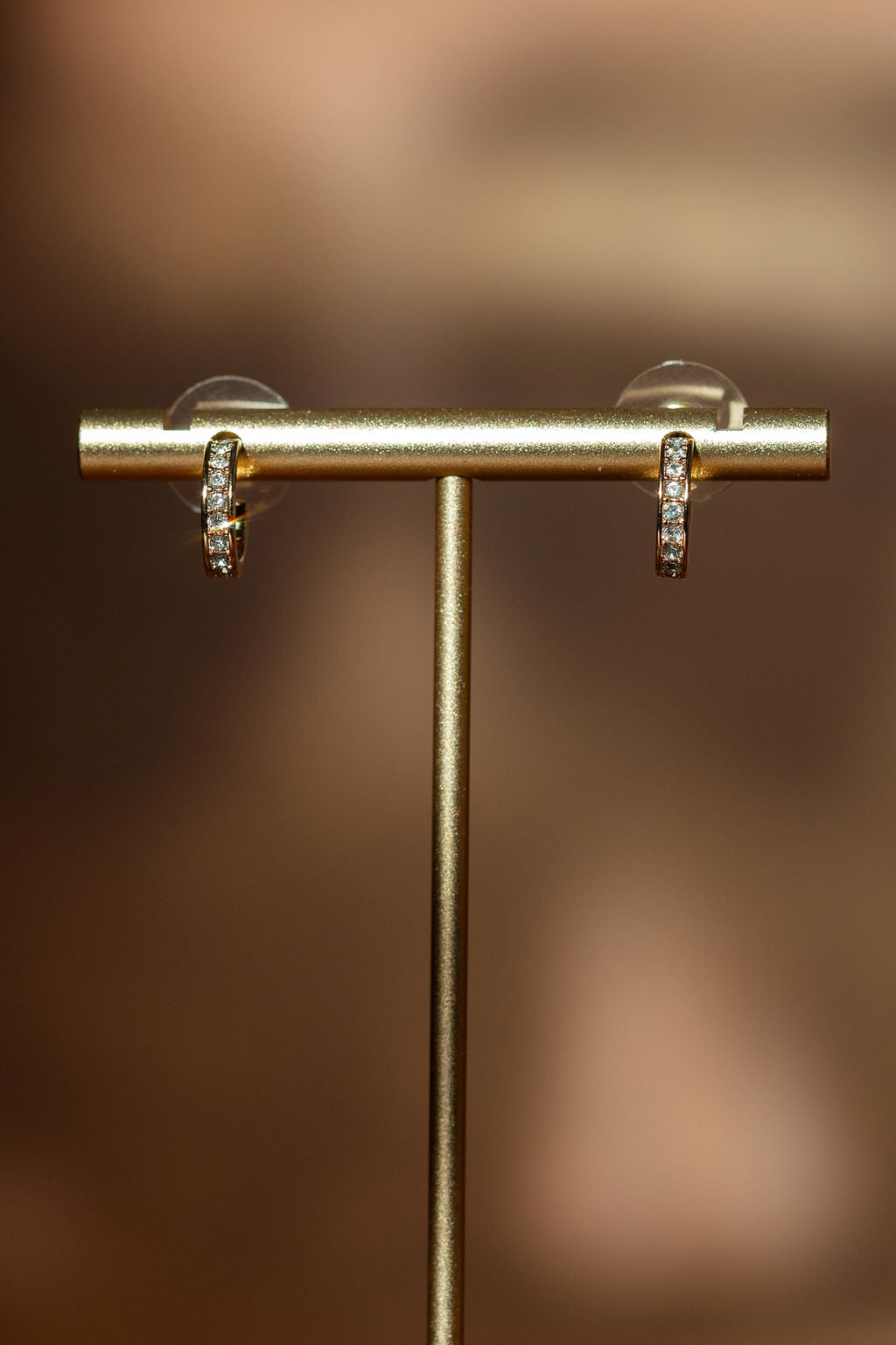 Get ready to add some sparkle to your wardrobe with our Gold Cubic Zirconia Lined Hoops! These playful hoops are perfect for adding a touch of fun and glamour to any outfit. Made with gold-plated metal and lined with sparkling cubic zirconia, these earrings are sure to be a hit.