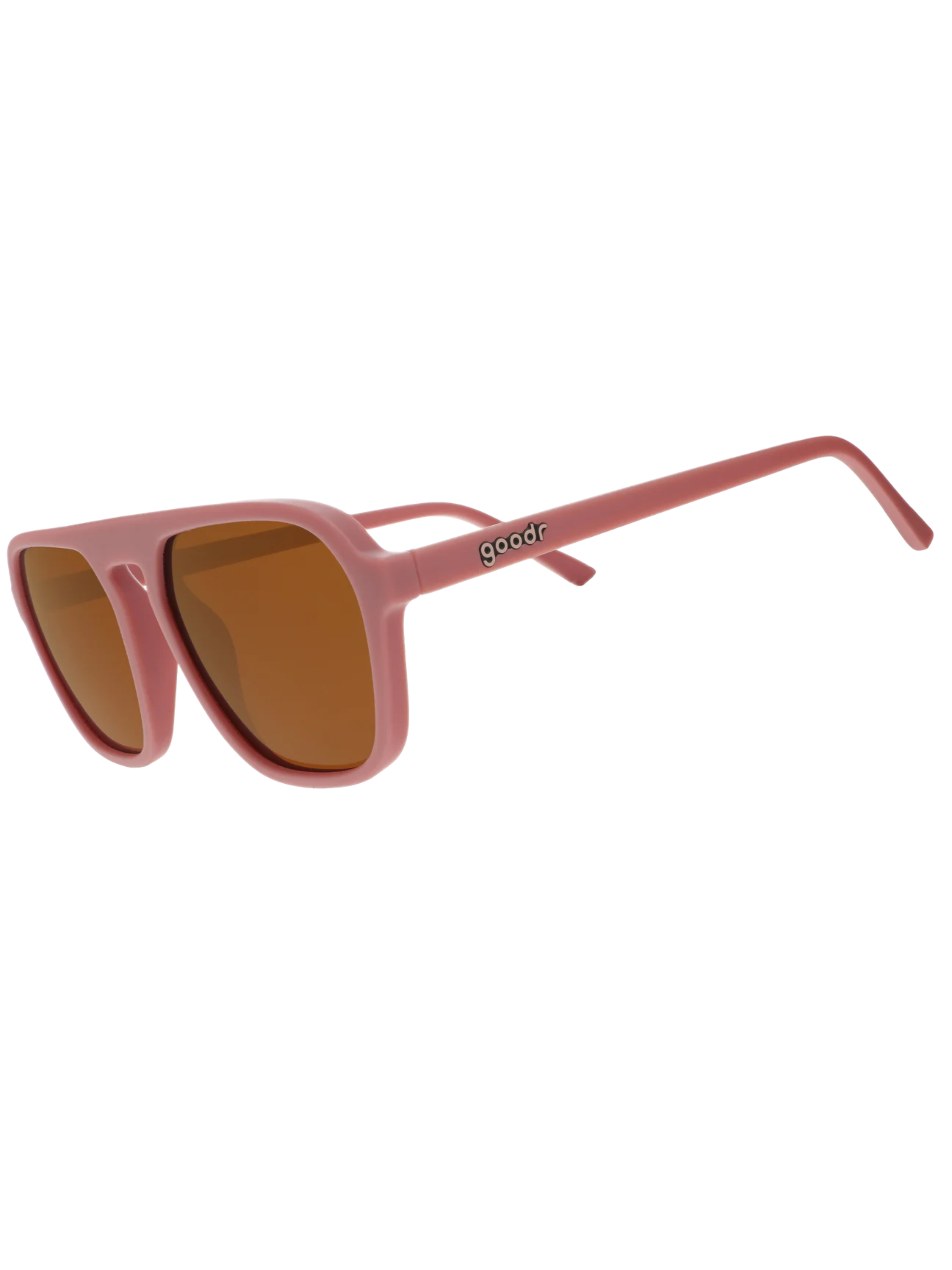 Threaten everyone with a good time with these light pink vintage-inspired square aviator frames with brown, non-reflective lenses. Won't slip or bounce while you hustle at the roller rink like it's 1979. It's like everything is new again.