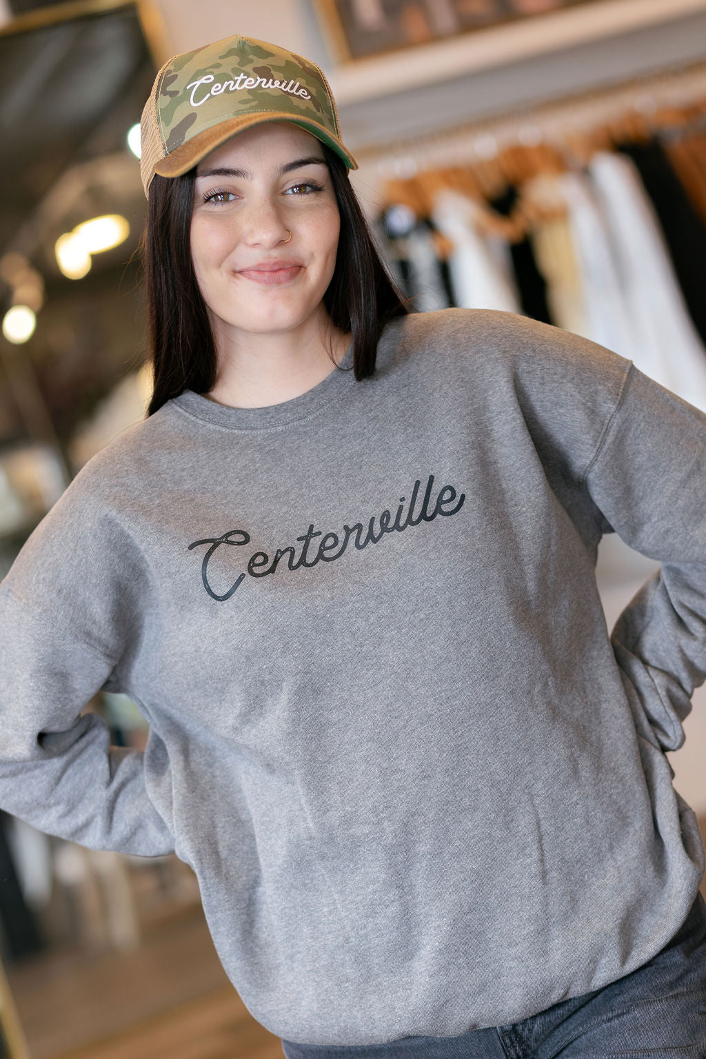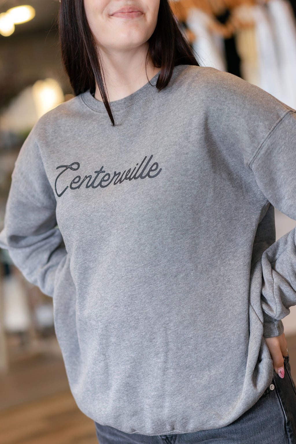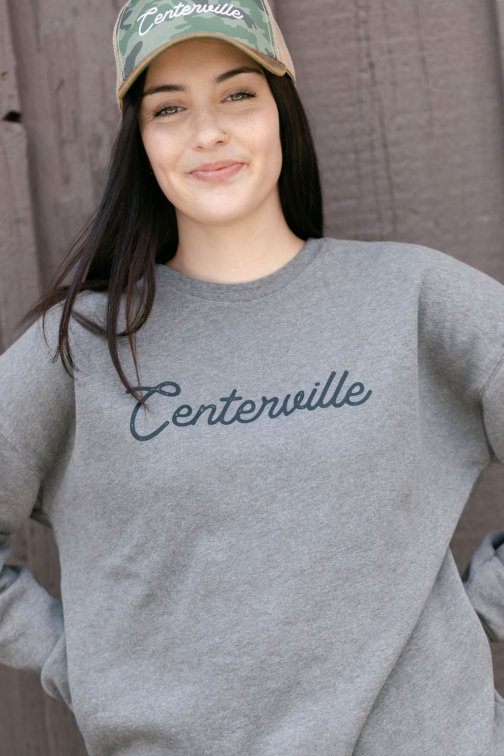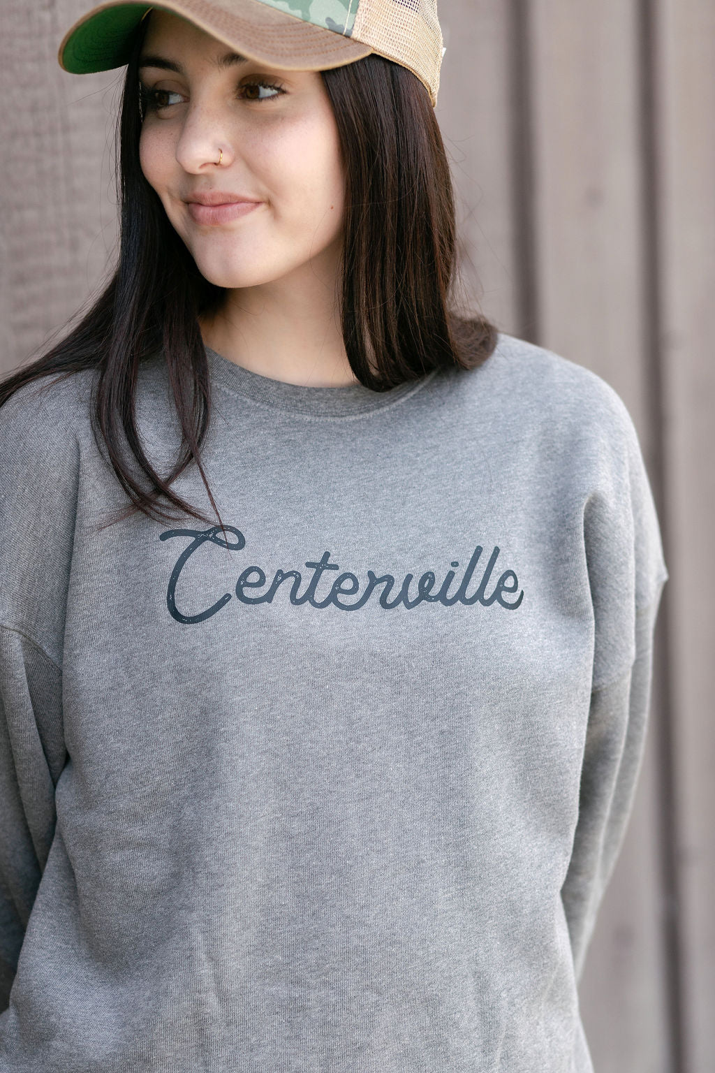 Adult | Centerville Script Grey Unisex Crew Sweatshirt