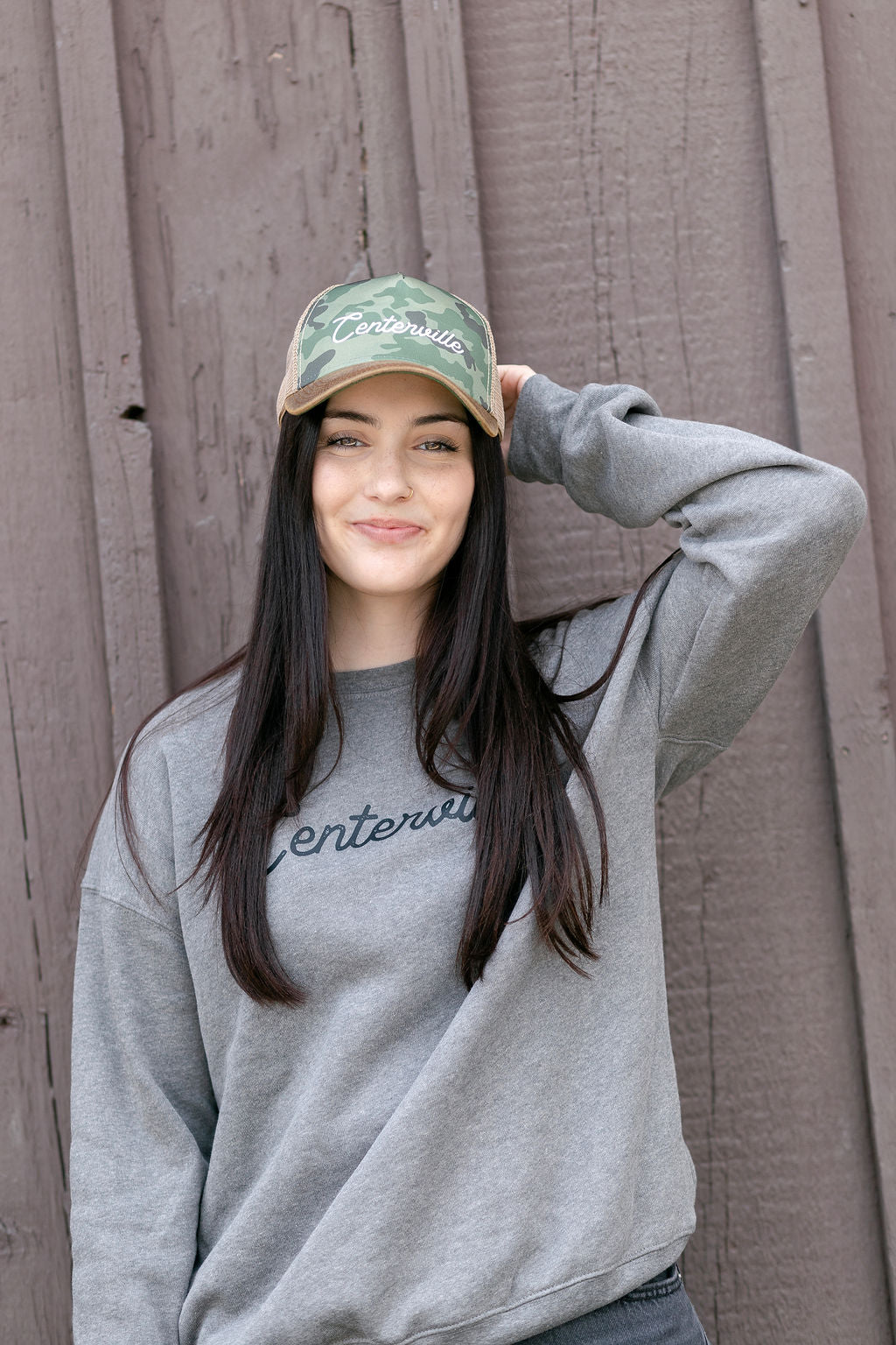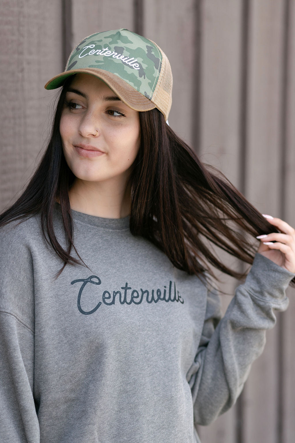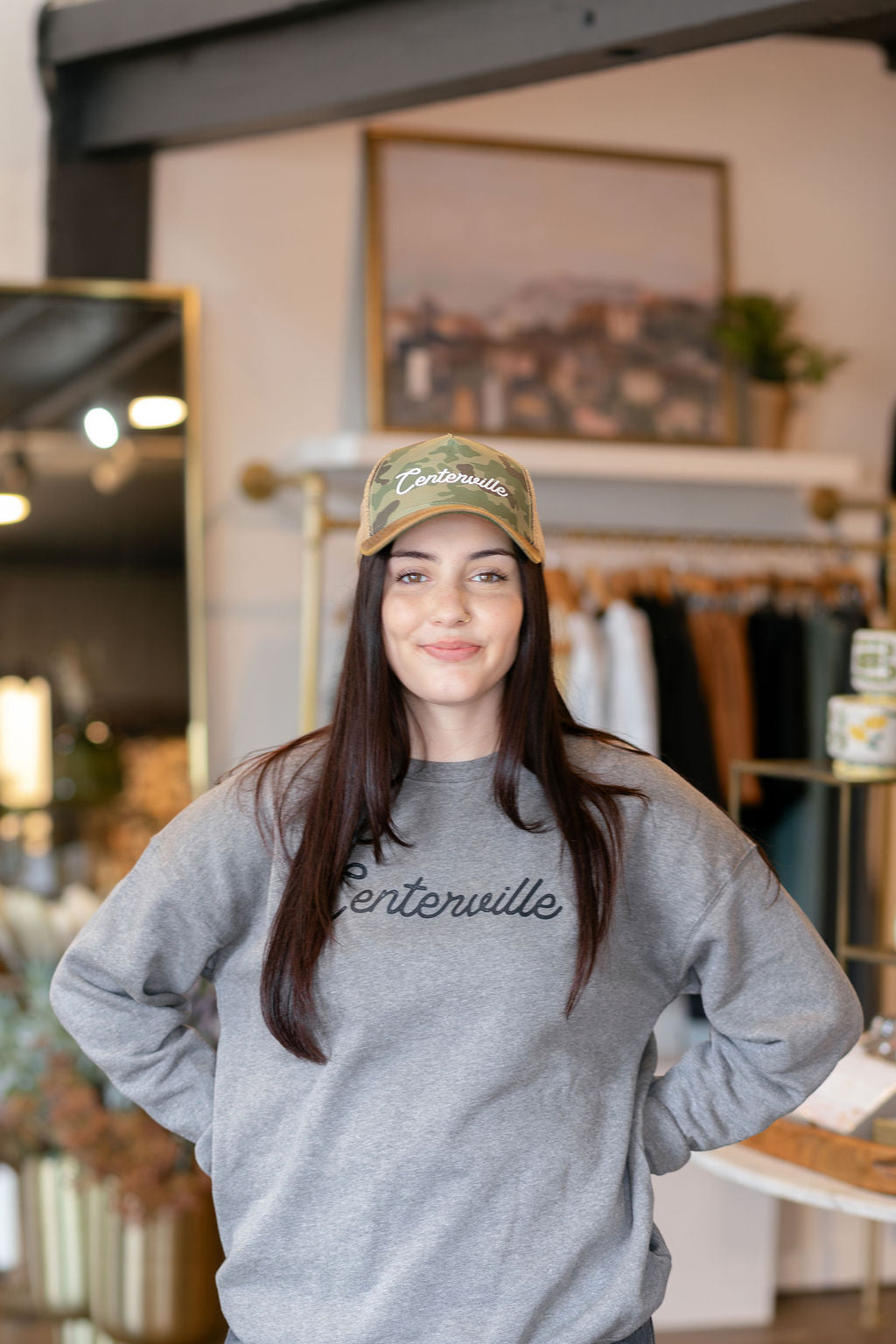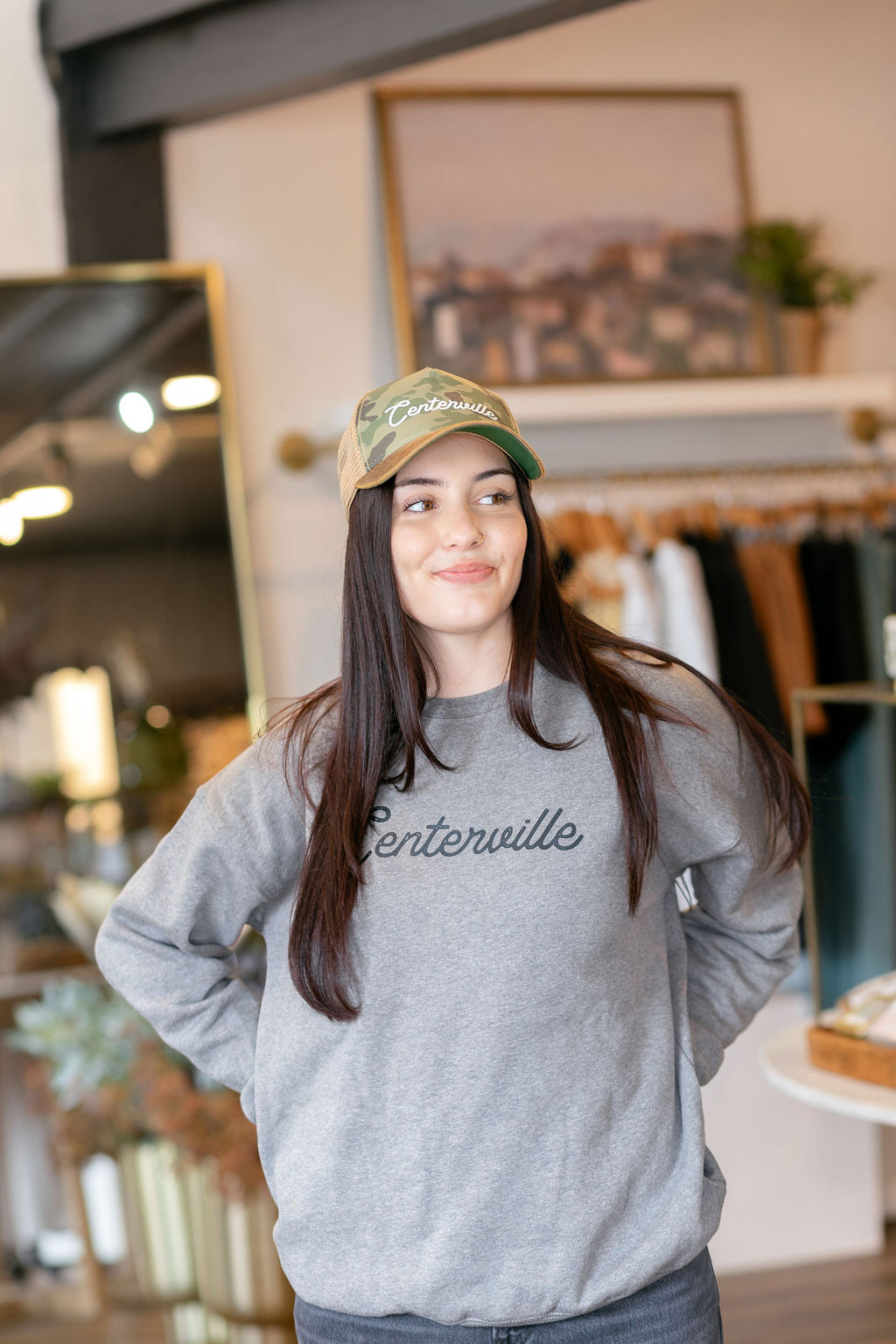 Adult | Centerville Script Grey Unisex Crew Sweatshirt