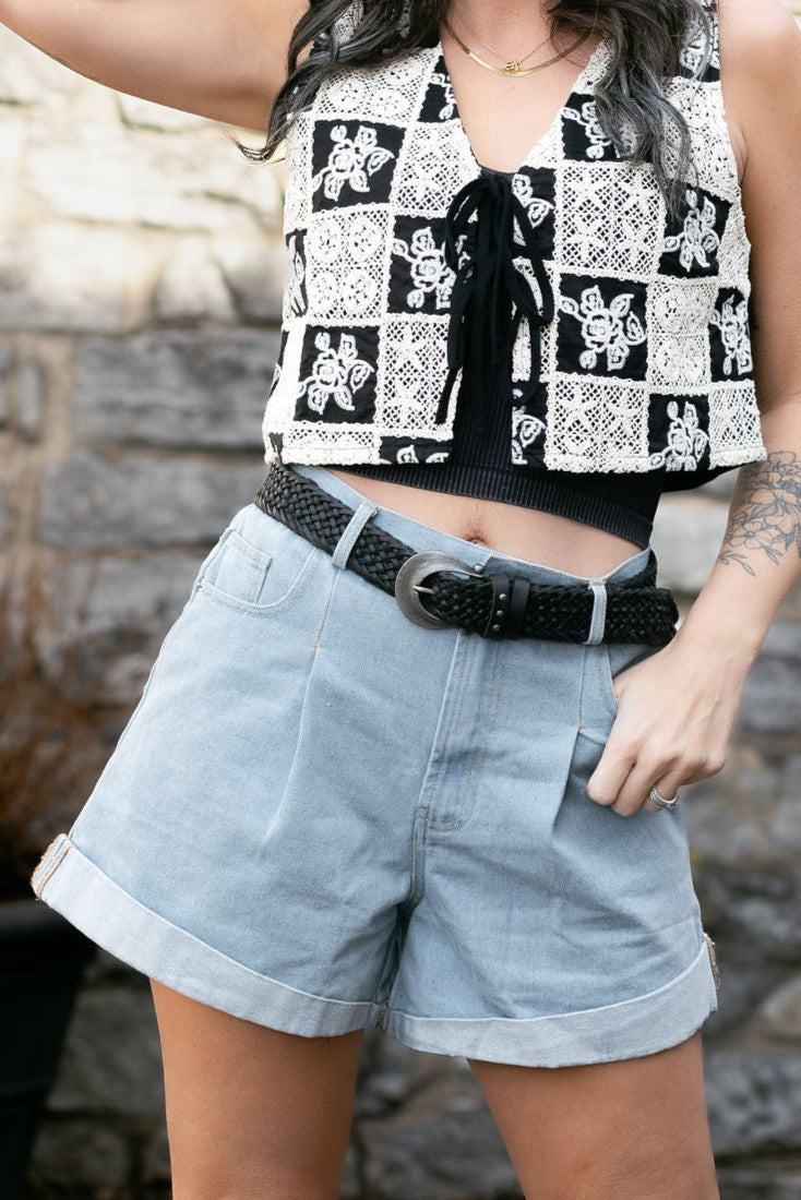Spice up your summer wardrobe with our Kimmie Medium Pleated Denim Shorts. These high waisted shorts feature pleats for a flattering fit and a cuffed hem for added style. Perfect for any occasion, these shorts are a throwback style that we are here for.