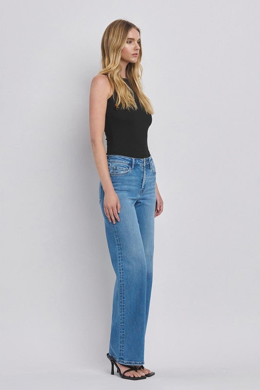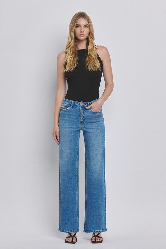 HIGH RISE MEDIUM WASH WIDE JEANS