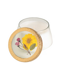 medium | Dimensions: 3.25"H, 3.75" Diameter | 1 wick | 10oz | 70hr burn time | lid botanical - Yellow Cosmo, Sakura Branch