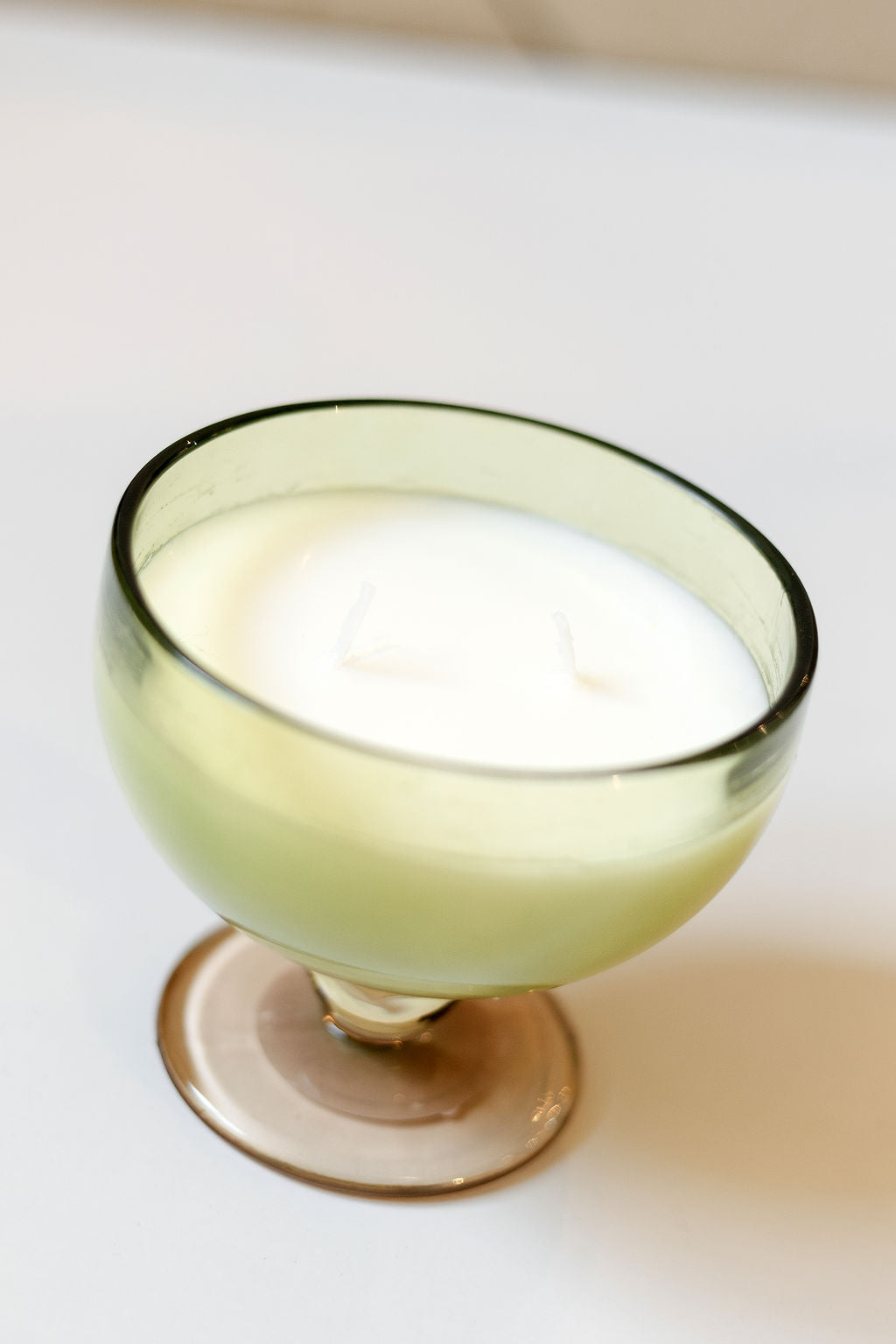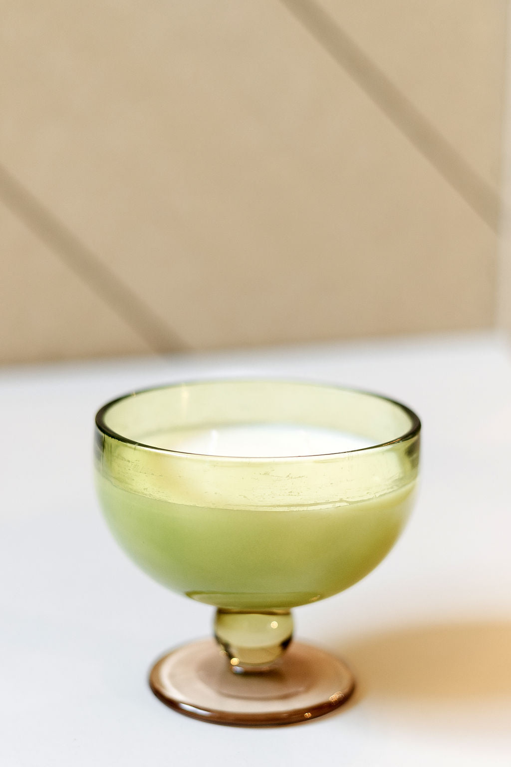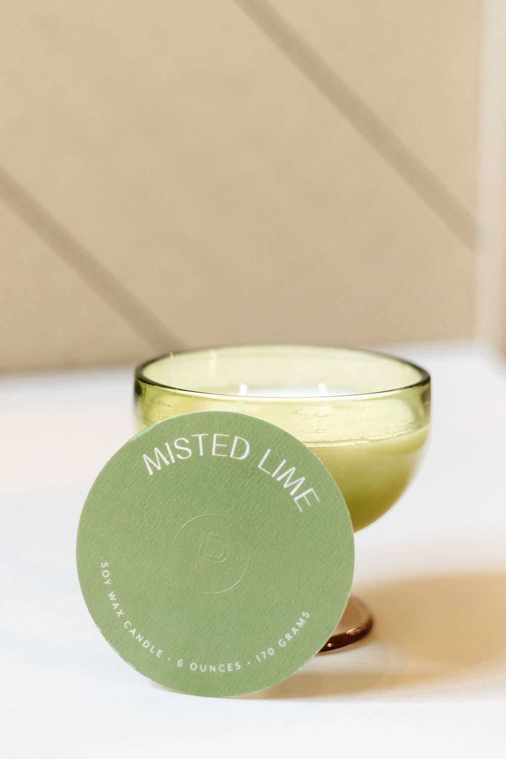 Uplift the atmosphere of any room with the Aura 6 oz. Candle - Misted Lime. This 2 wick candle is the perfect statement piece for your home with elements of vintage glassware, vibrant jewel tones, and luxurious fresh fragrances.
