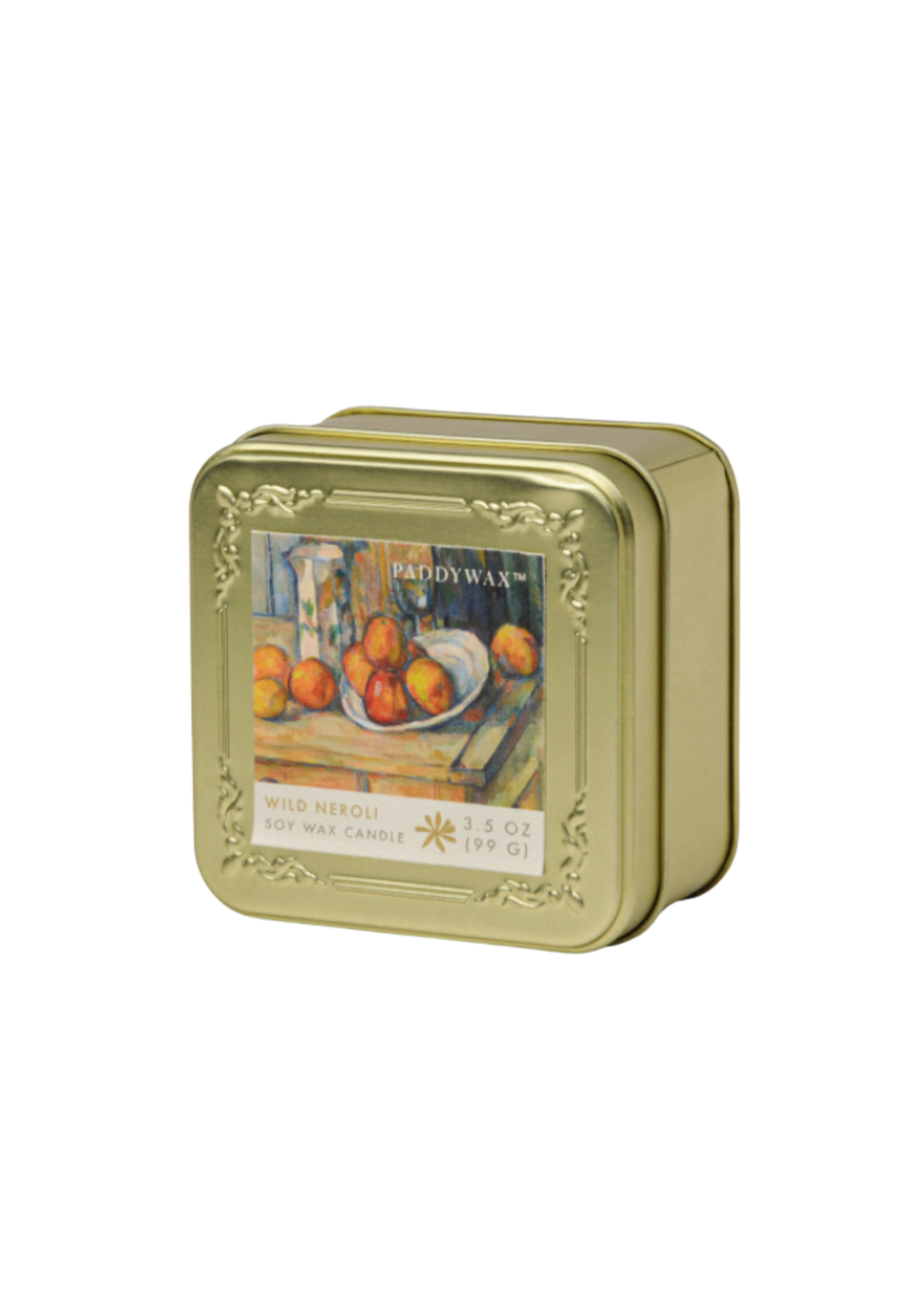 Grab your brushes and get ready to create a masterpiece with our 3.5 oz Cezanne Gold Tin Candle, aptly named "Still Life with Milk Jug & Fruit". This candle is the perfect way to add a touch of artistic flair to any room.