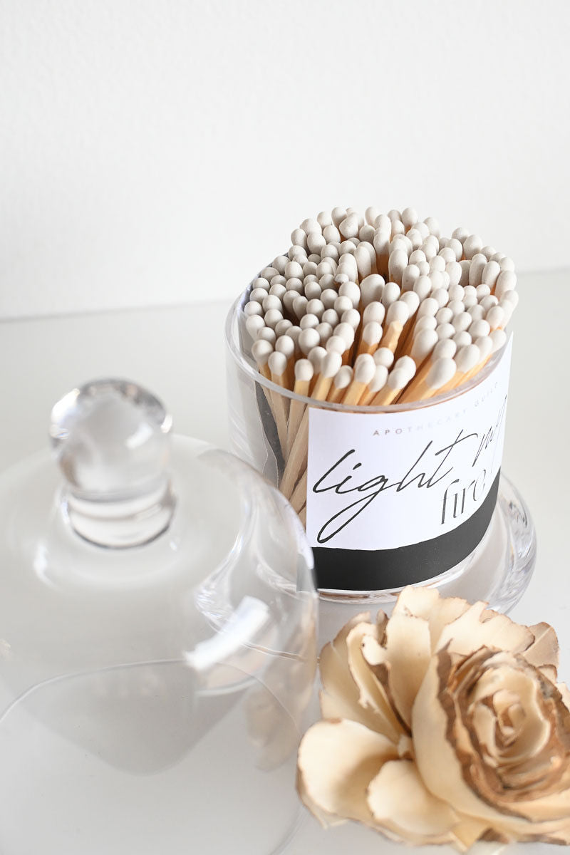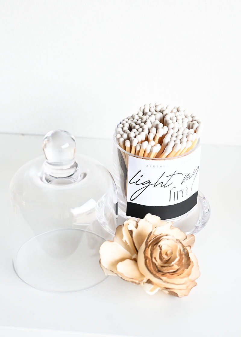 These White Tip Glass Cloche Matches offer a sophisticated fire-lighting experience. Crafted with a sleekly designed white tip, the matches offer a modern, artful touch to the traditional matchbox. With the perfect combination of style and durability, these matches are sure to light the fire of your next adventure.