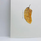 Greeting card featuring an image of a pressed botanical specimen and a thoughtful expression in a modern typography.