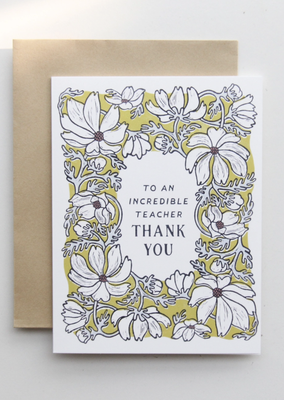 This design has been hand-drawn, carved and block printed with love. Each card is digitally printed on 100% recycled paper, and comes with a blank interior for a personal, handwritten message.
