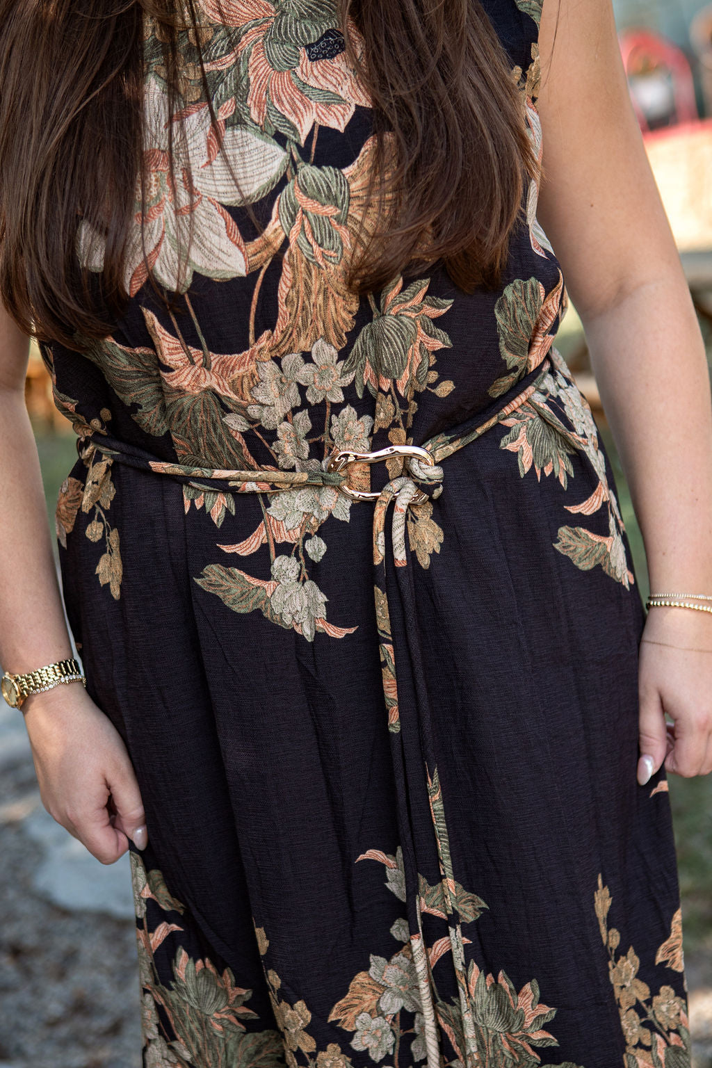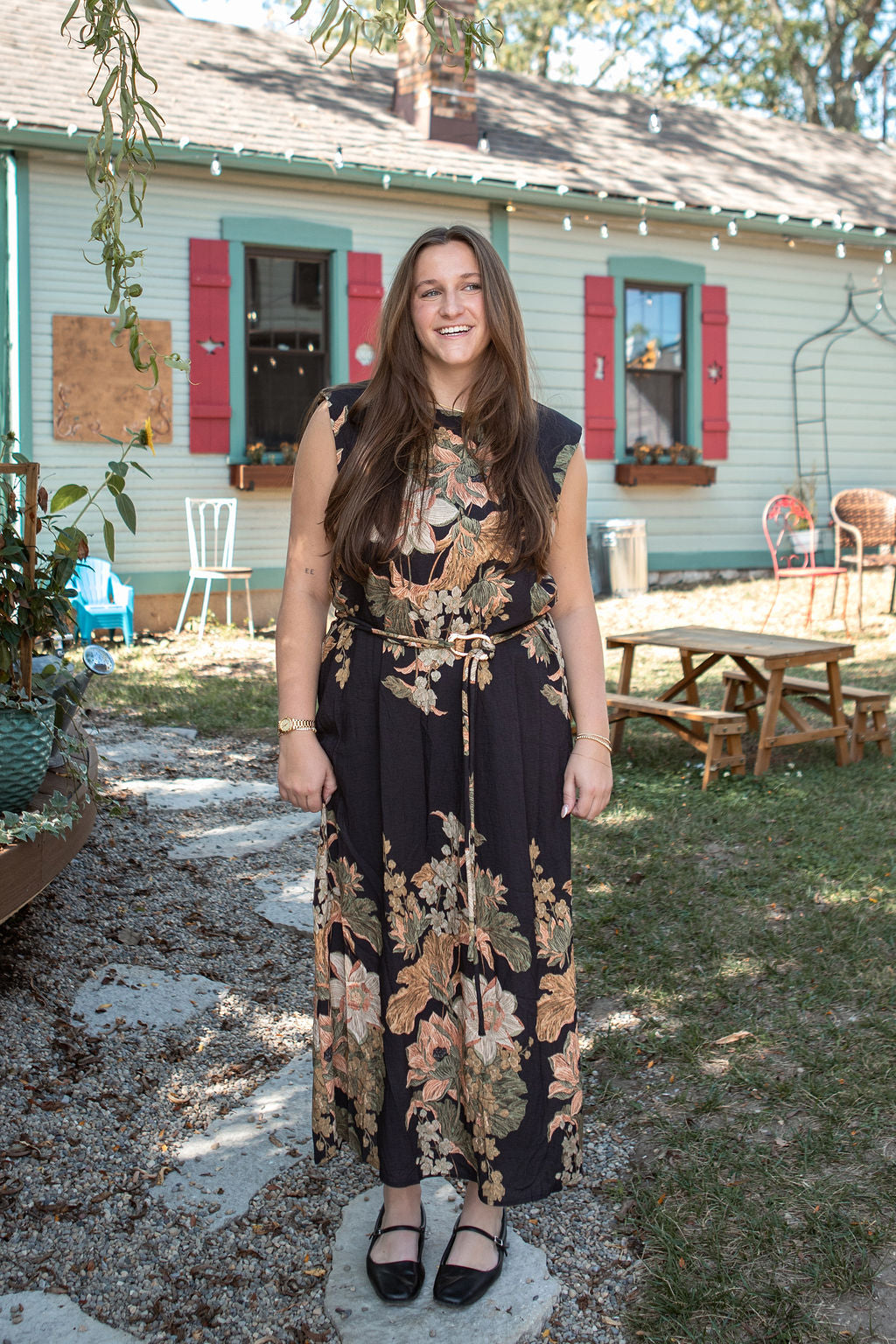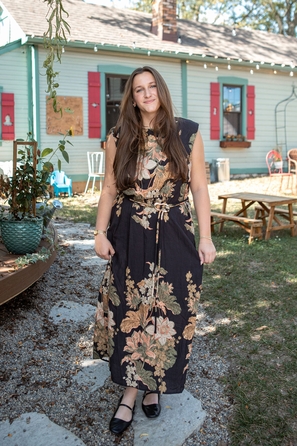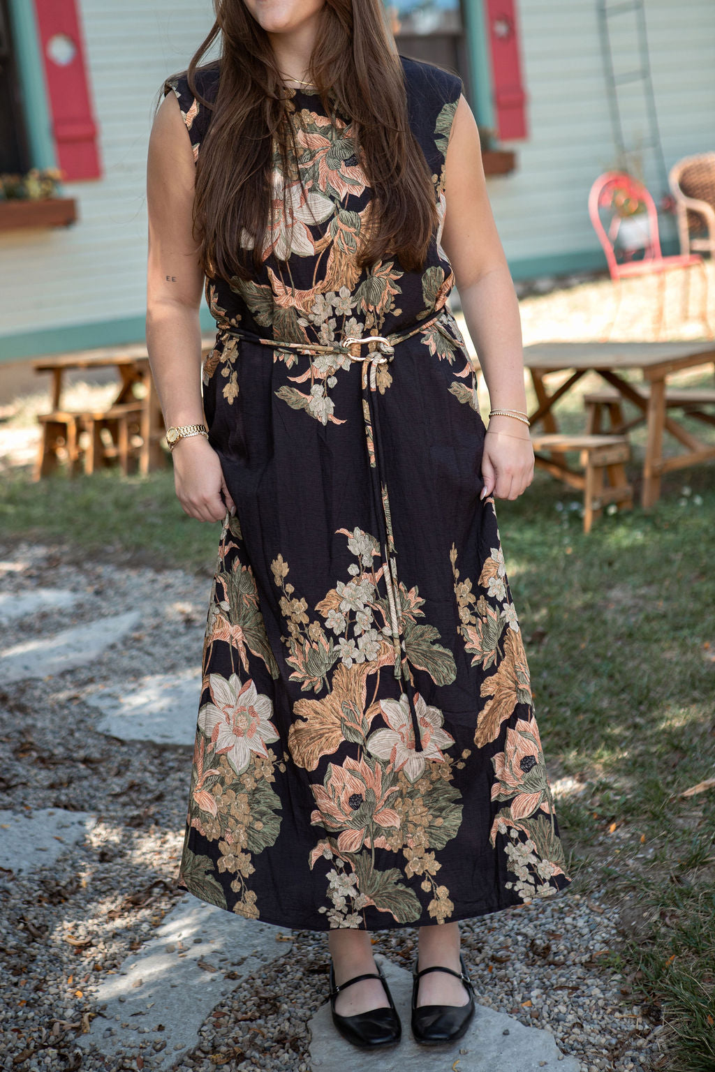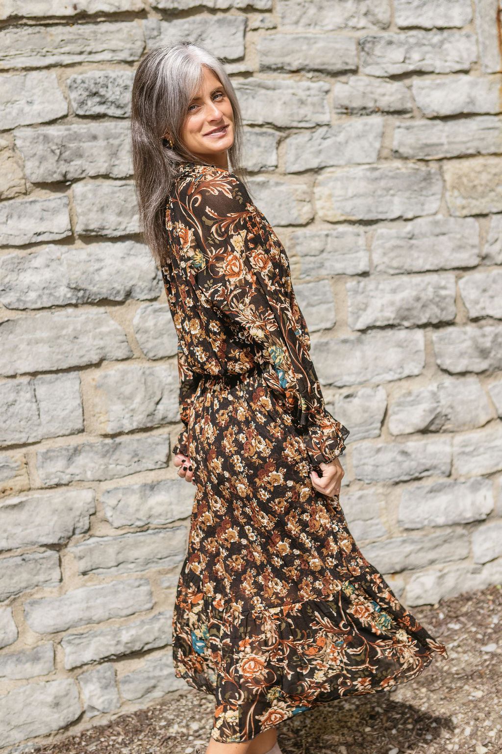Litia Black Floral Mesh Ruffle Maxi Dress