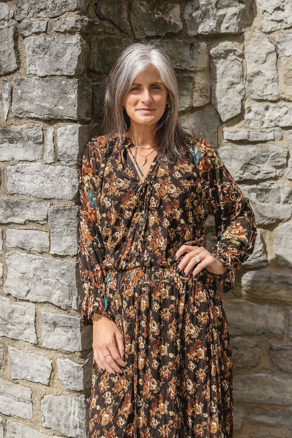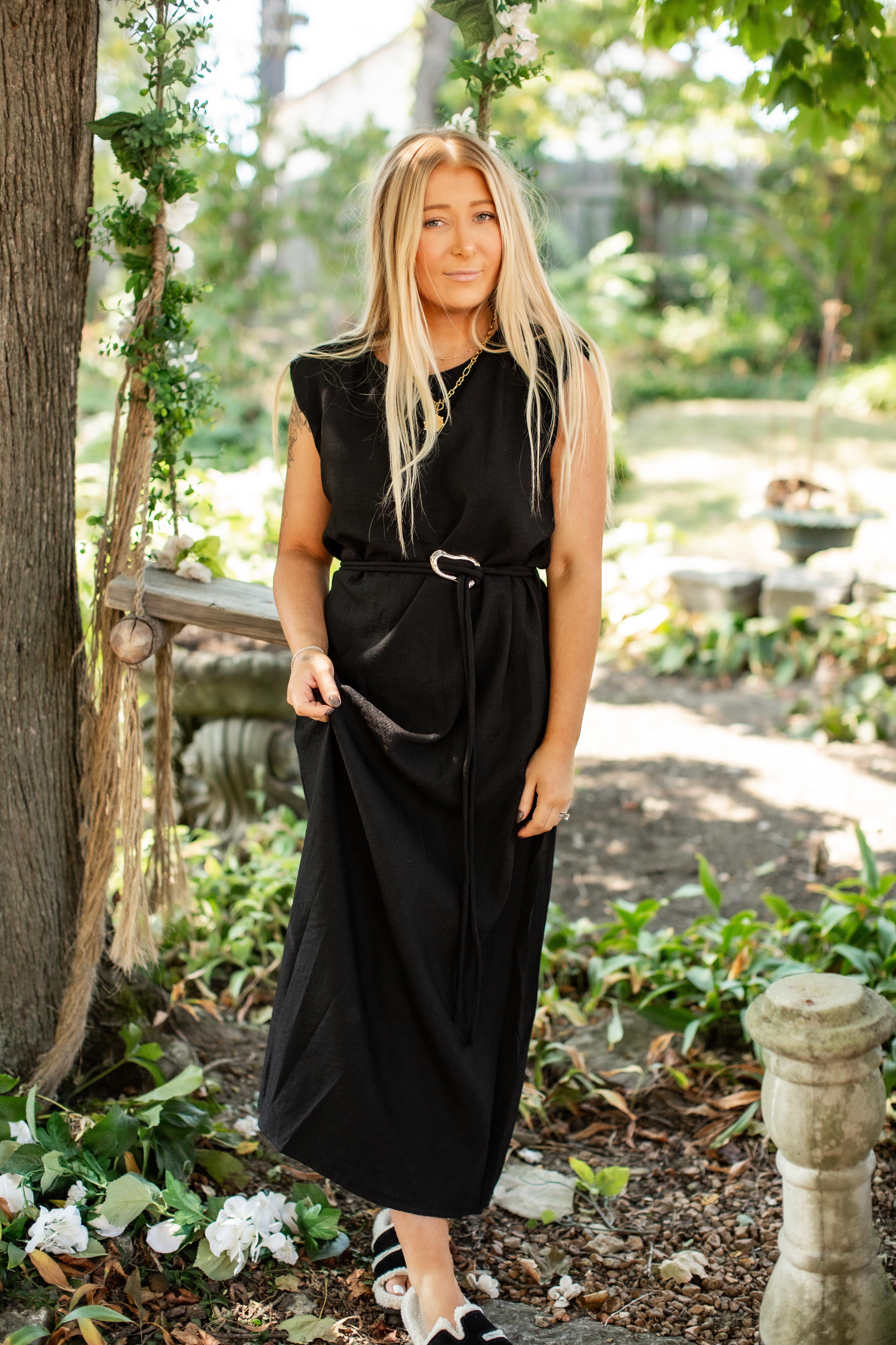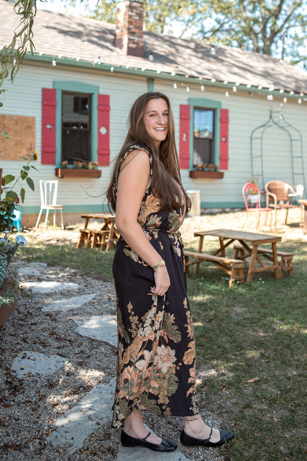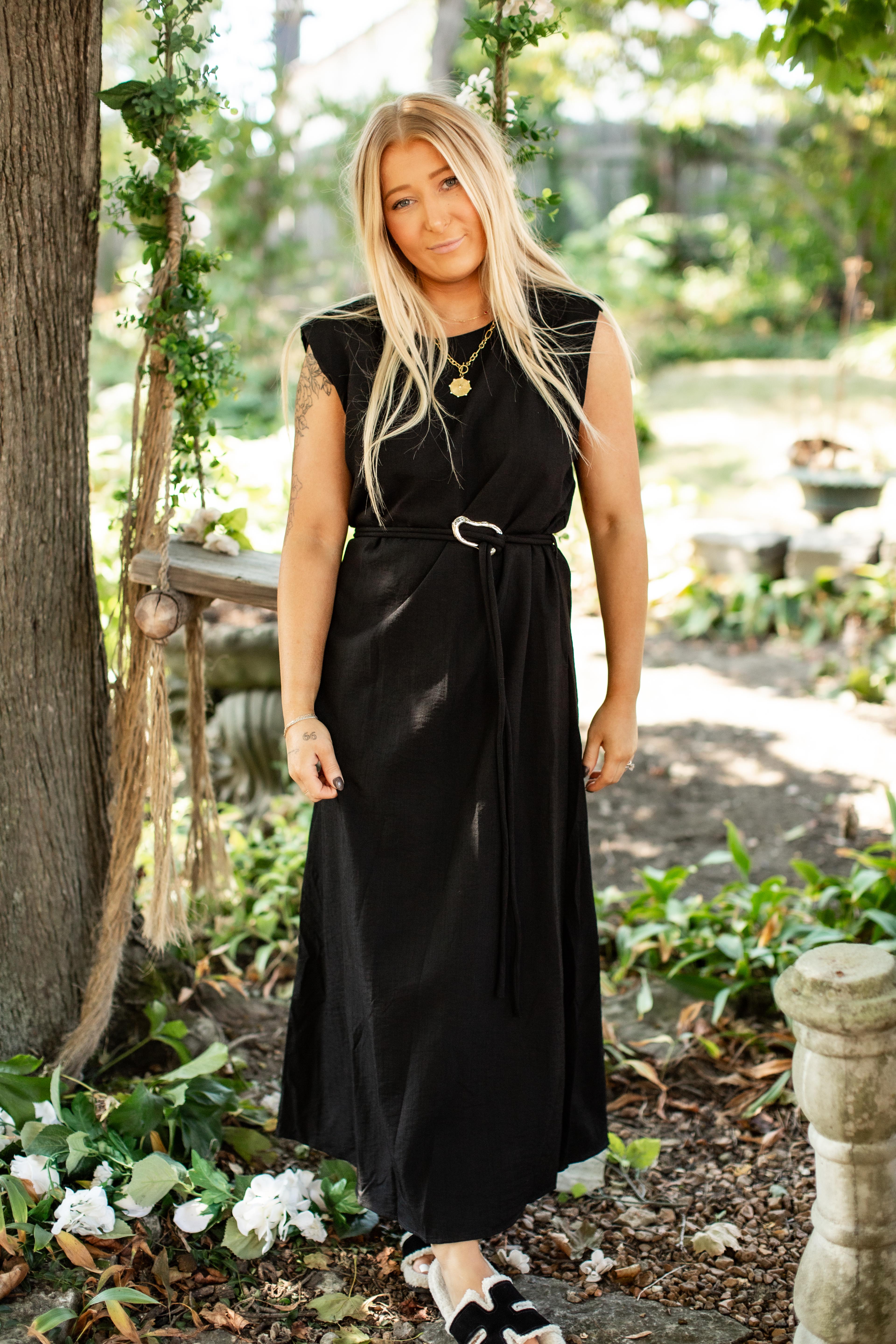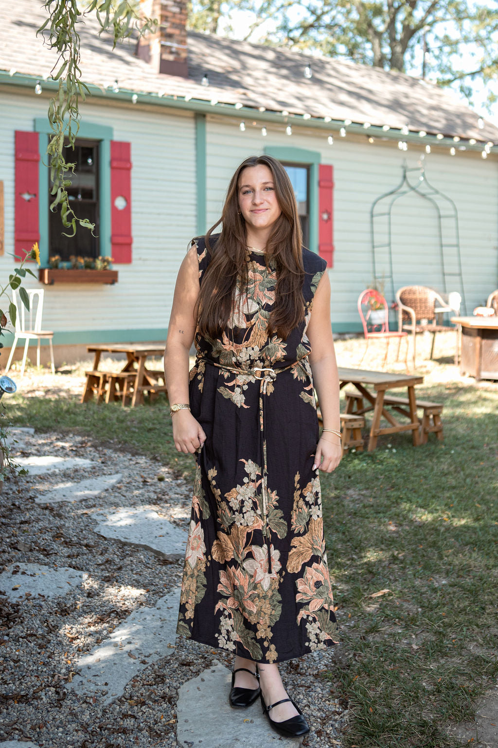 Litia Black Floral Mesh Ruffle Maxi Dress