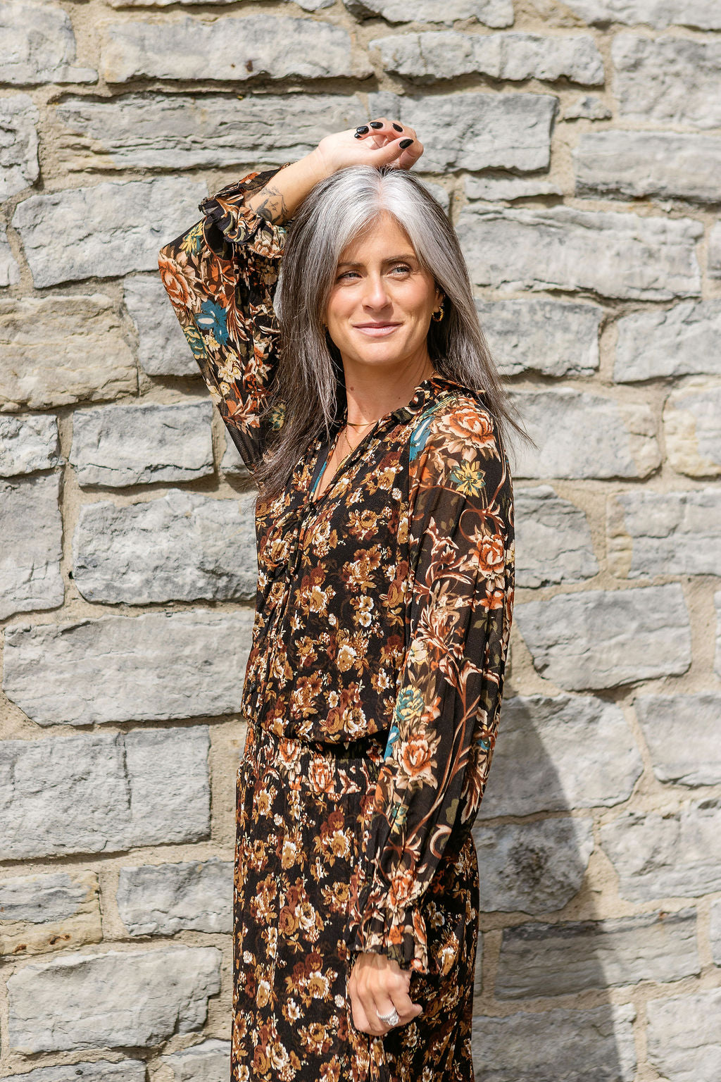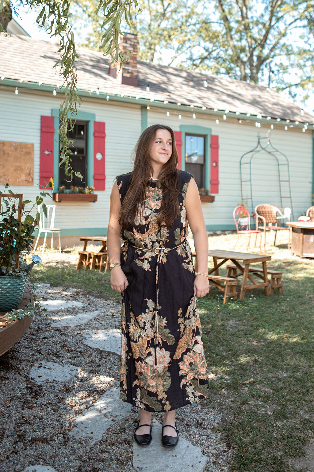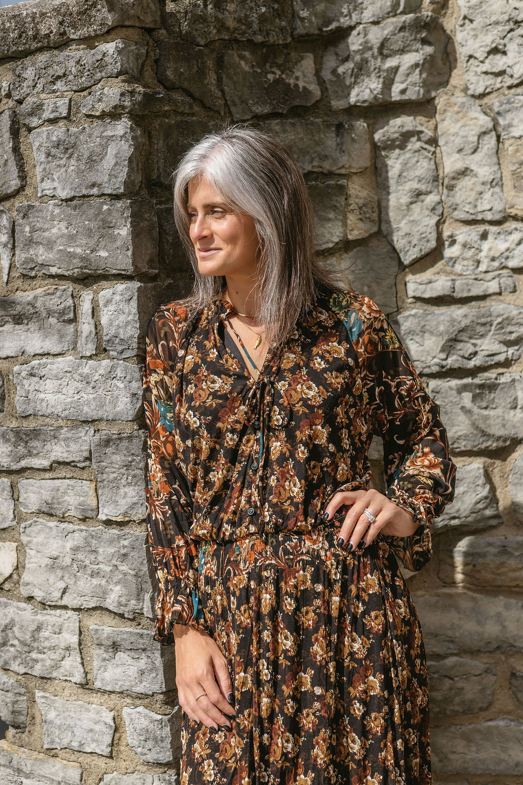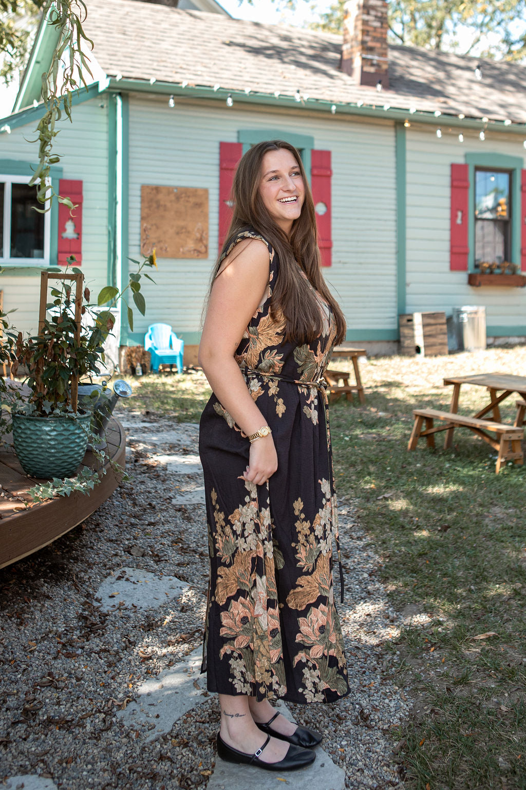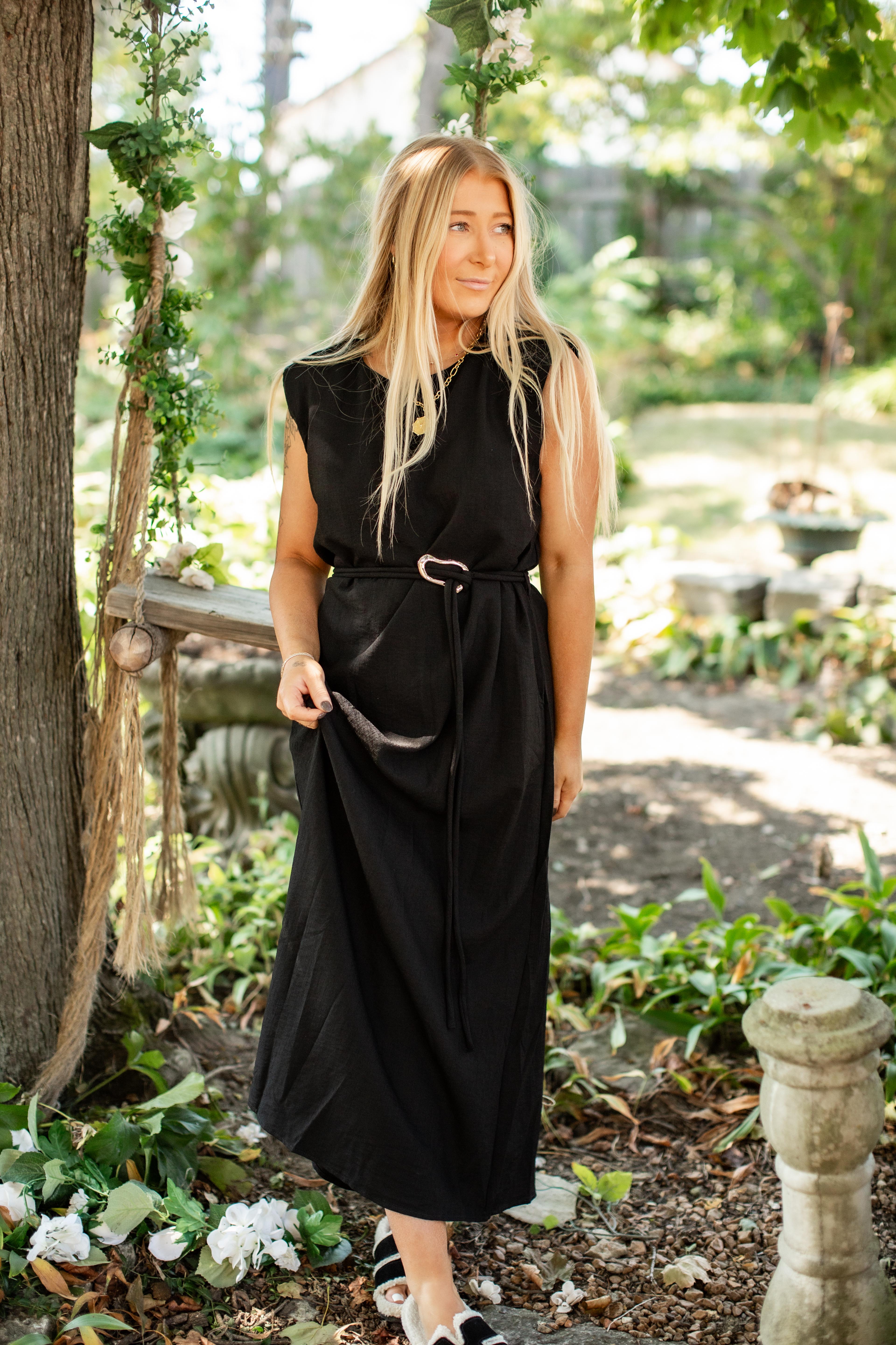 Litia Black Floral Mesh Ruffle Maxi Dress