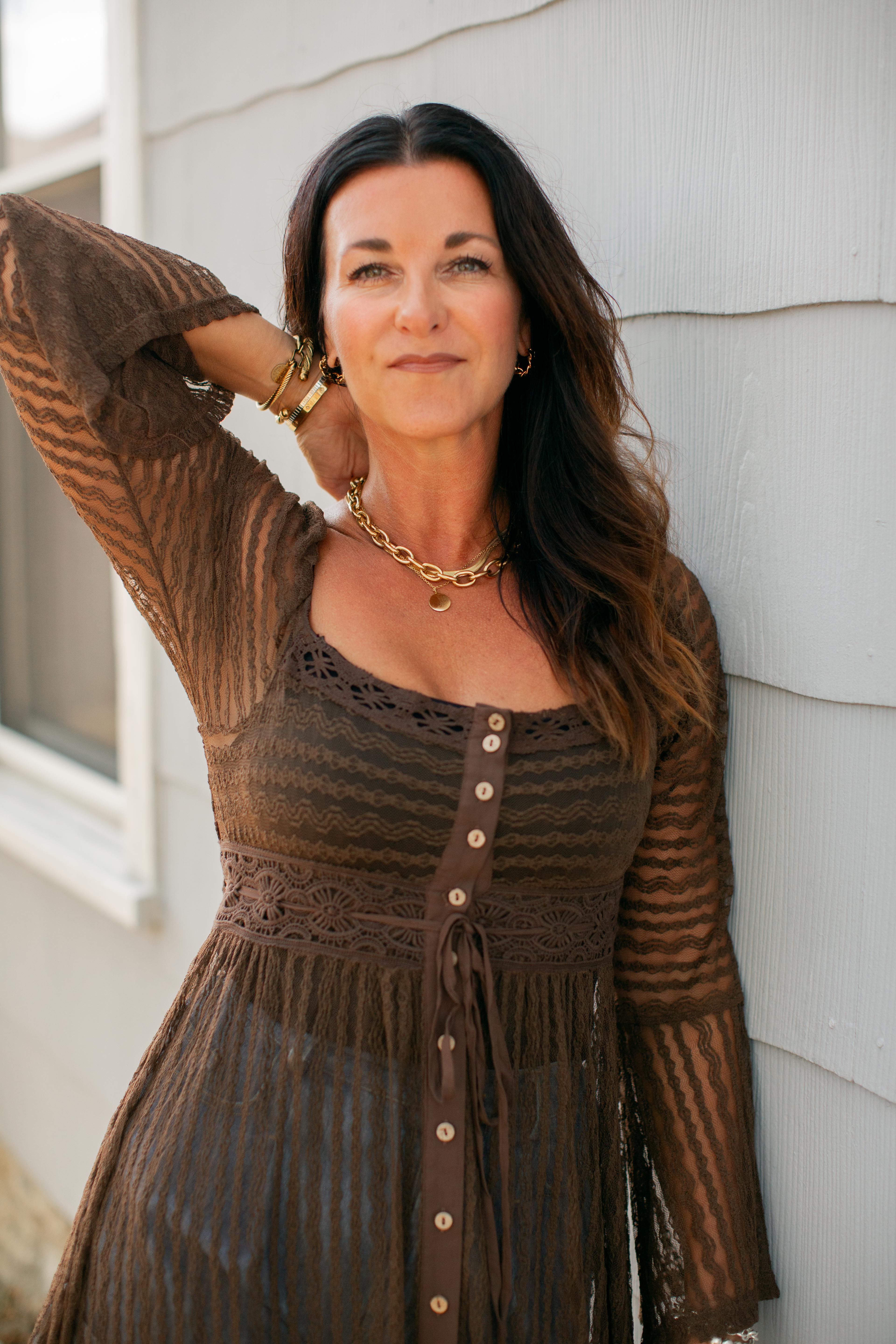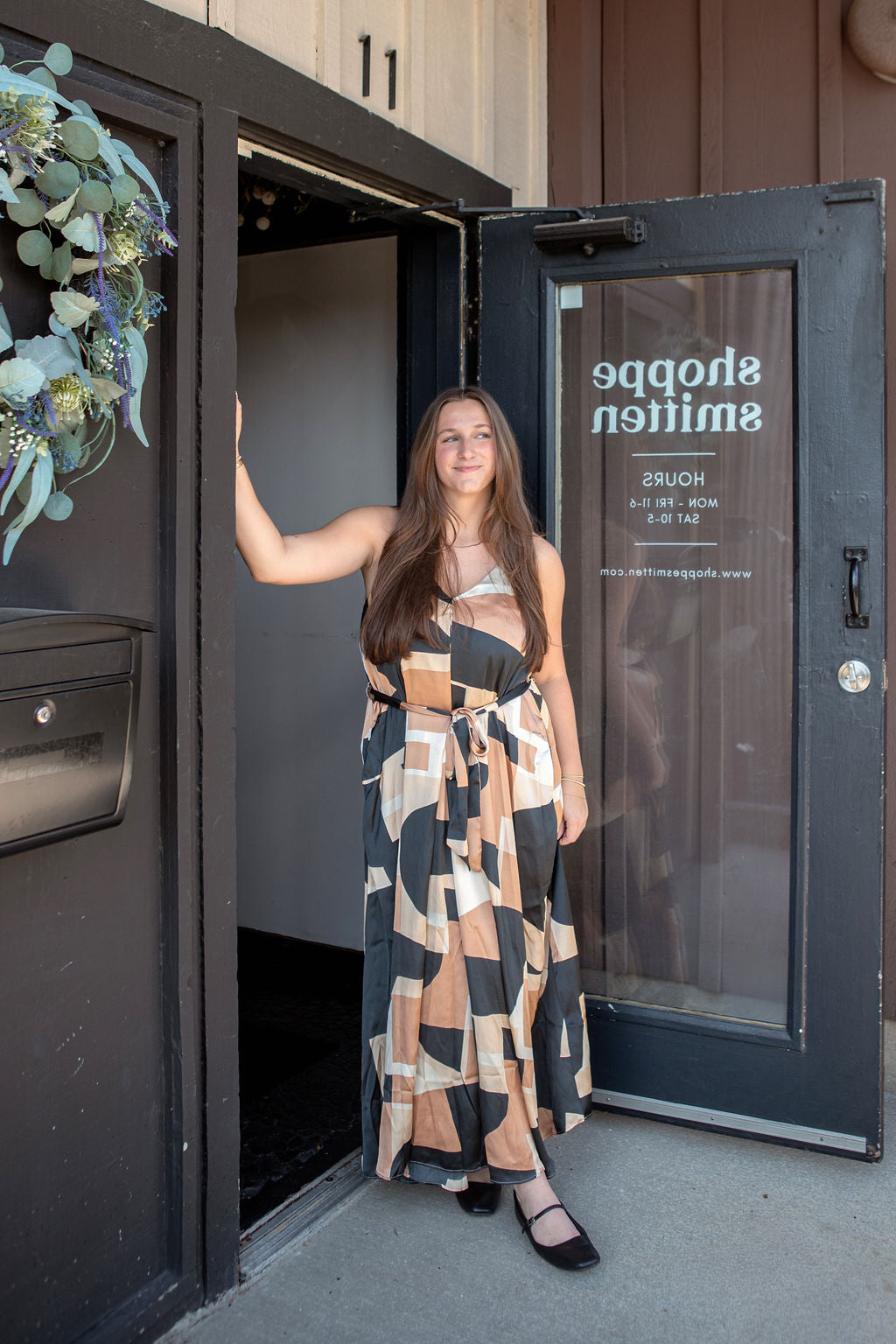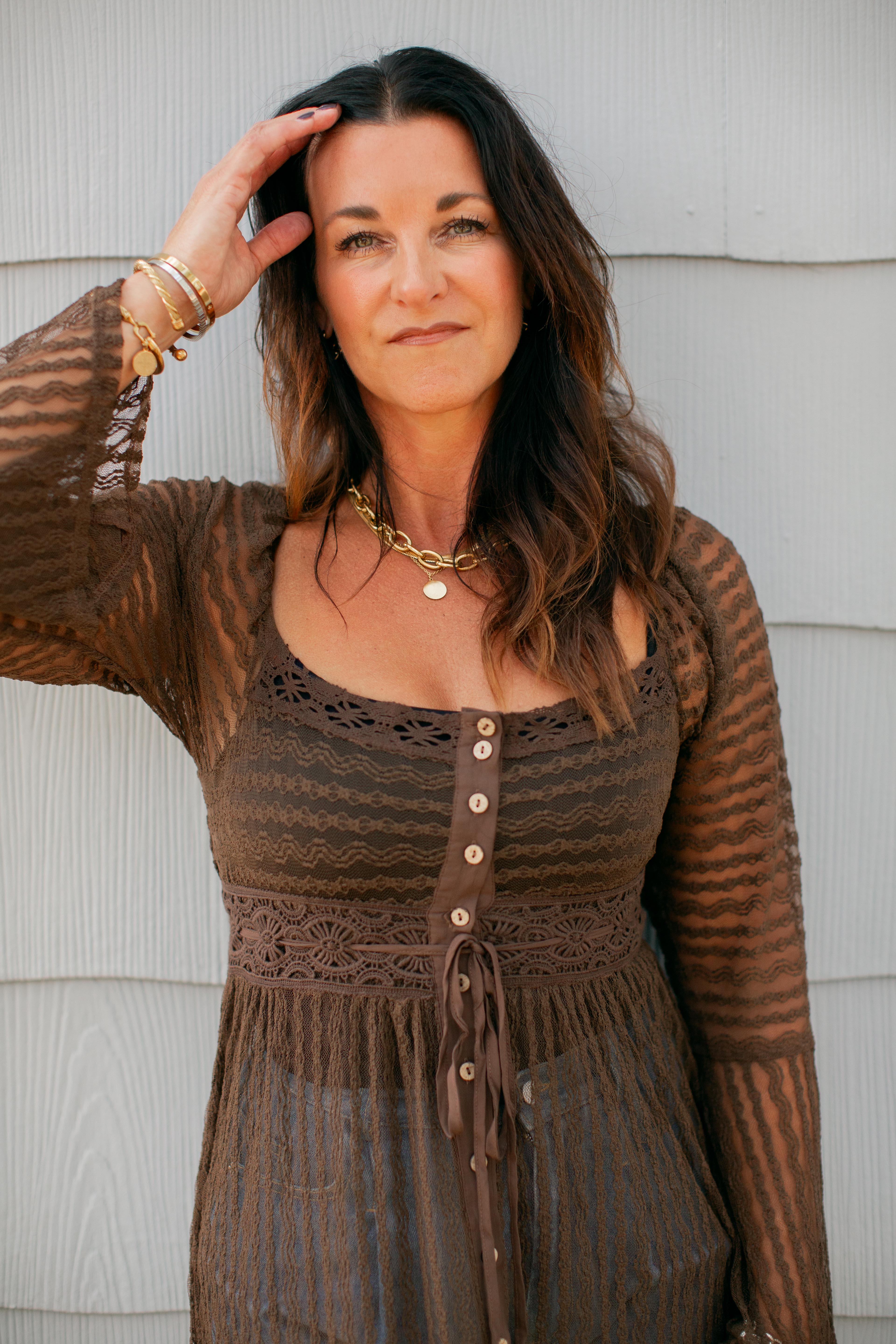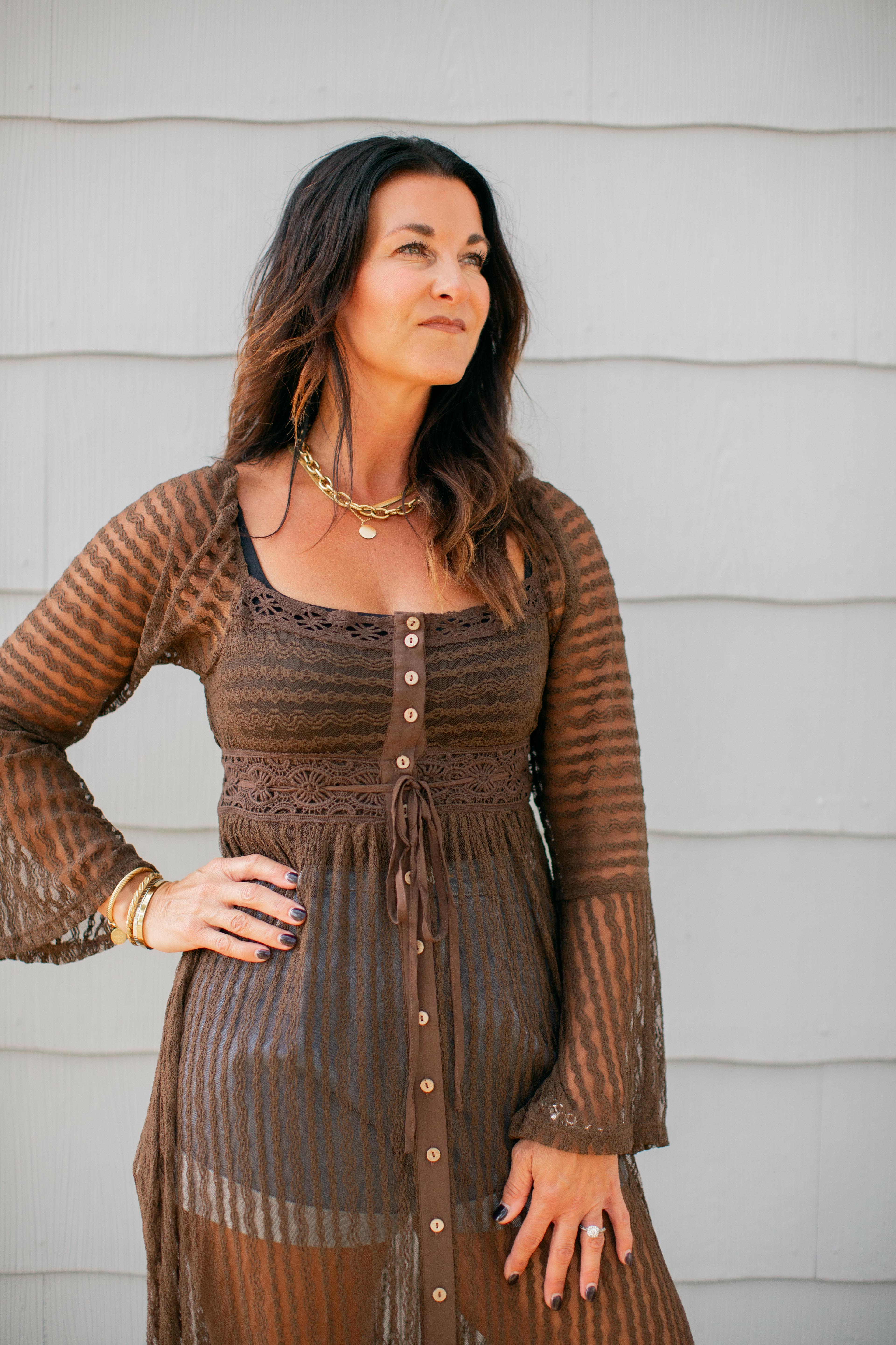 Trinity Taupe Sheer Striped Lace Layering Midi Dress