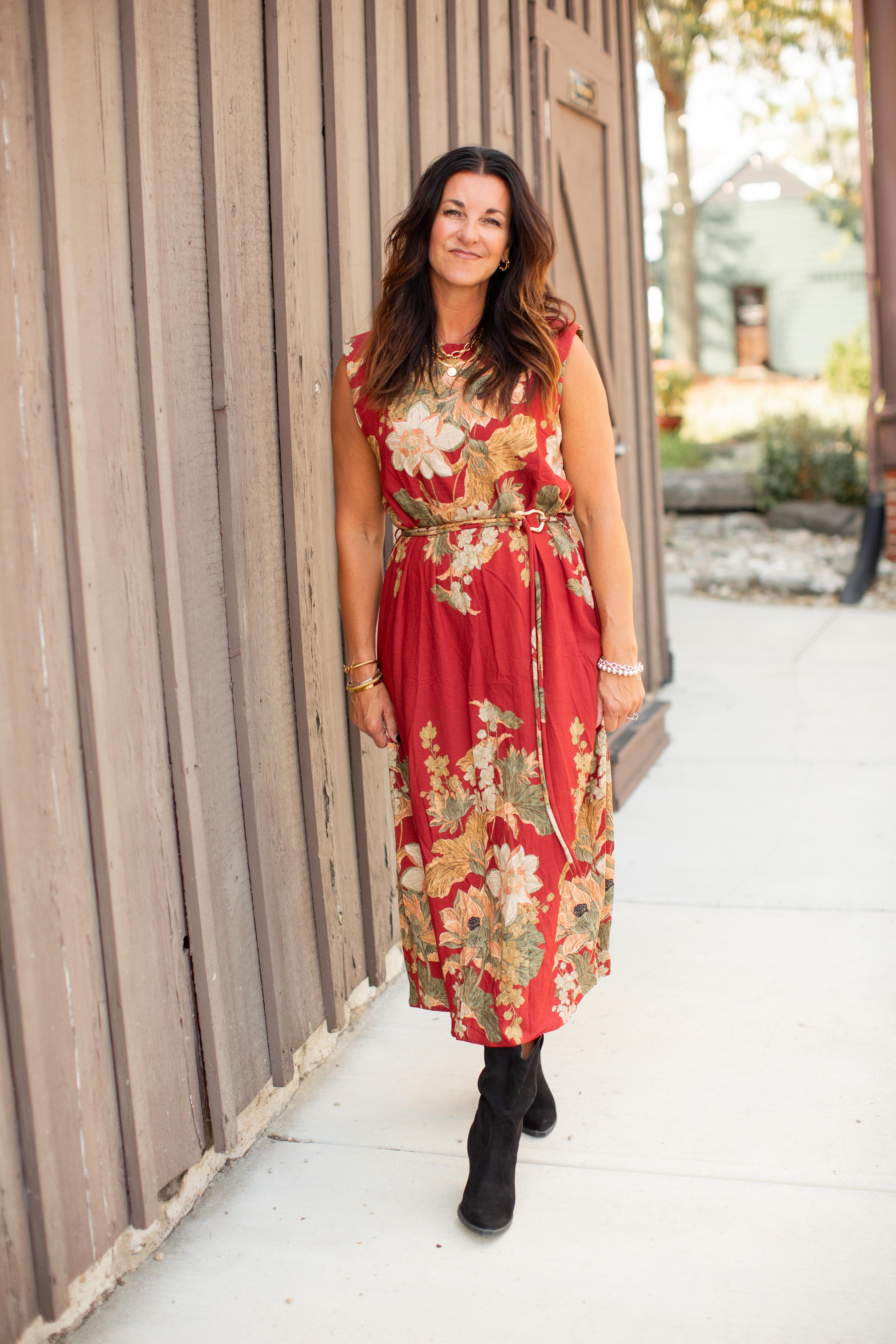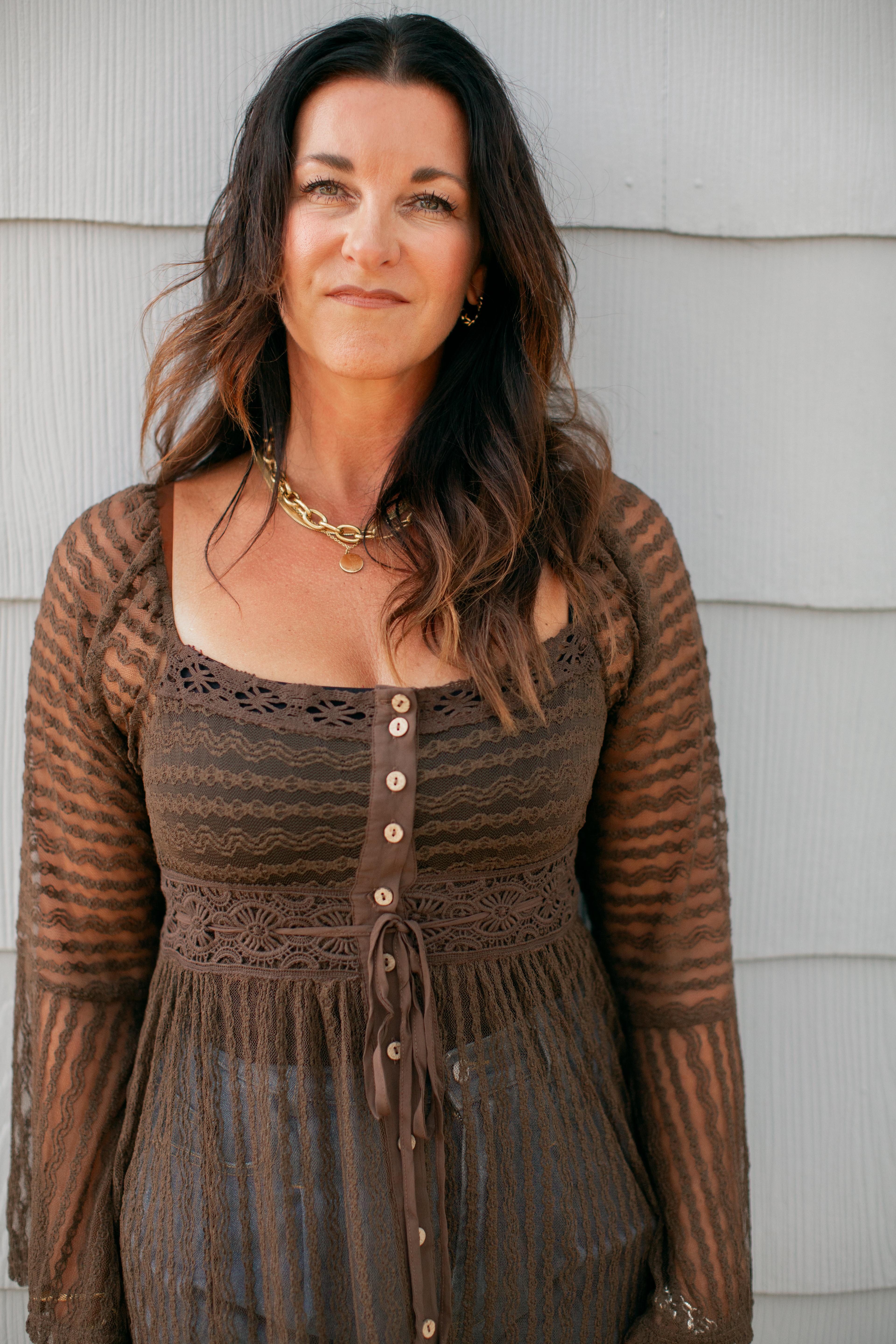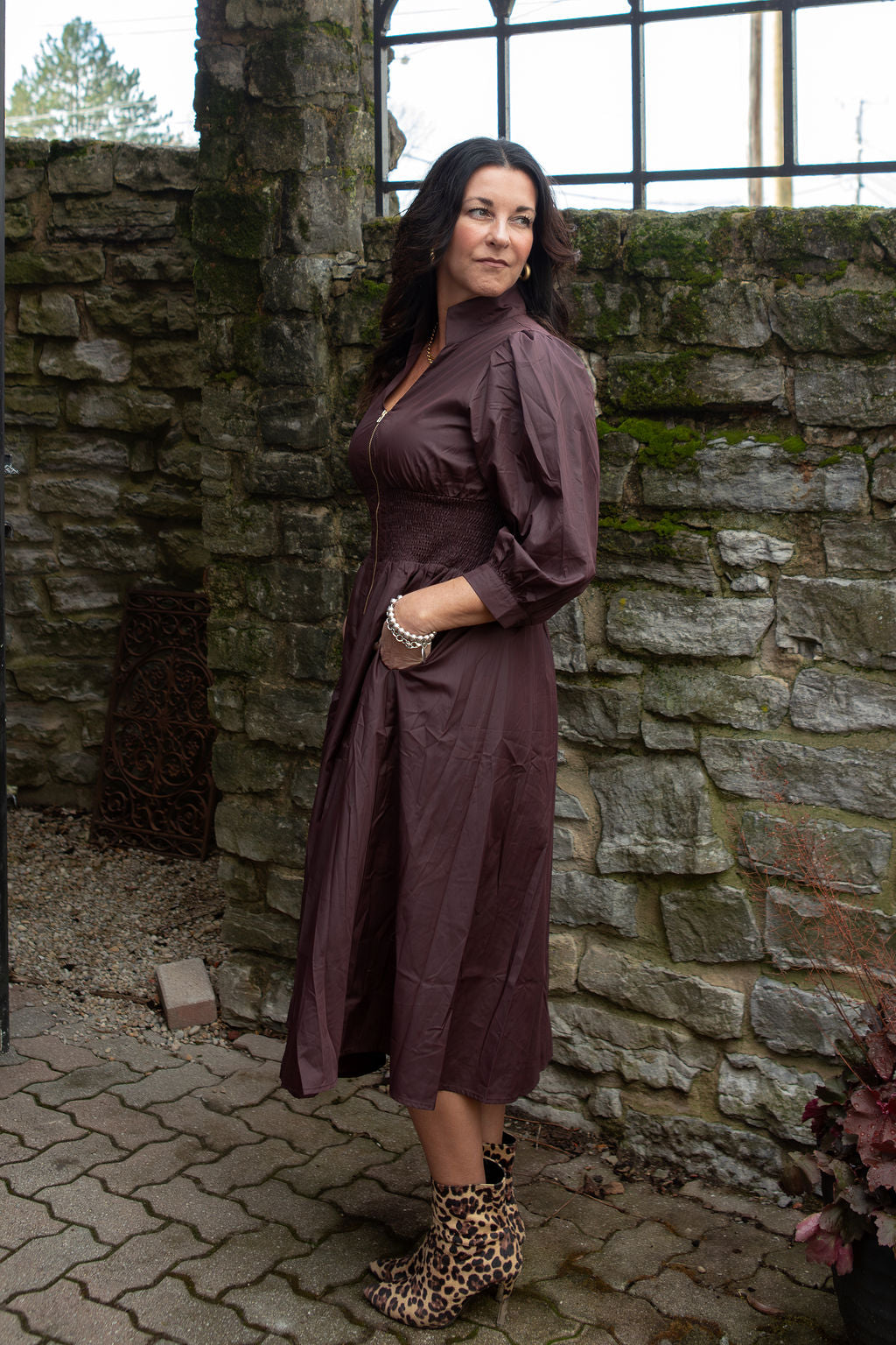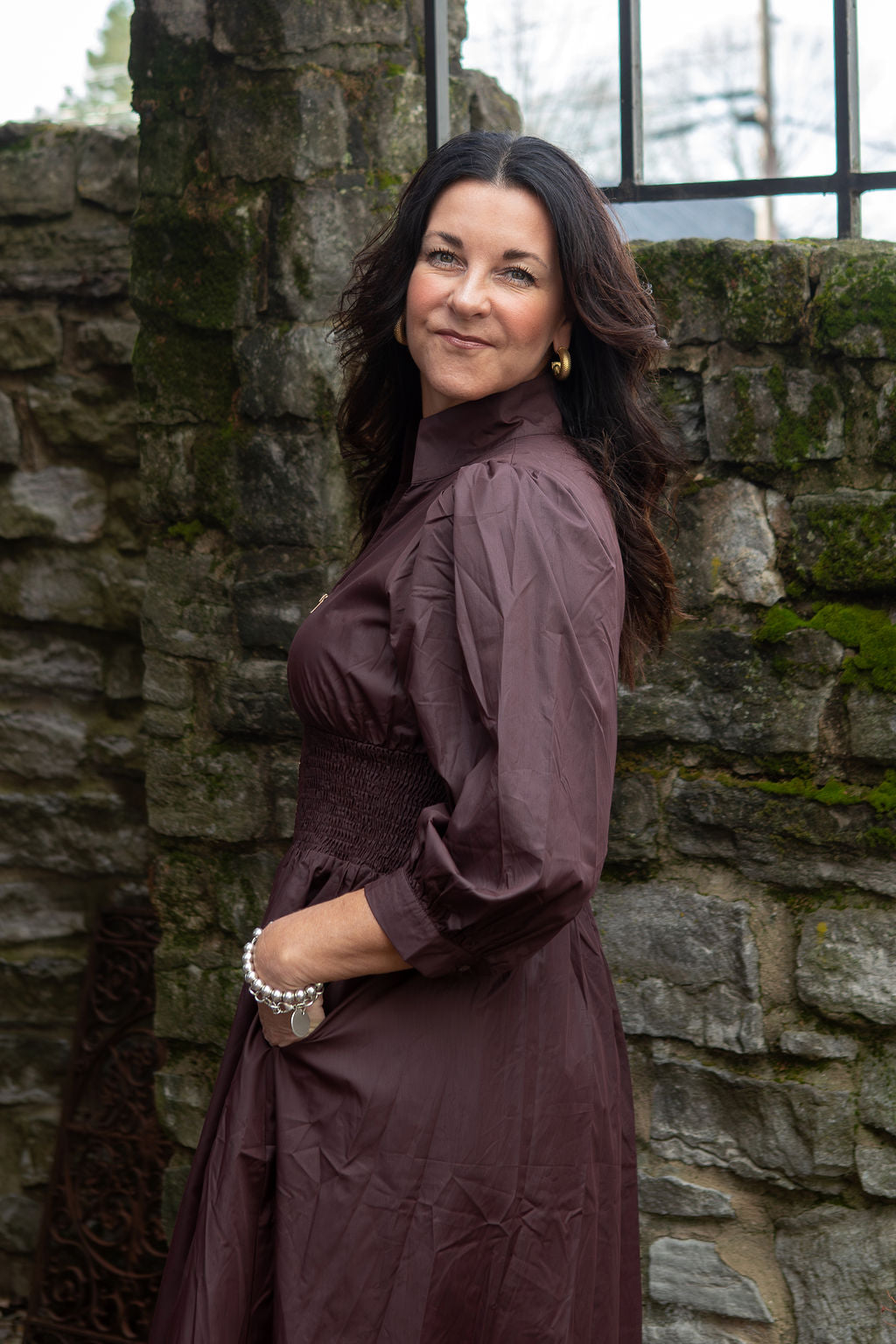 Trinity Taupe Sheer Striped Lace Layering Midi Dress