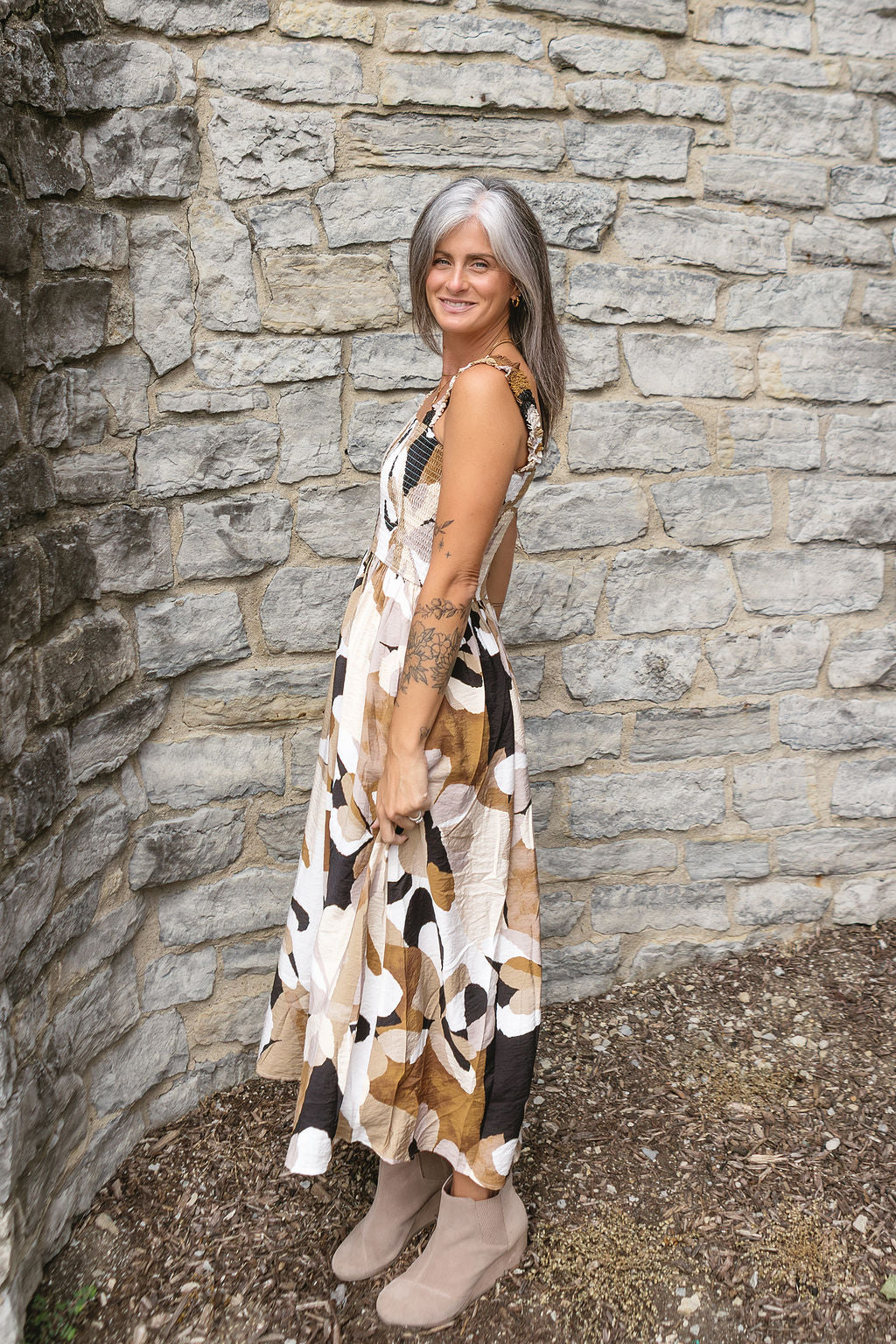 Britt Clay Animal Print Midi Dress