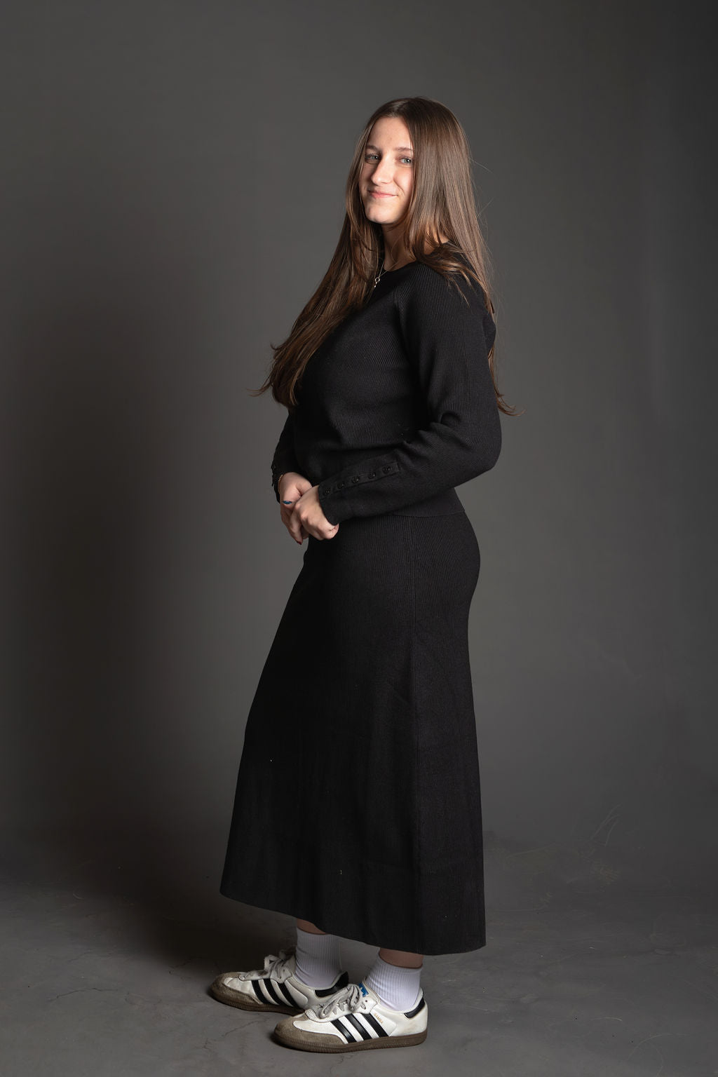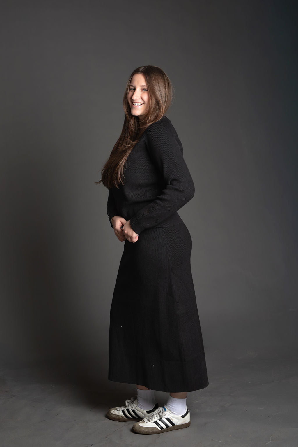On Edge Ribbed Cuff Sweater & Midi Skirt Knit Set