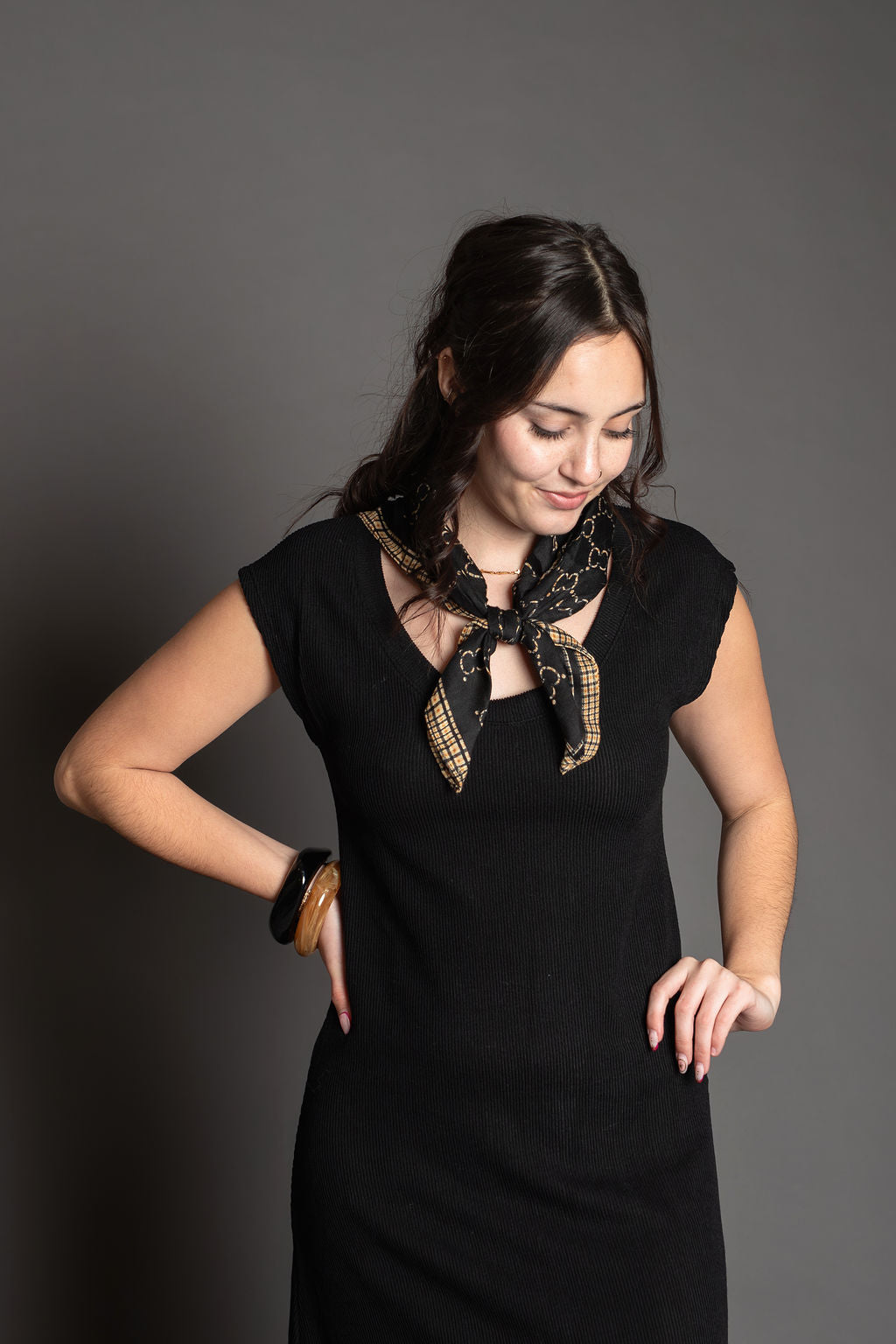 - Style: Ribbed knit with scoop neckline and cap sleeves