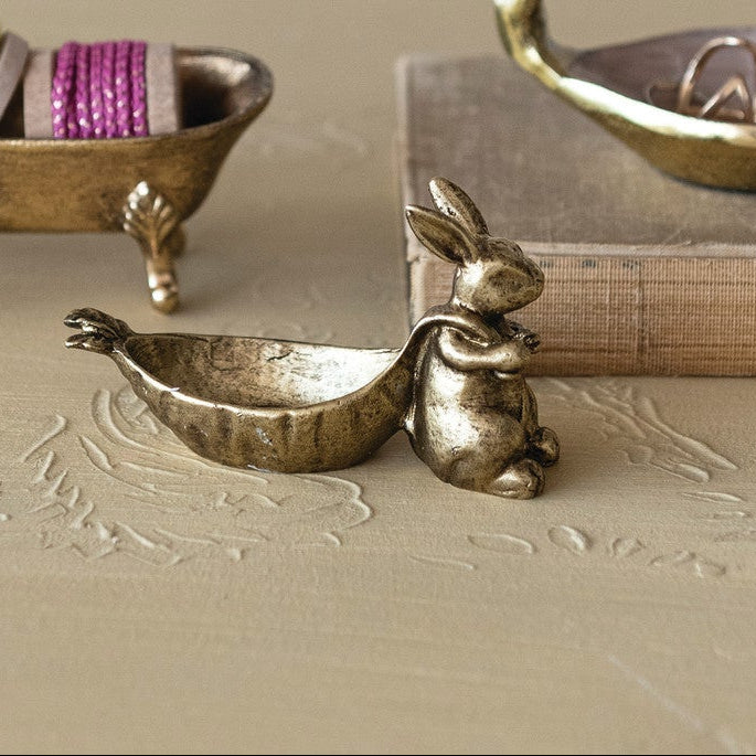 Pewter Rabbit Pulling Carrot Shaped Dish