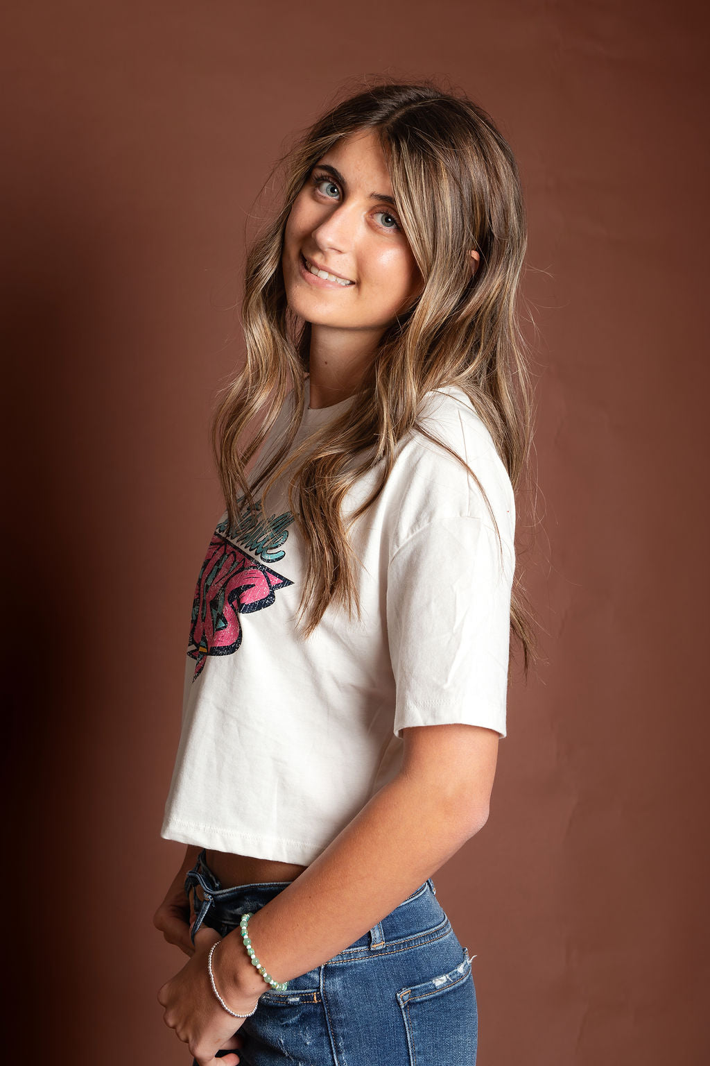 The 80s are calling on the landline and said that you need this corp! It's totally radical. Truly, truly, truly outrageous. This white cropped throwback tee is for all ages - whether you lived to see the 80s or you love that all styles come back around. It's here, and it's tubular!