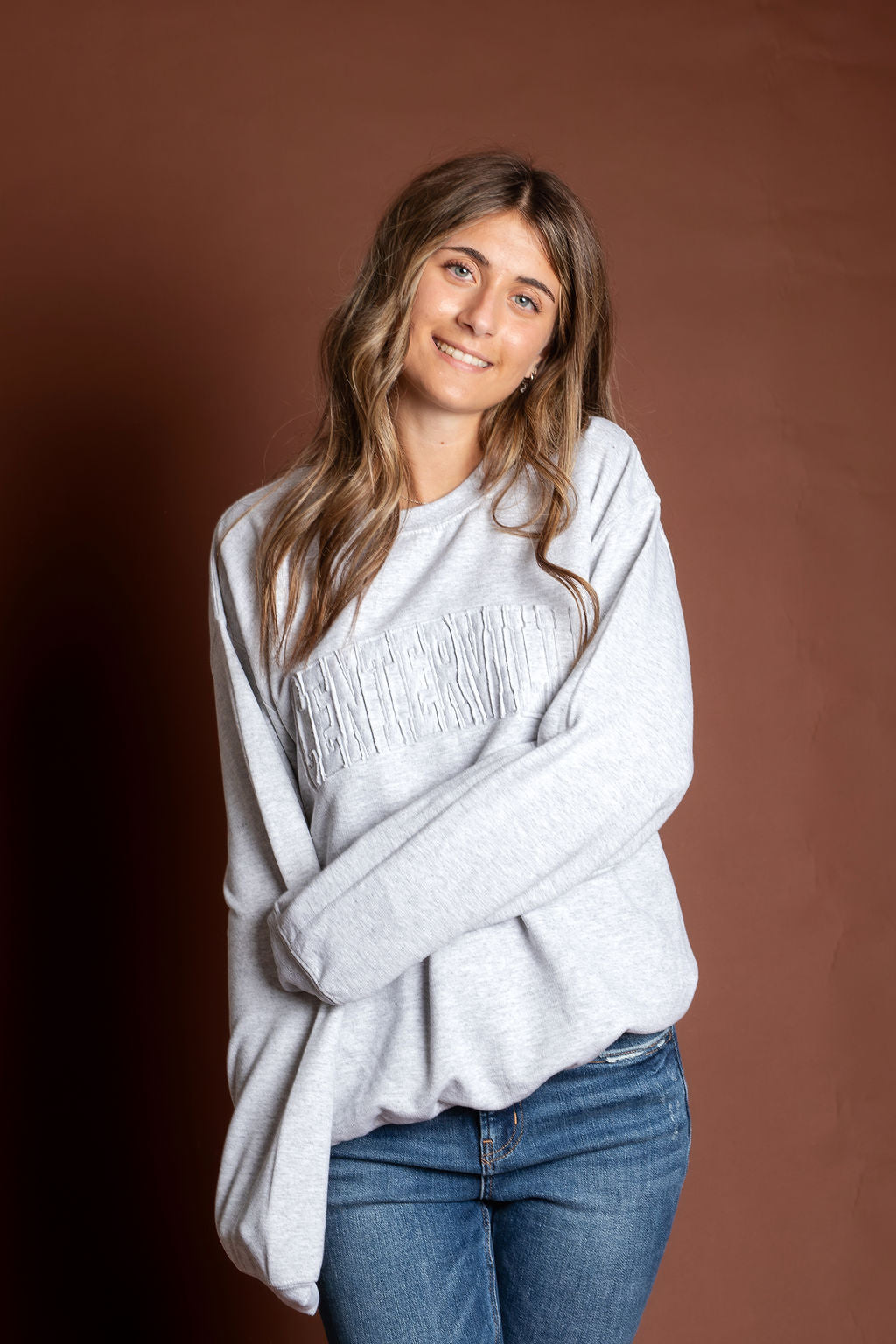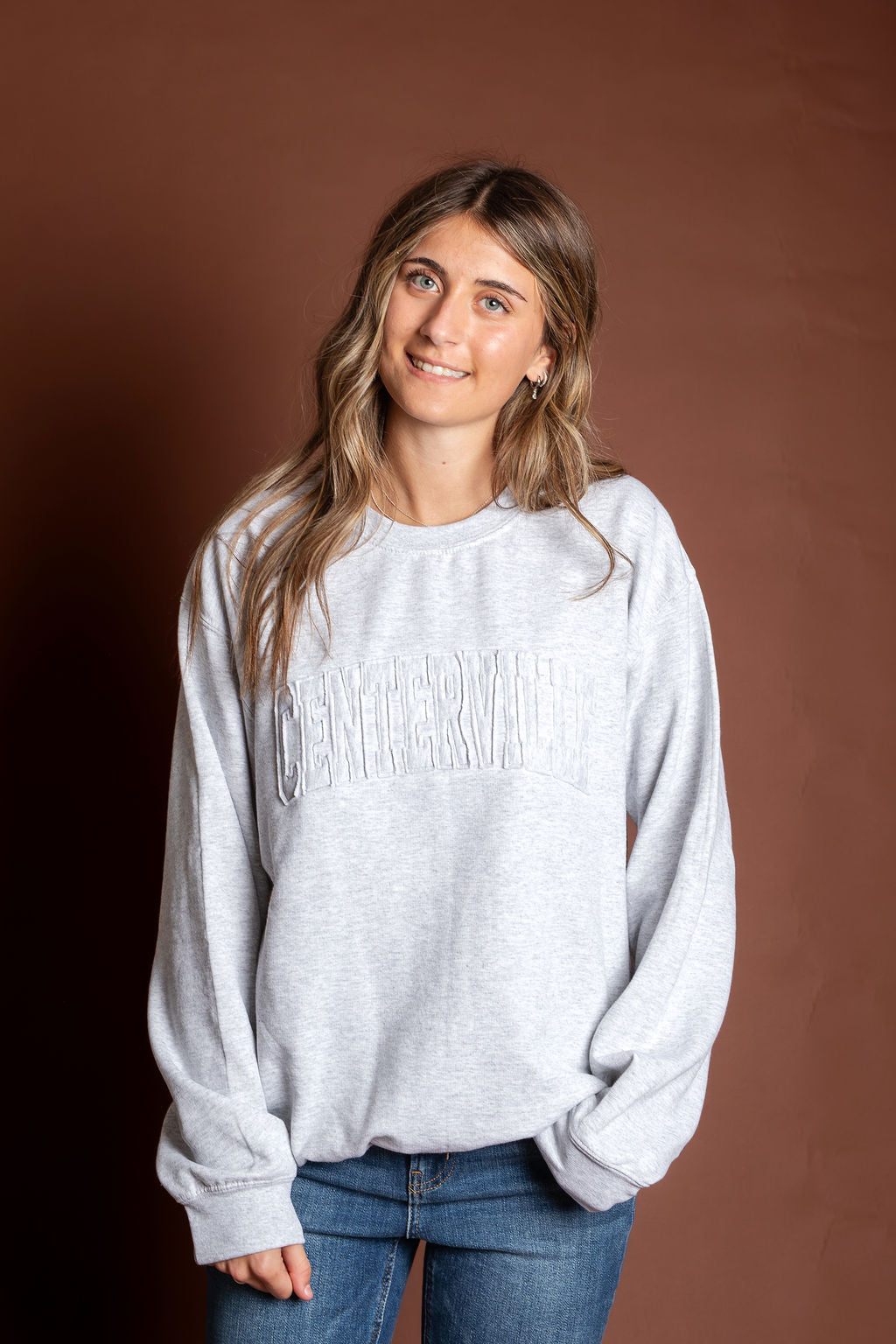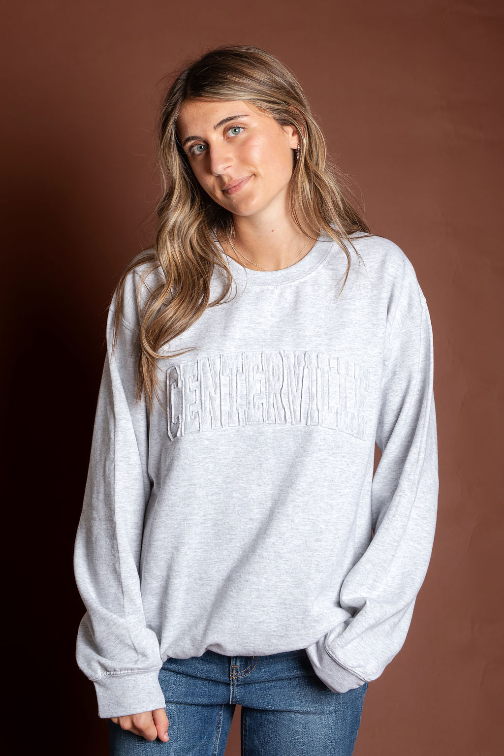 New Custom Centerville Sweatshirt! Classy tone on tone Raggy look in a heather grey crew sweatshirt!