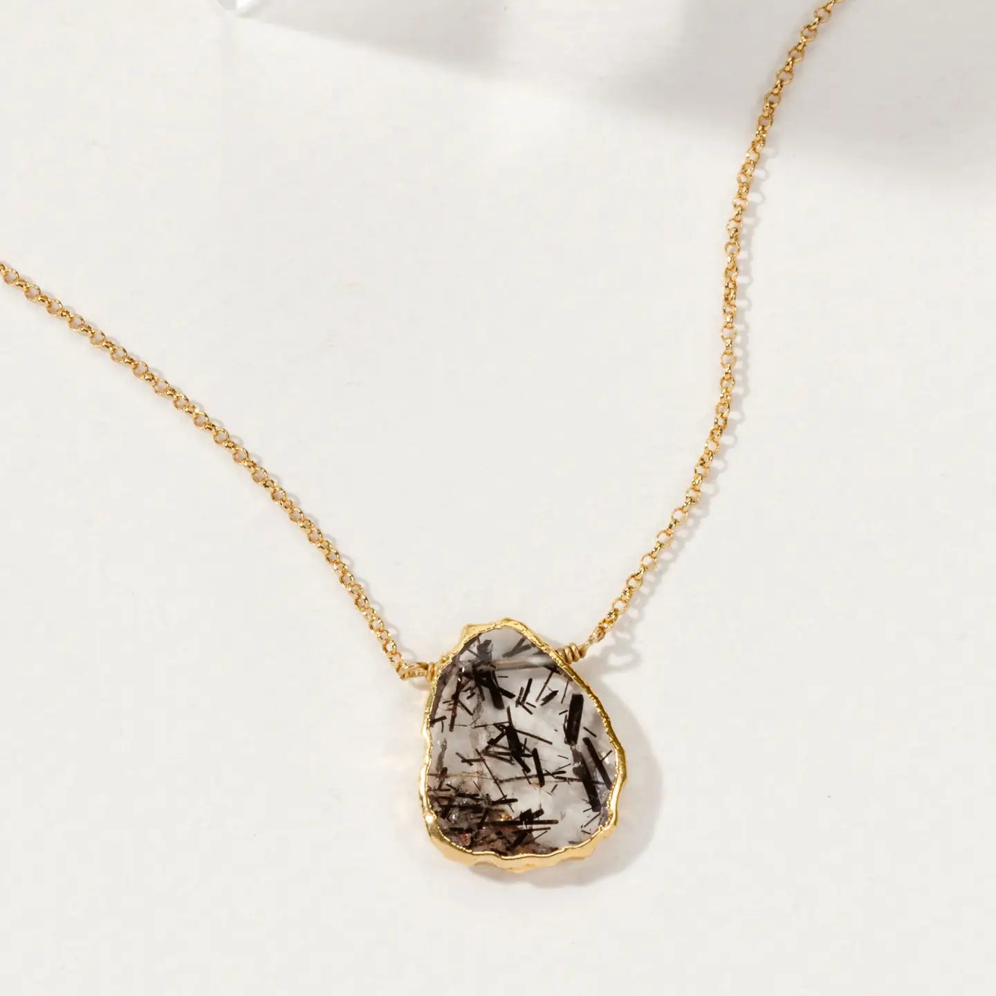 Tourmalinated Quartz Gold Earth, Wind and Fire Necklace