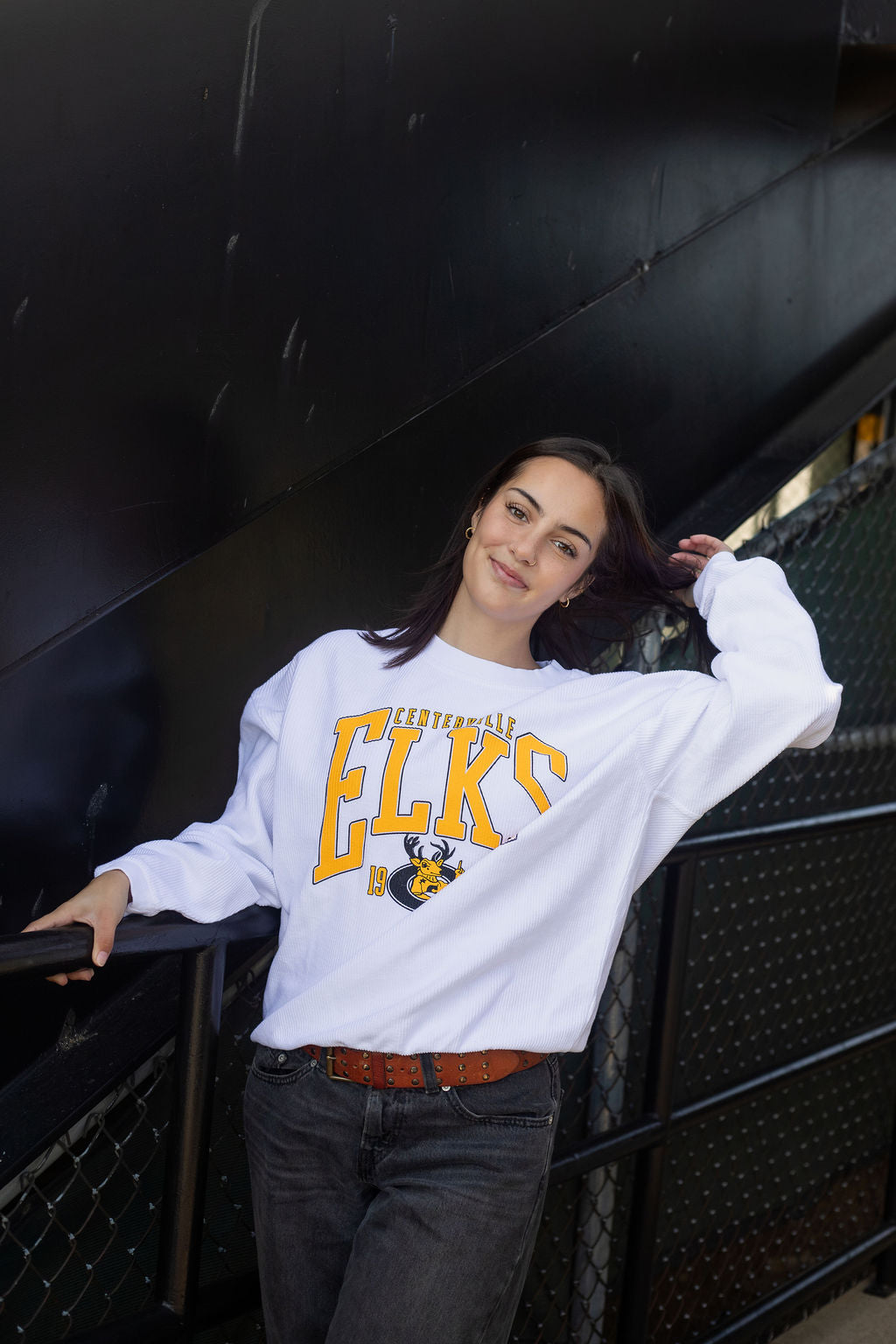 Elks Block White Ribbed Crew Sweatshirt - Full Length