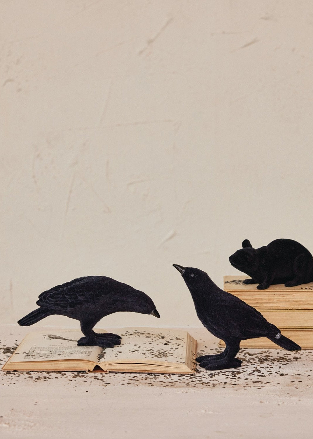 Add a touch of spooky fun with this flocked resin crow, featuring a soft, velvety texture that brings halloween charm to any space.
