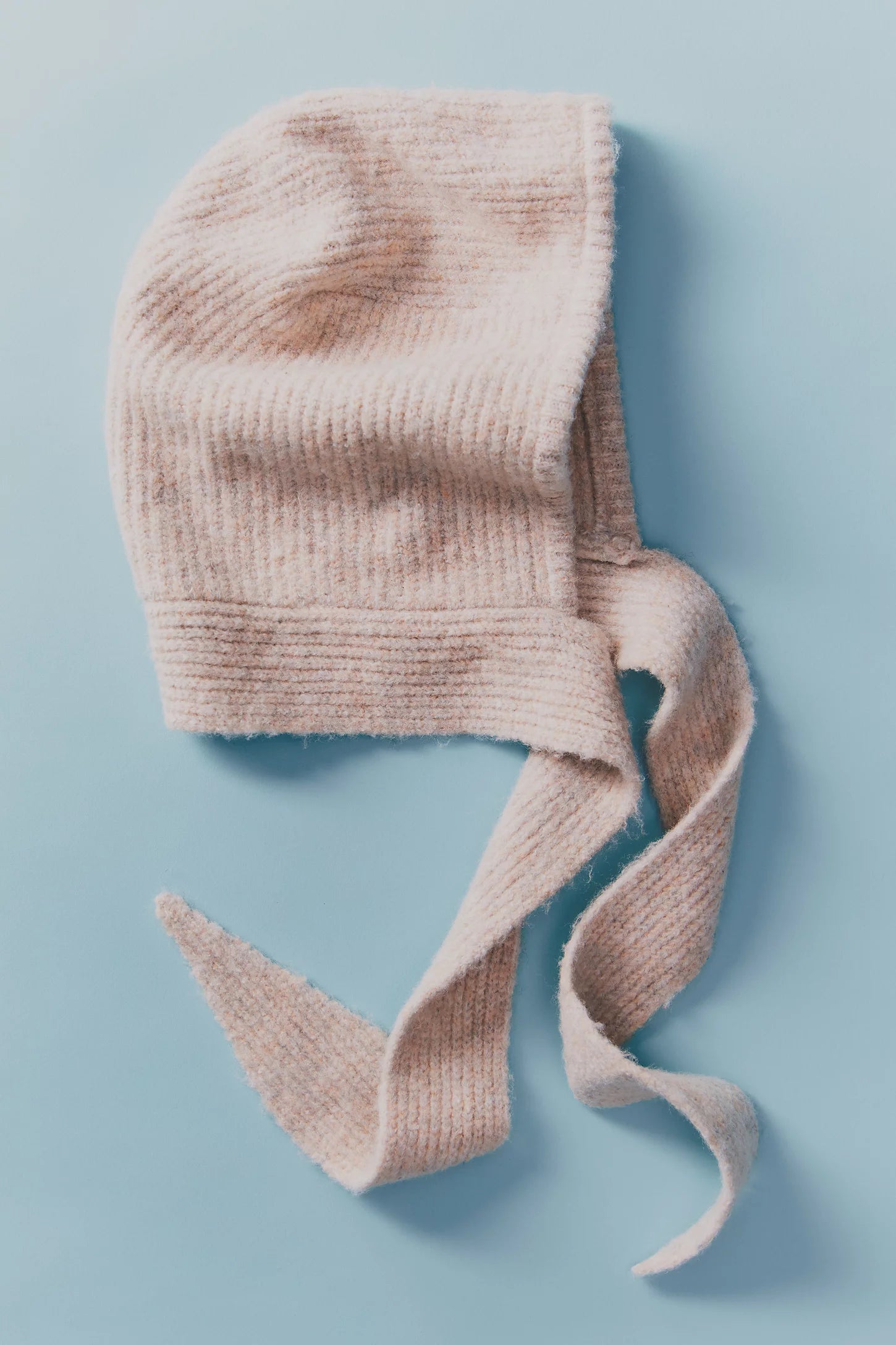 Stay warm with this oh-so-cozy and chic bonnet, featuring knit fabrication and an adjustable self-tie closure.