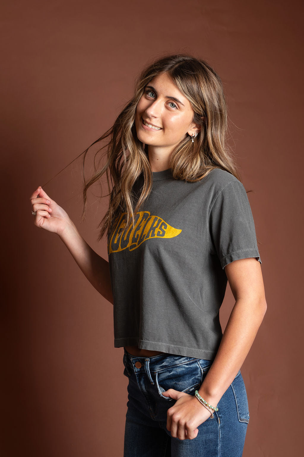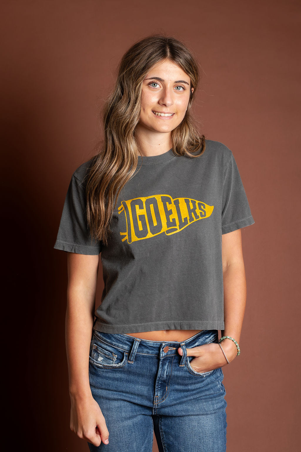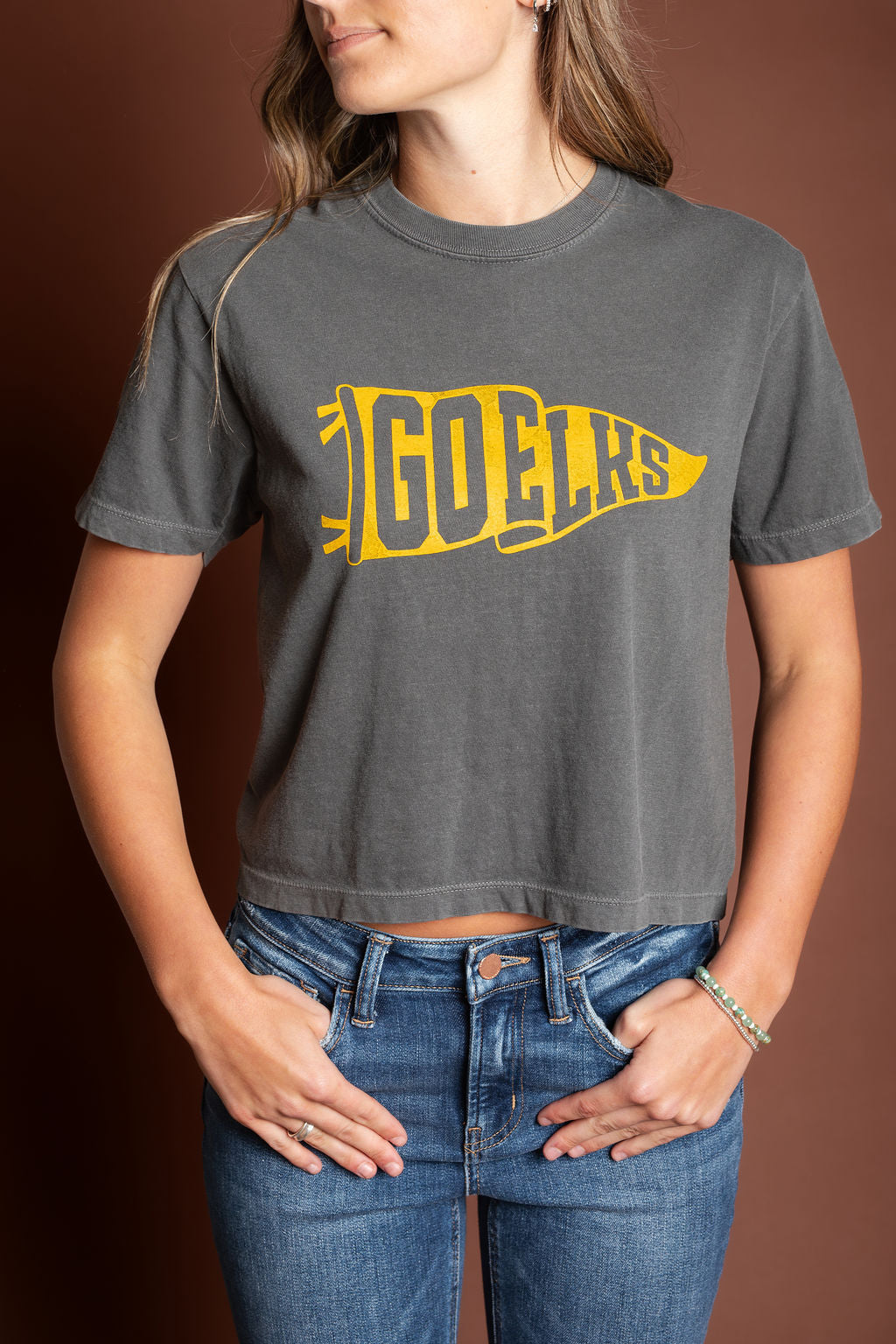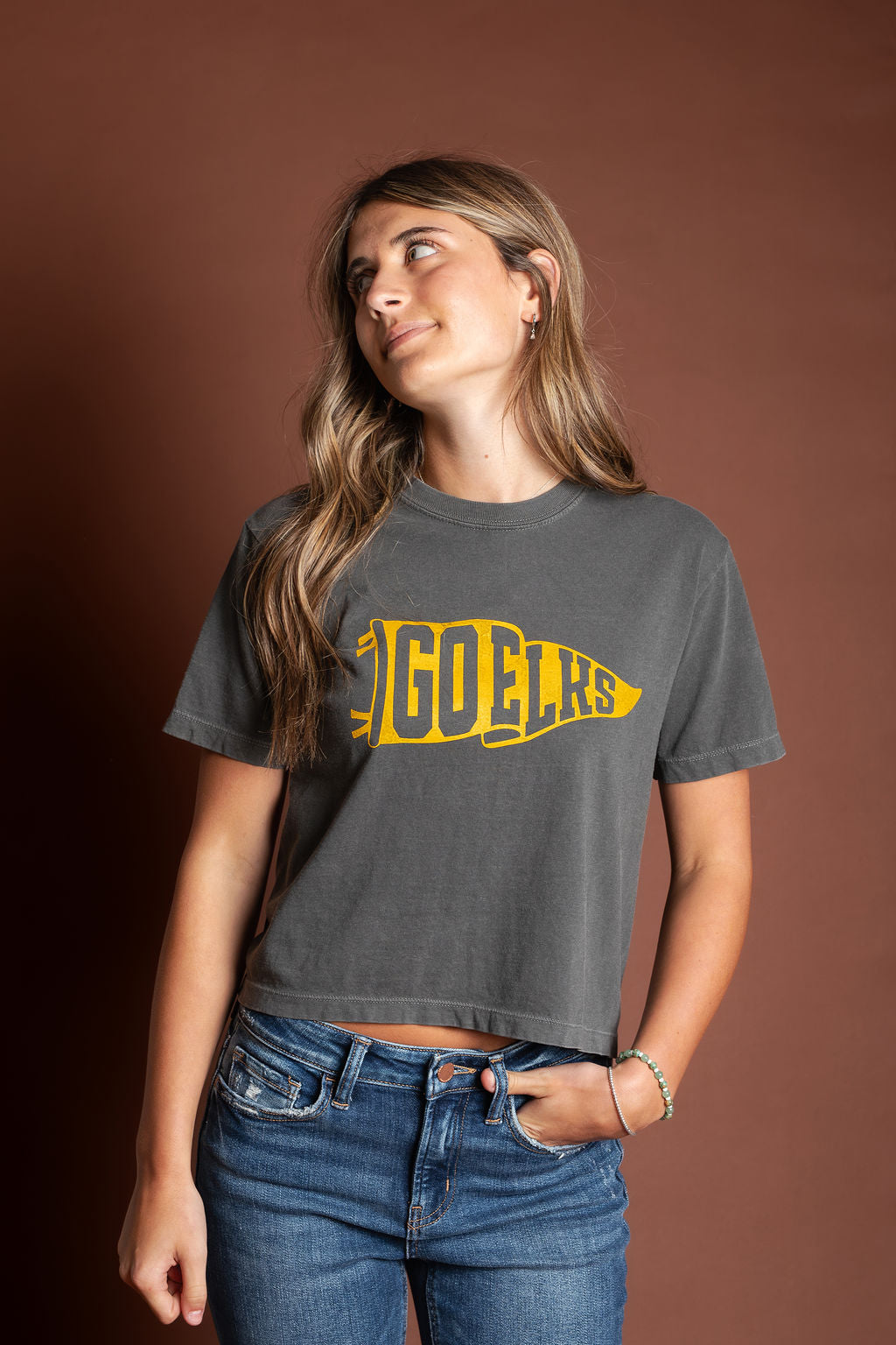 Adult | Charcoal | Go Elks Pennant Women's Crop Tee