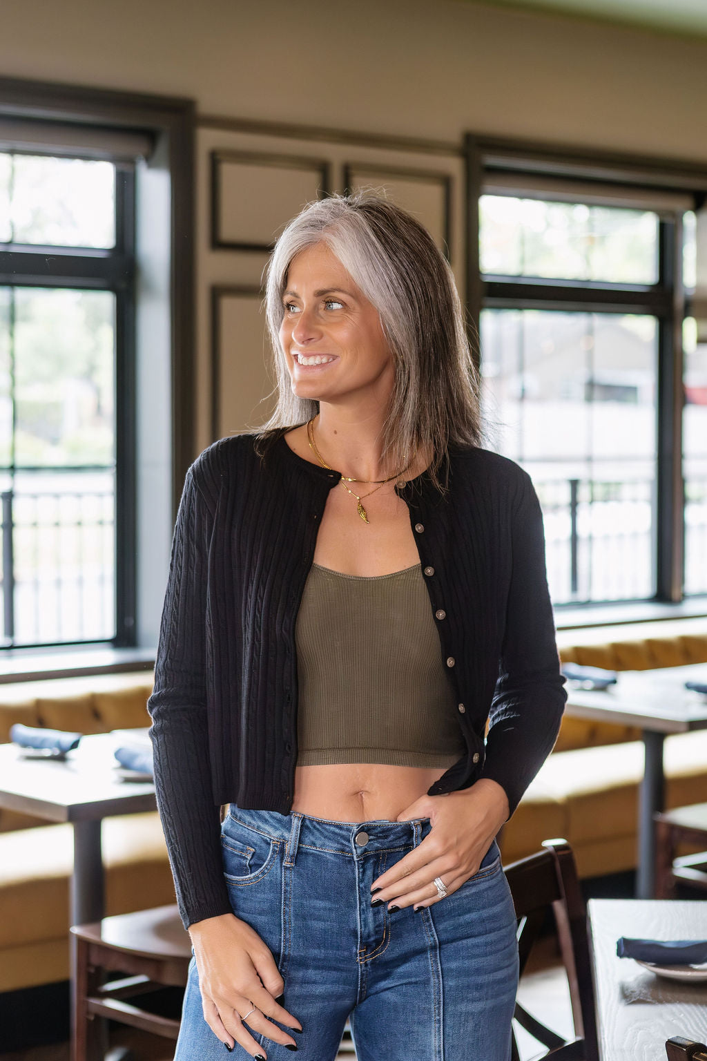 Halley Black Cable Long Sleeve Buttoned Cardigan