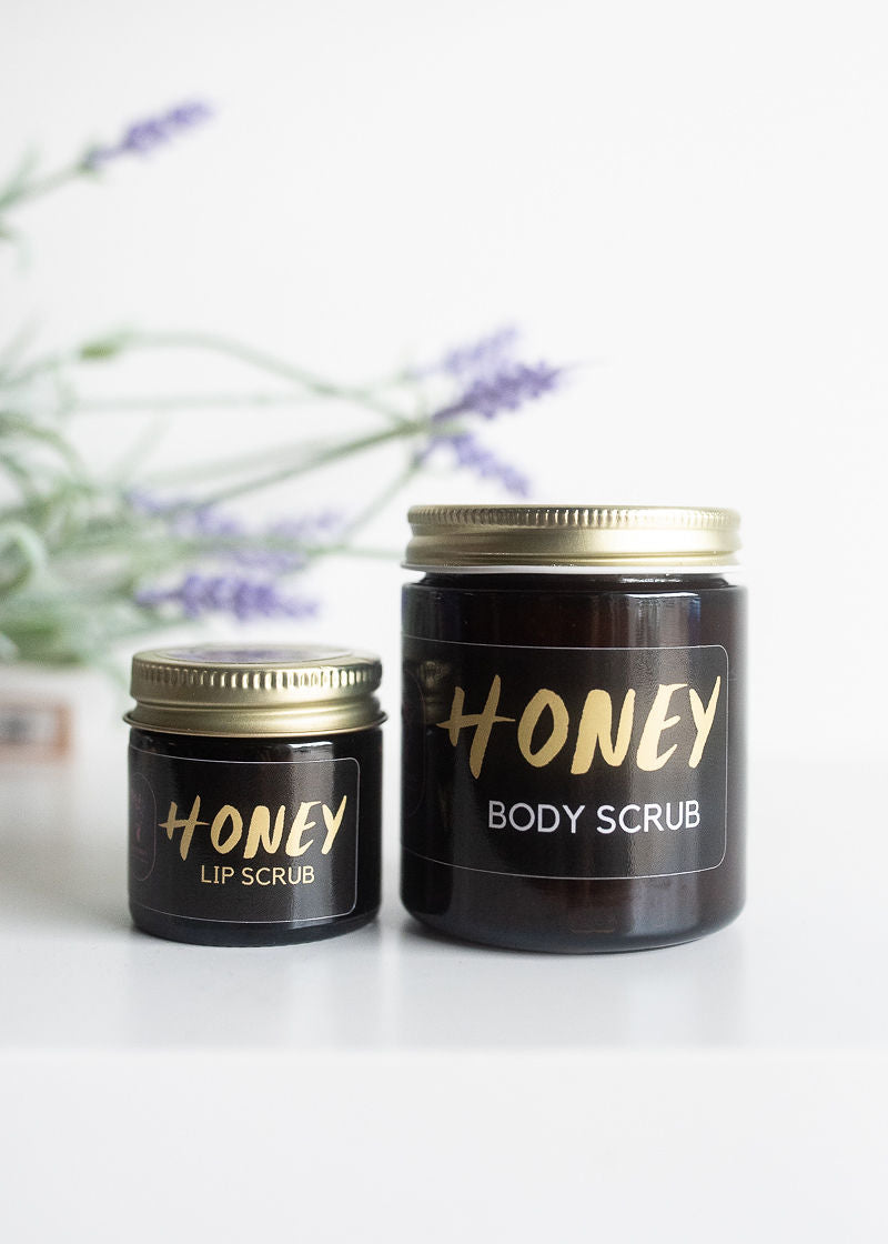 Ingredients:Â sucrose, vitis vinifera (grapeseed) oil,olea europaea (olive fruit) oil, organic local honey, tocopherol (vitamin e), pure Madagascar vanilla extract, molasses, HLG lavender oil
