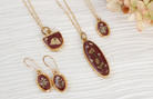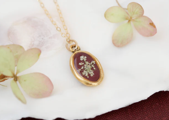 Mini Oval Burgundy with Queen Anne’s Lace Necklace by Rebecca Noel Designs