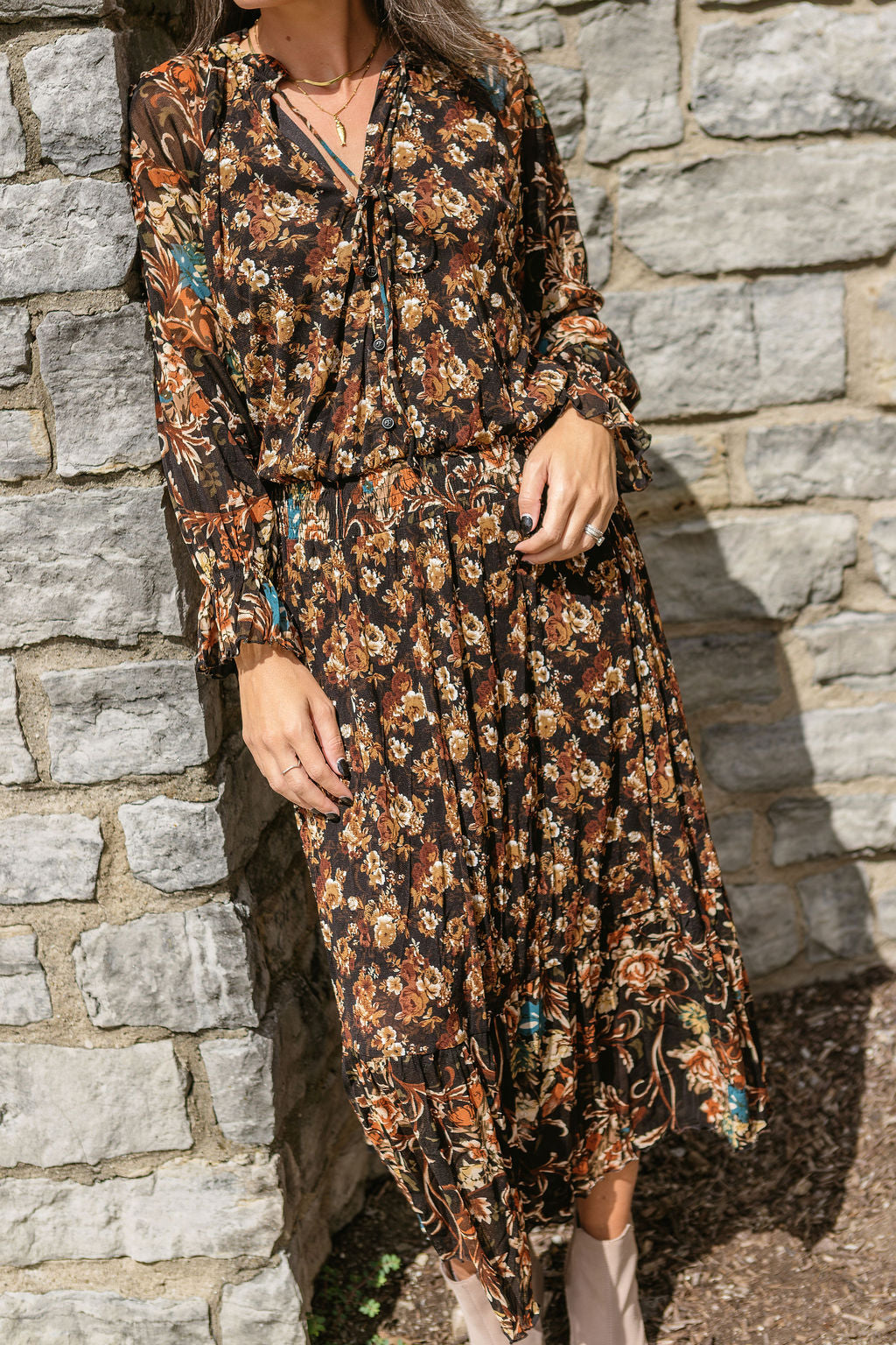 Litia Black Floral Mesh Ruffle Maxi Dress