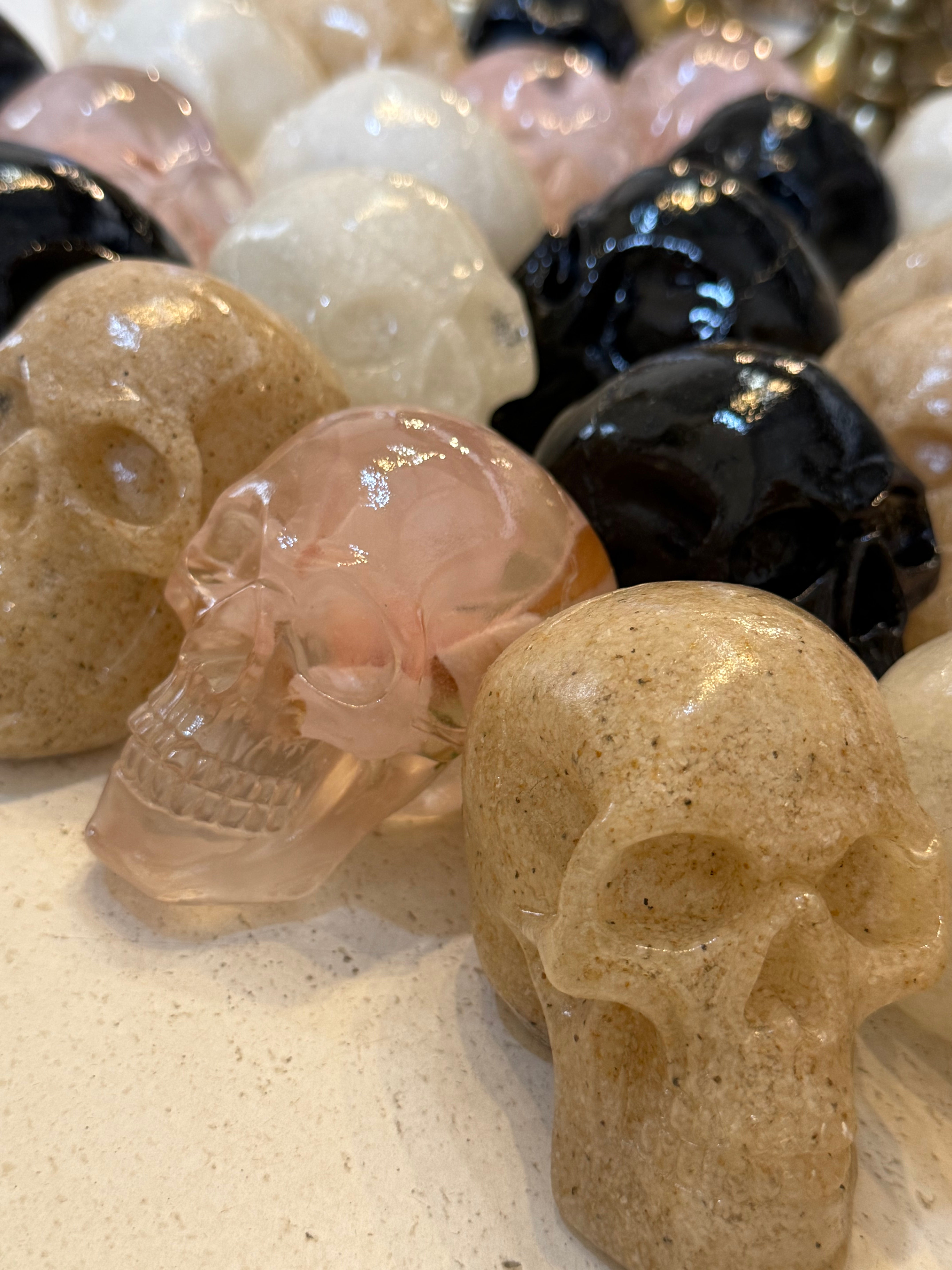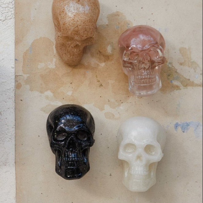 Add a splash of spooky fun to your space with our multi-colored polyresin skulls.They look like carved stones and are read y for your spooky decor! Durable and vibrant, these resin skulls are a lively way to celebrate your love for the unusual!