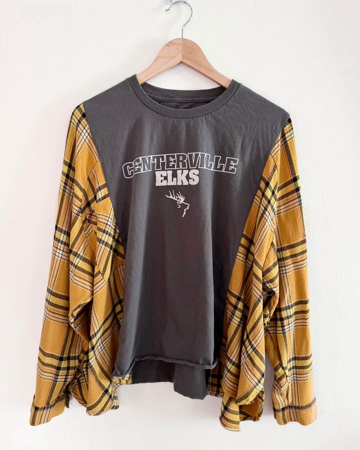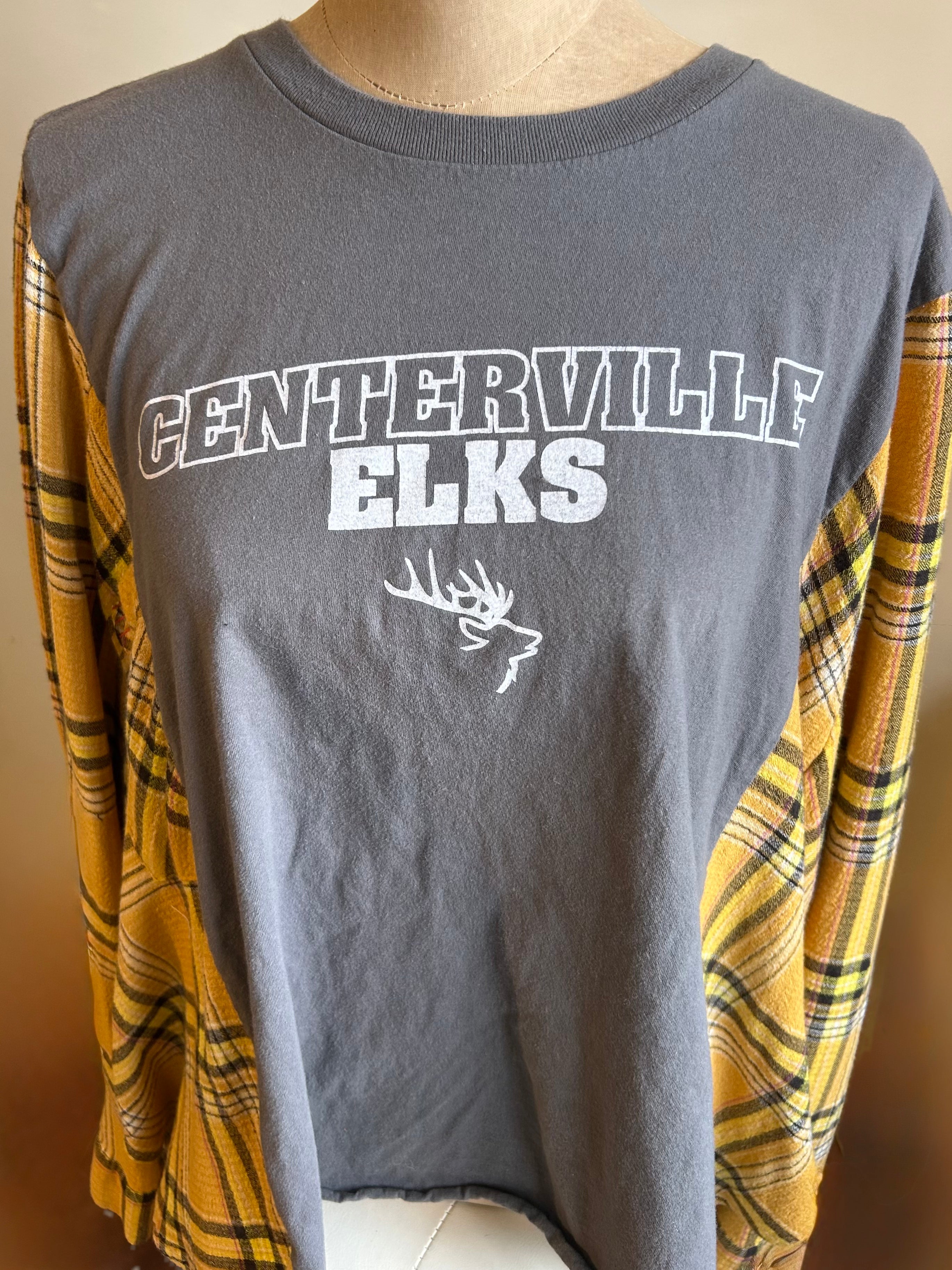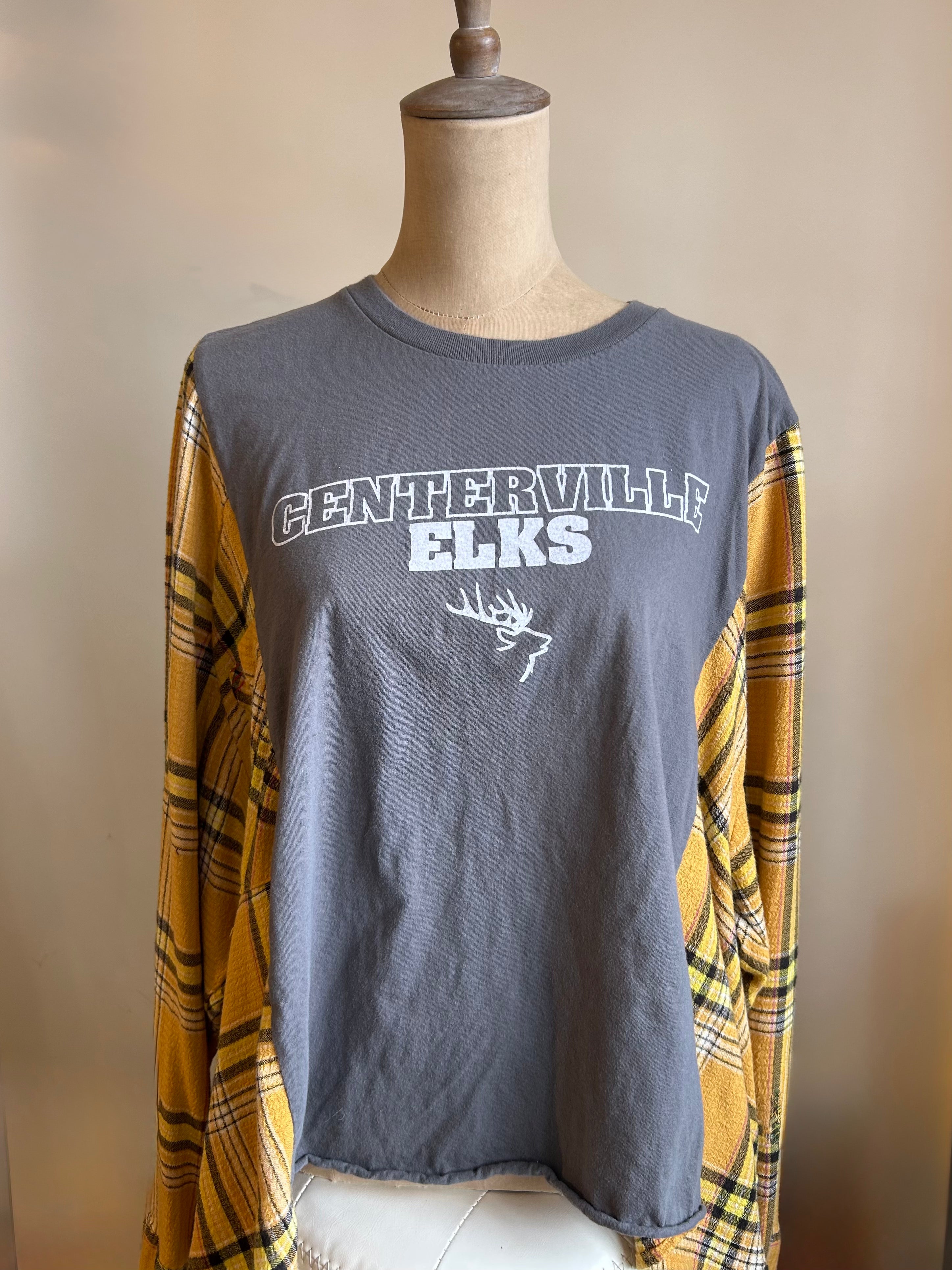 Reworked Grey Elks Plaid LS Tee by Stone & Willow