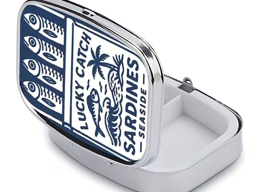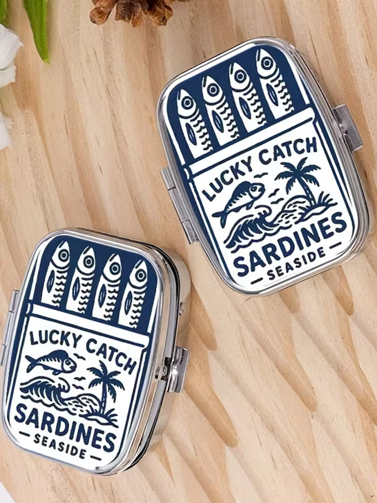 Keep your daily vitamins and supplements organized in style with this cute silver pill box. Part of our Fisherman Core collection, the compact design fits easily into purses, travel bags, or bathroom drawers, making it perfect for managing your wellness routine on the go.