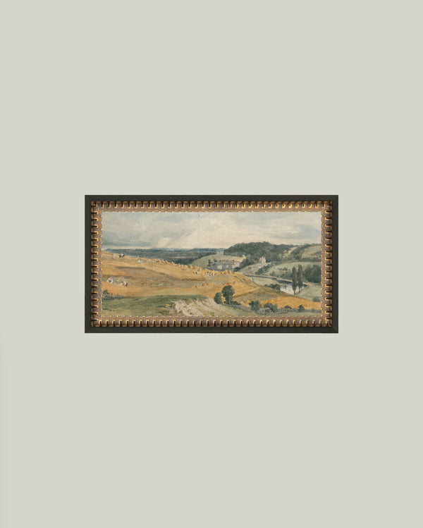 This vintage artwork is printed on raw canvas and placed in an antique frame for an authentic, timeless look.