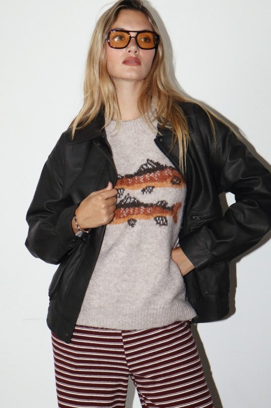 Upstream Trout Graphic Knit Sweater - Oatmeal