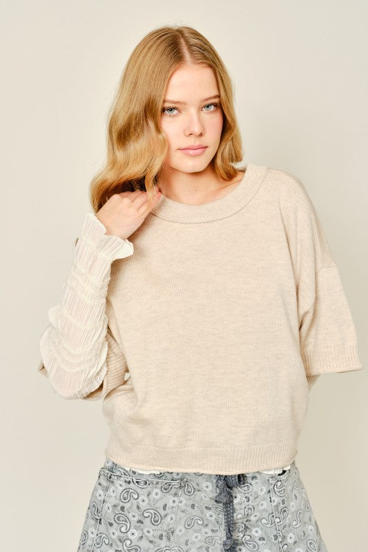Piper Oak Two Tone Peplum Sweater Top