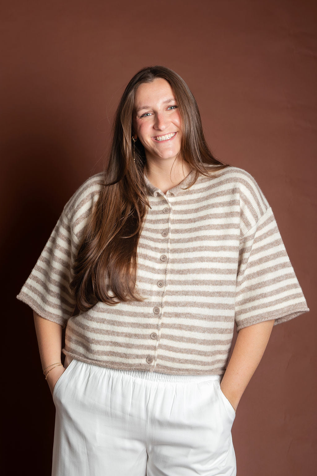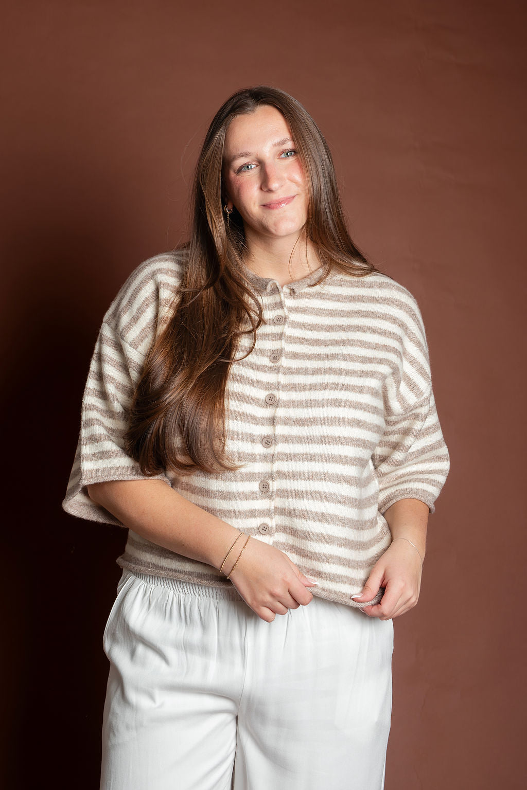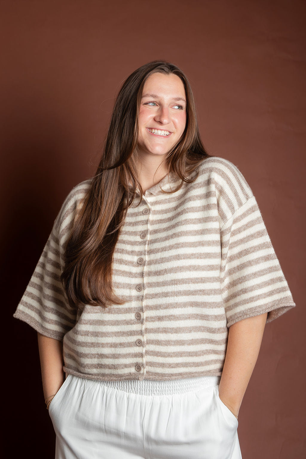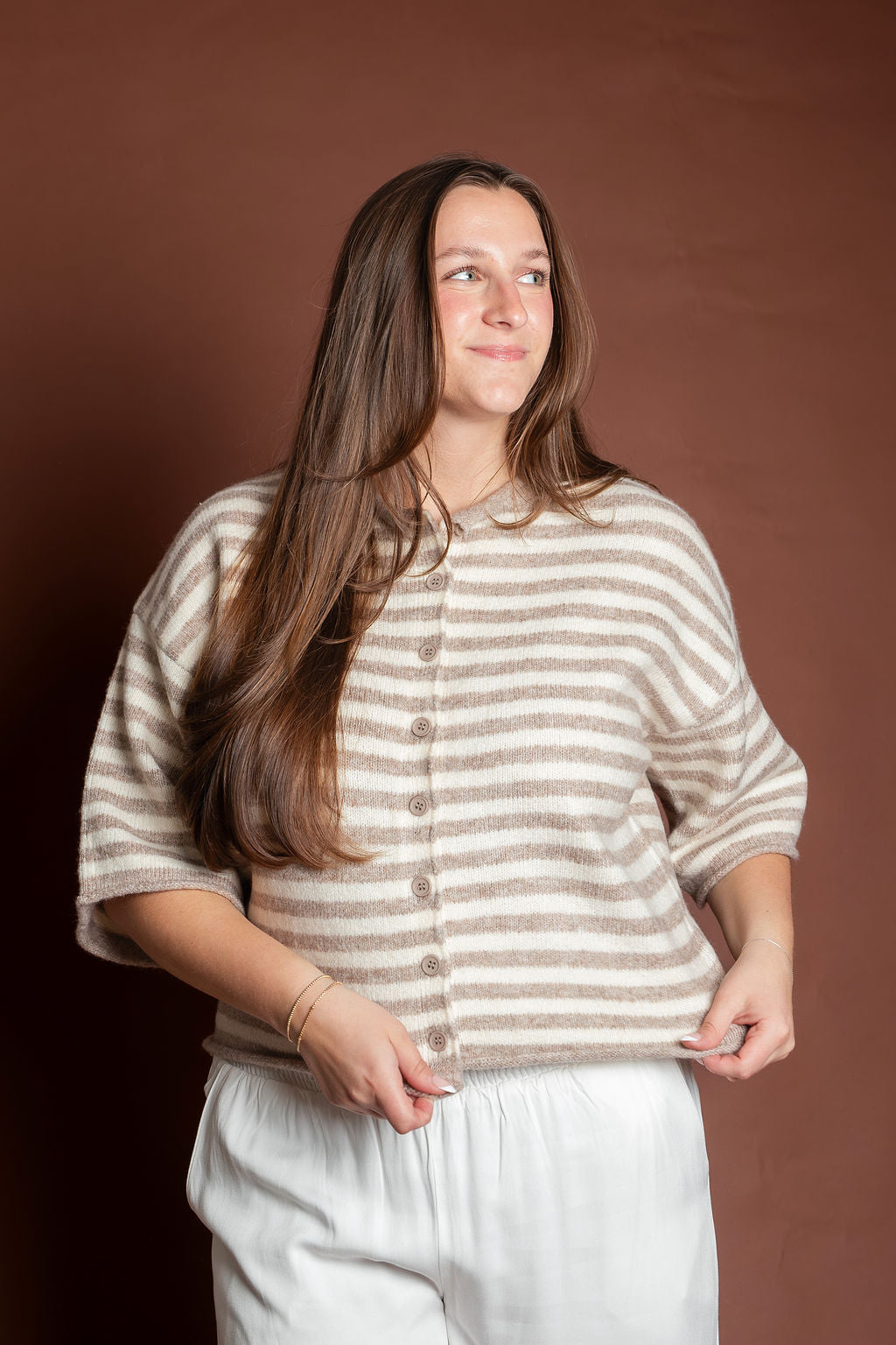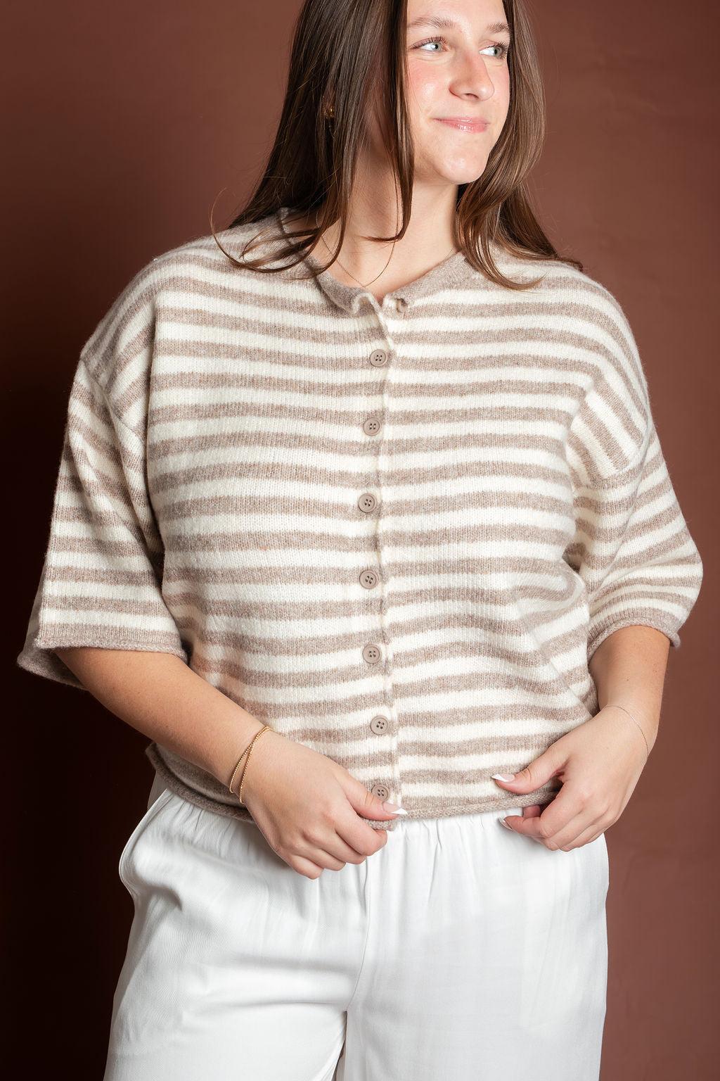 Kelsey Taupe Stripe Quarter Sleeve Cardigan