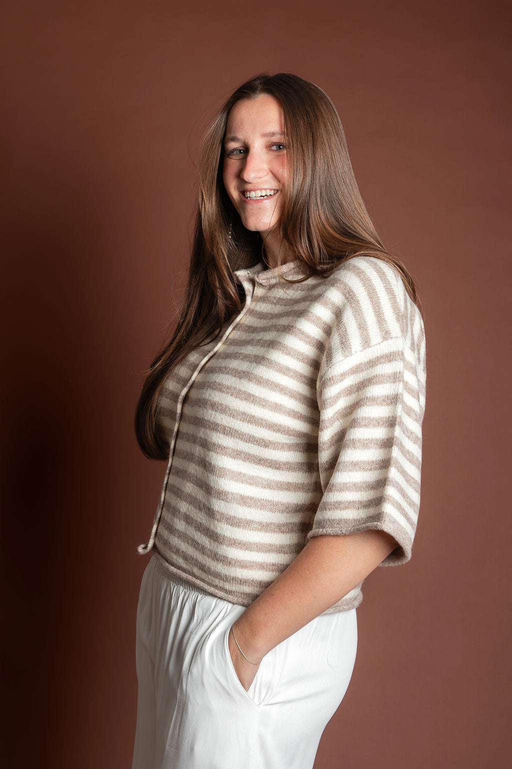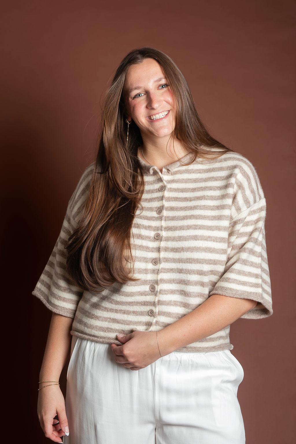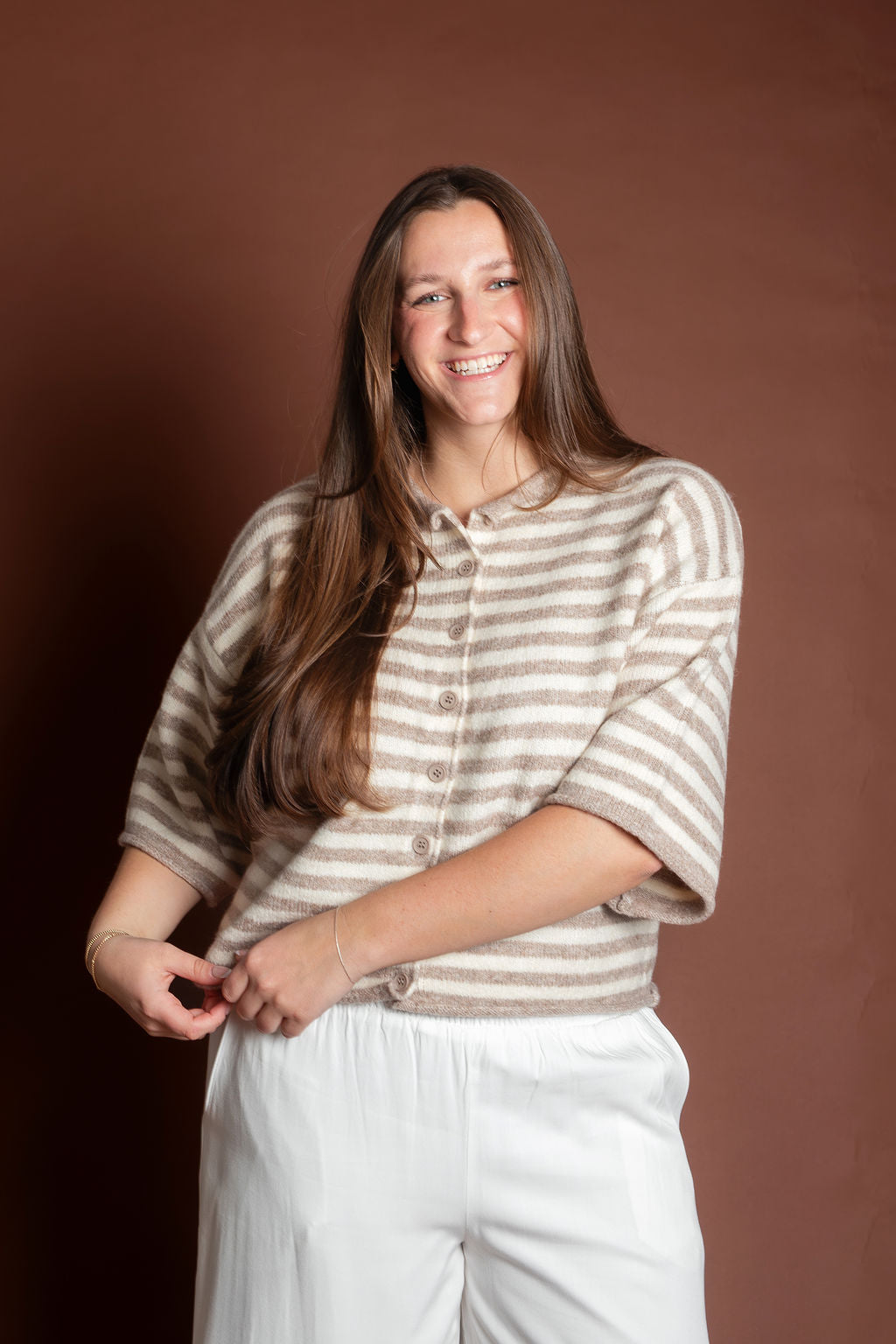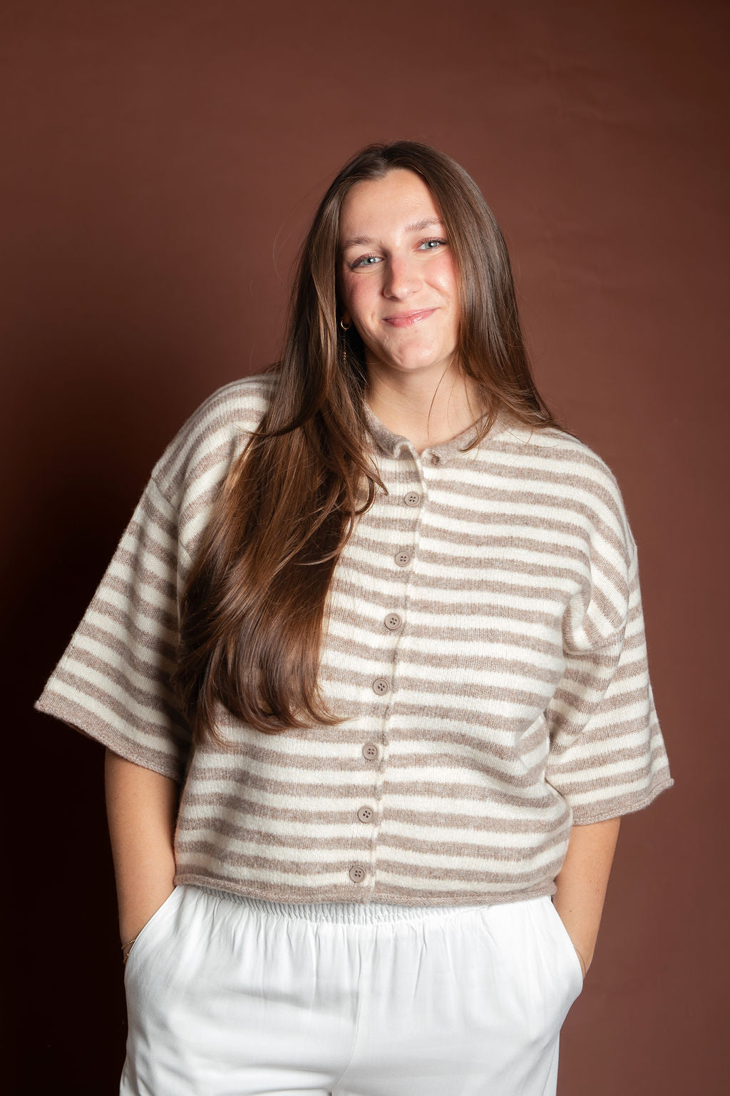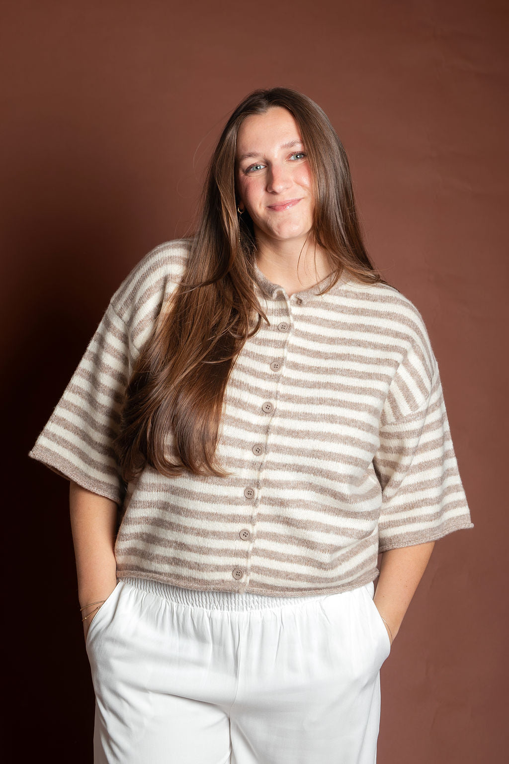 Kelsey Taupe Stripe Quarter Sleeve Cardigan
