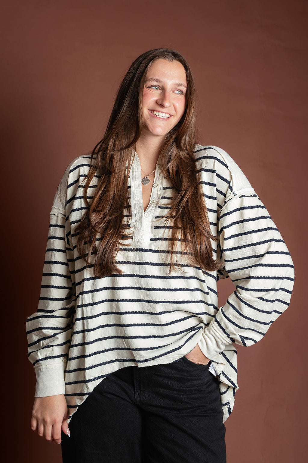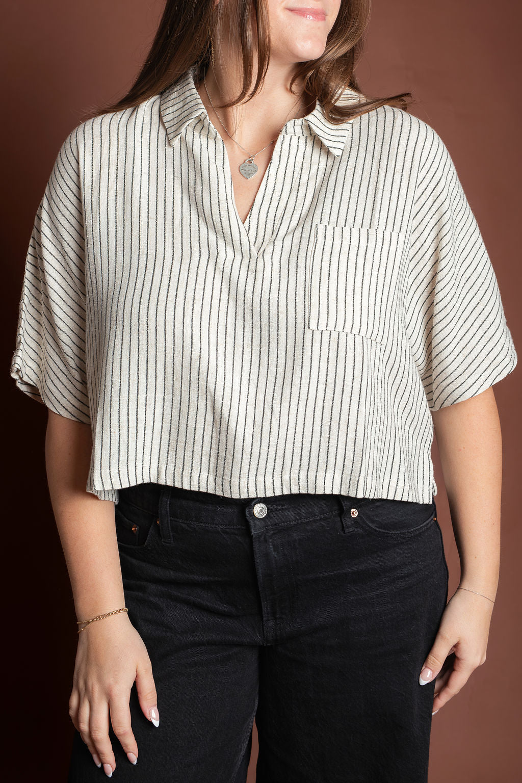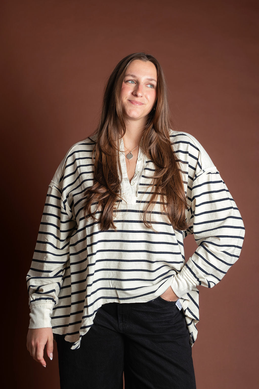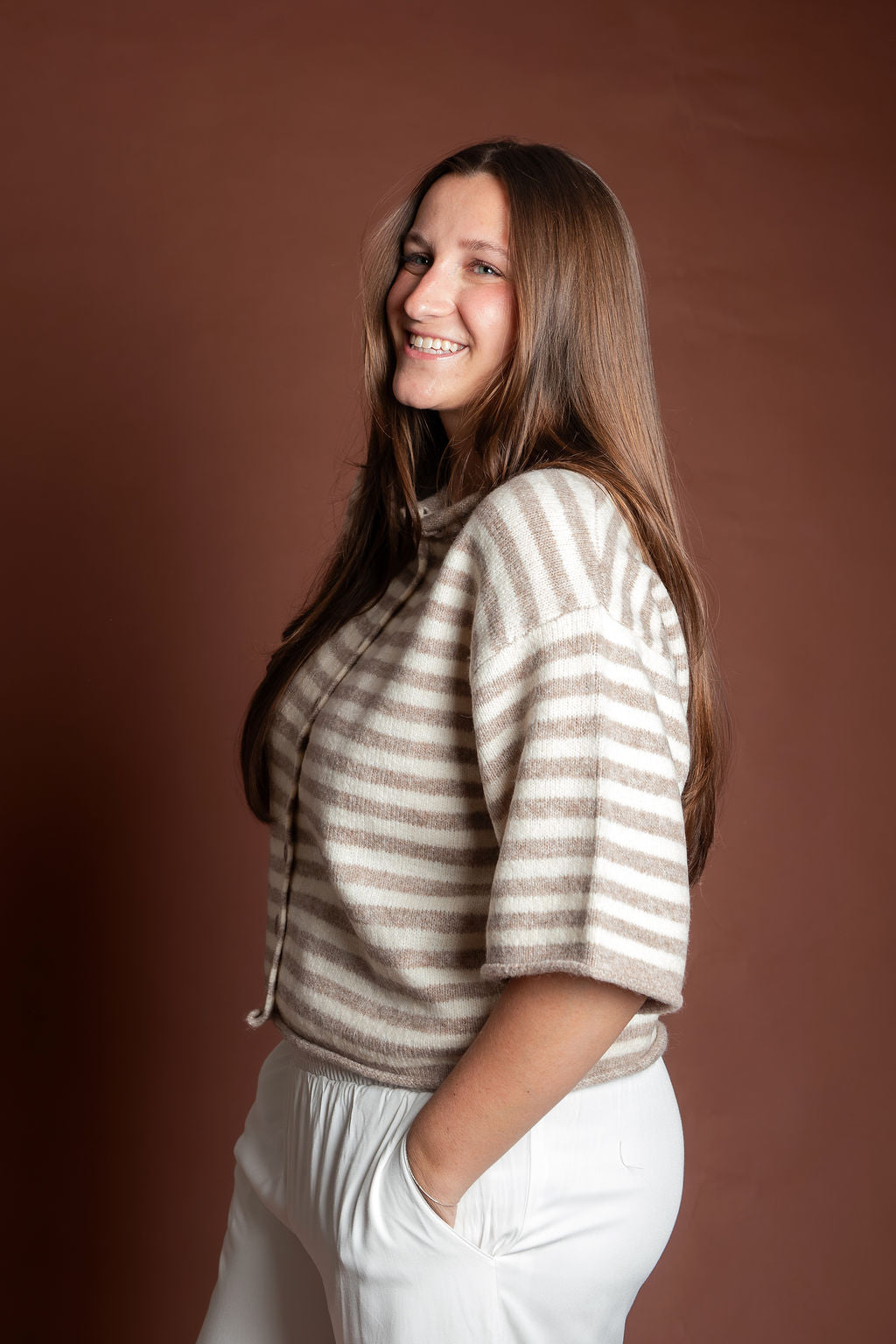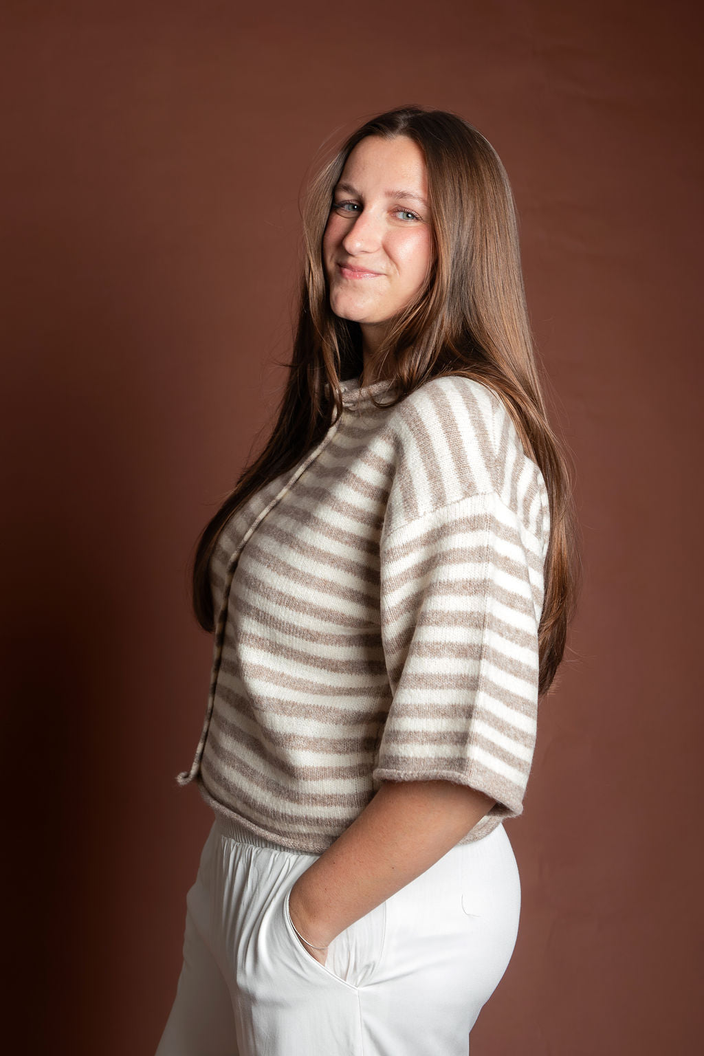 Kelsey Taupe Stripe Quarter Sleeve Cardigan
