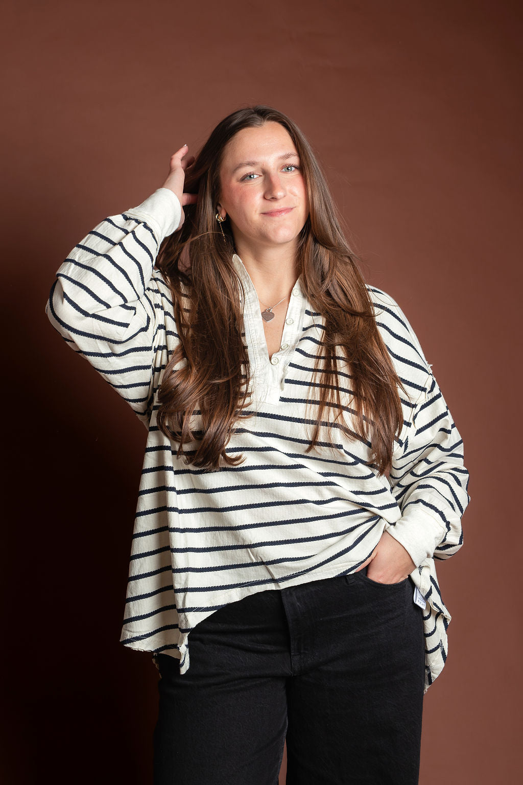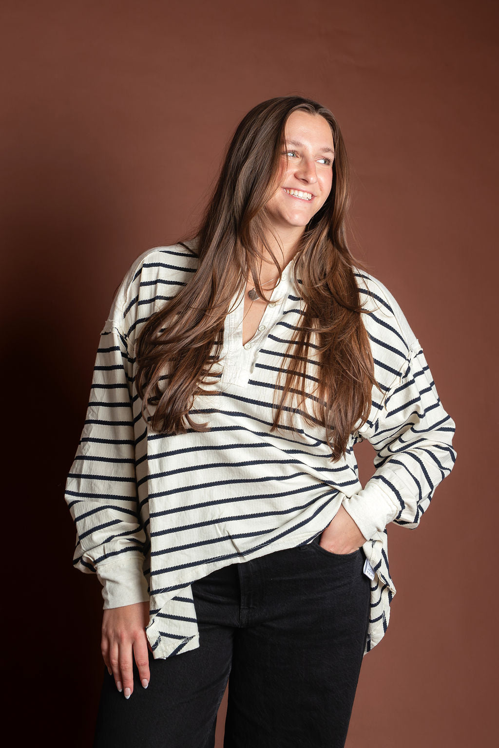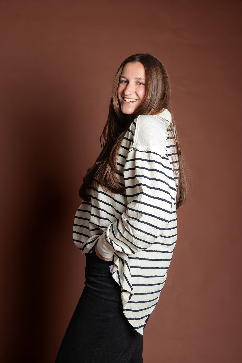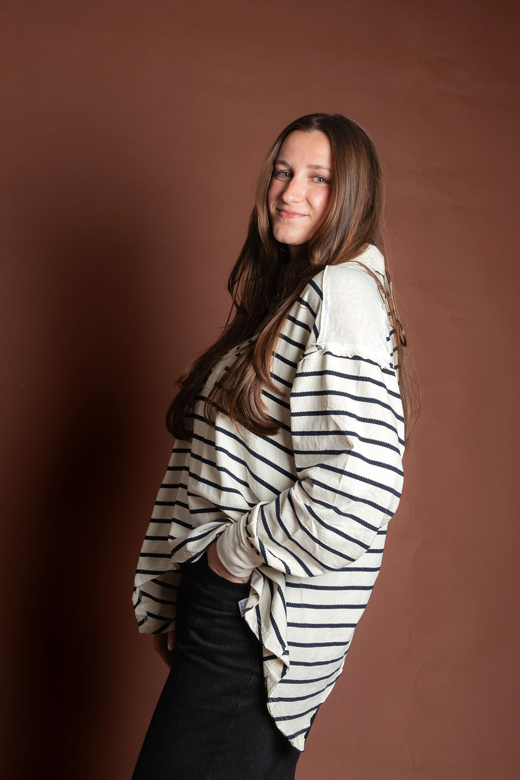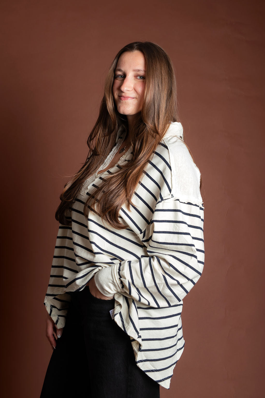 Kelsey Taupe Stripe Quarter Sleeve Cardigan