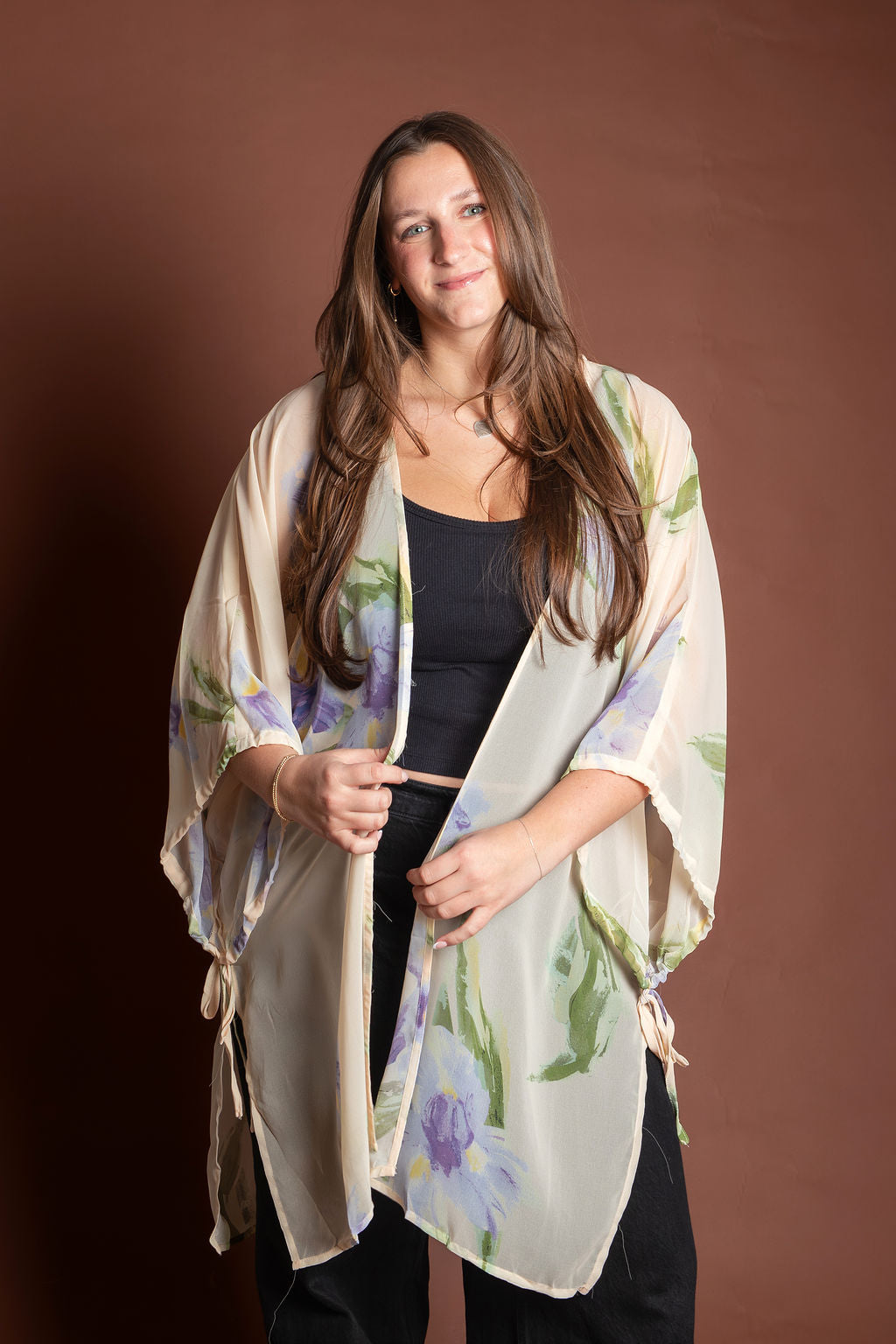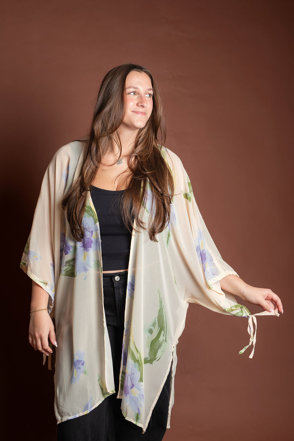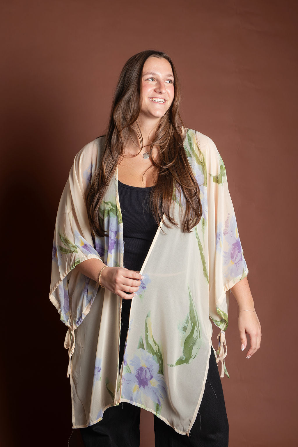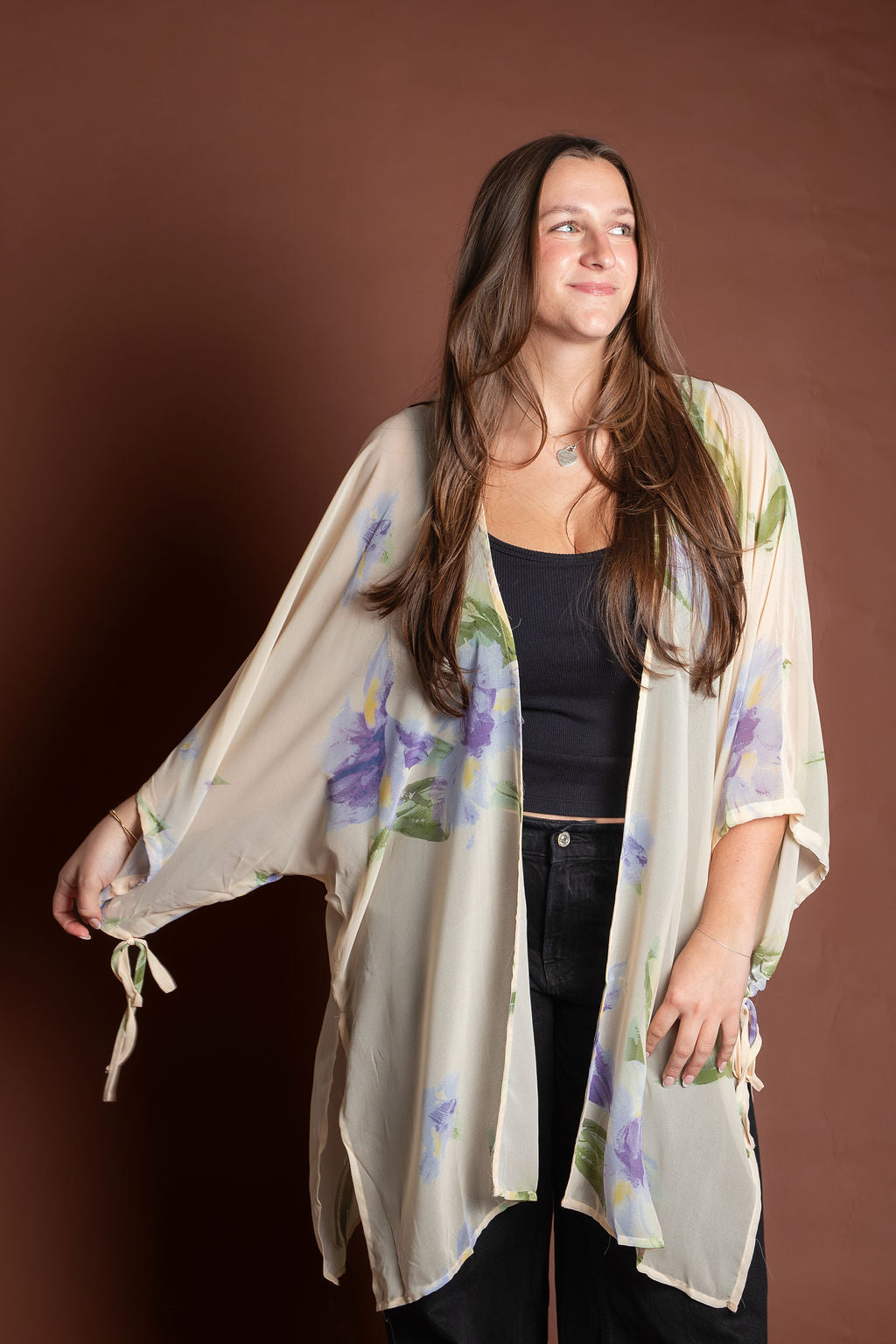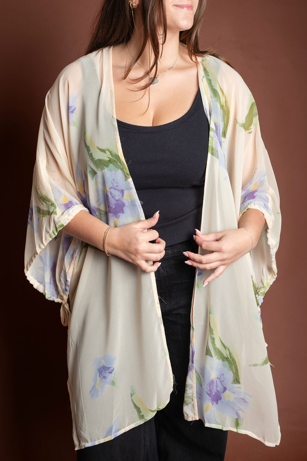 Kelsey Taupe Stripe Quarter Sleeve Cardigan