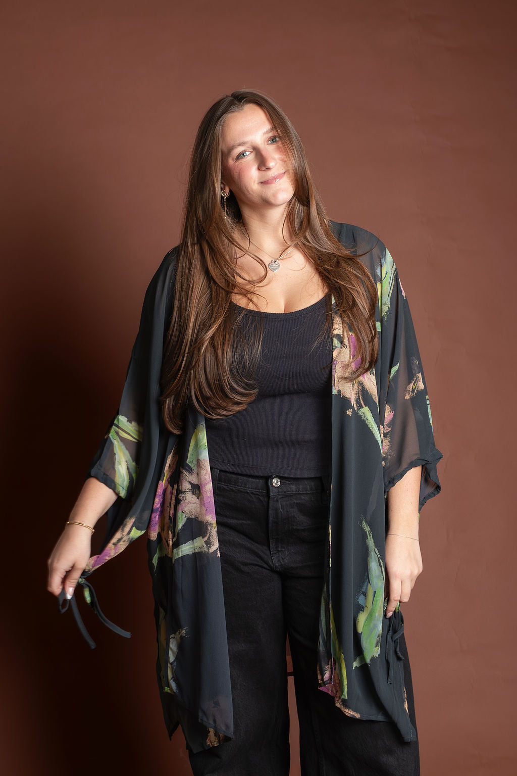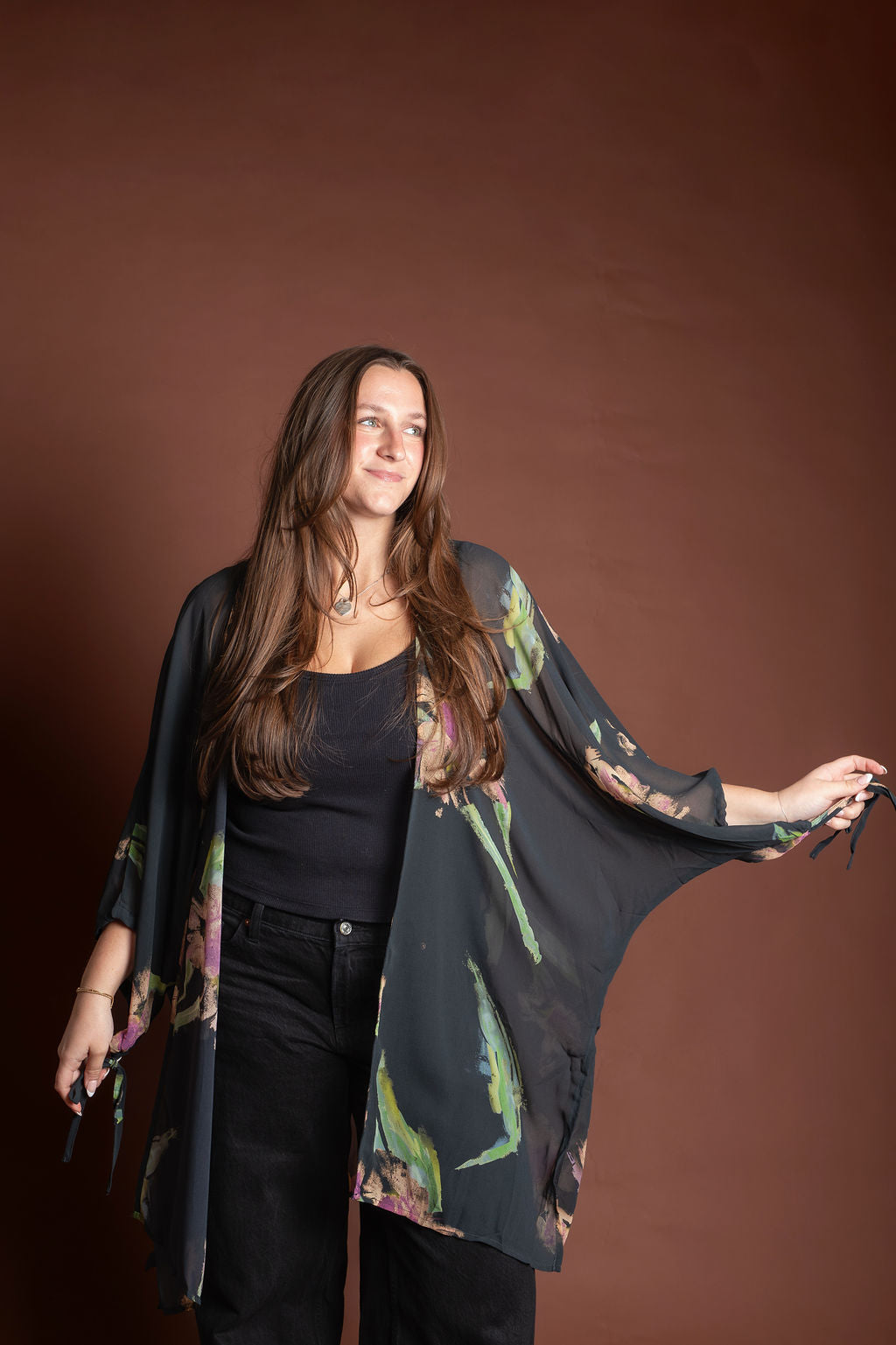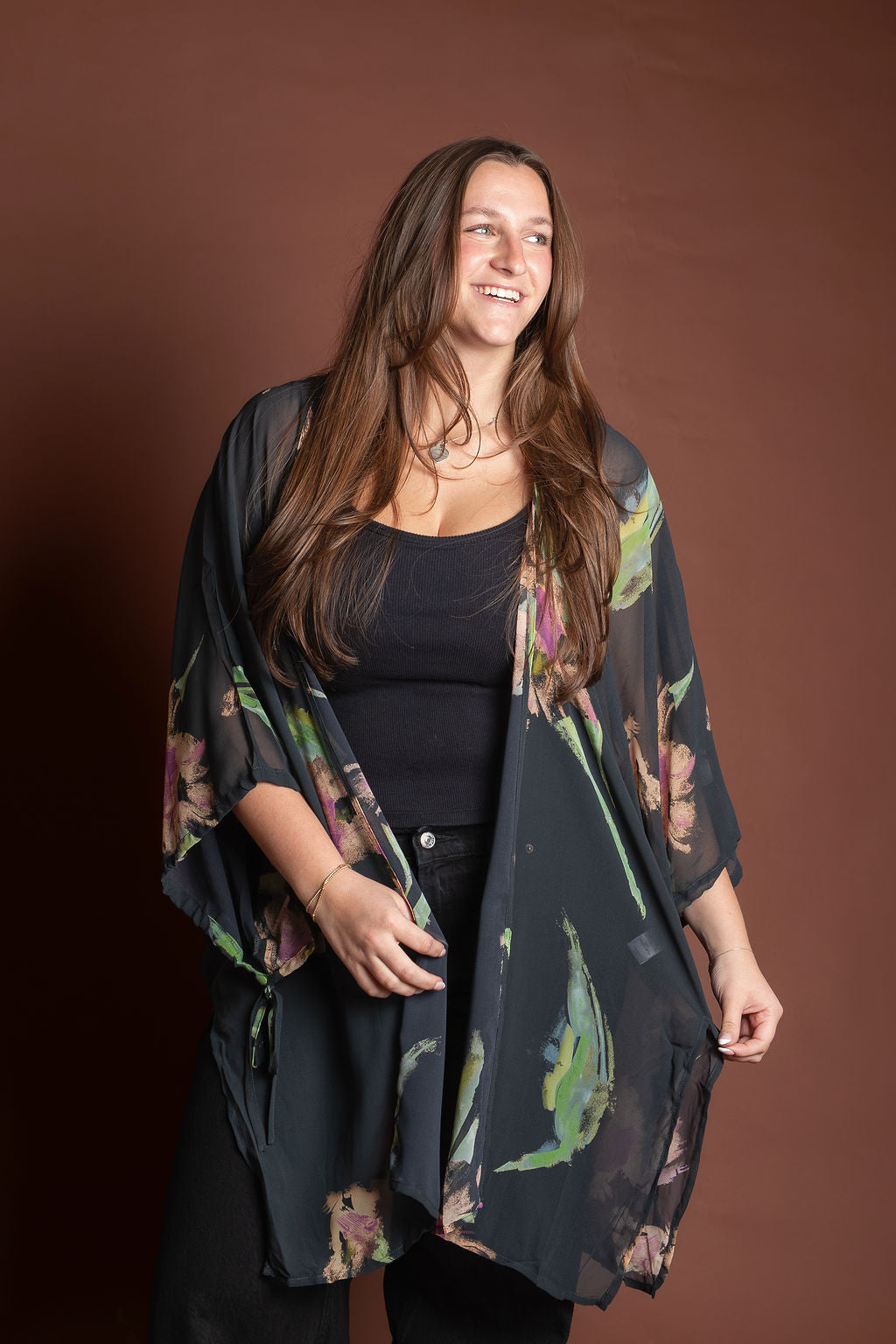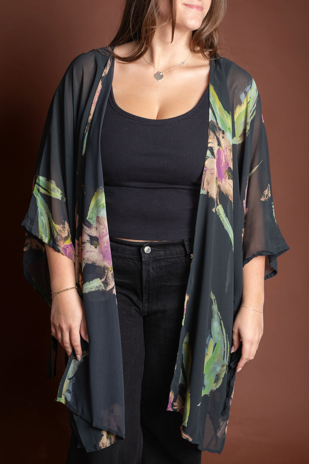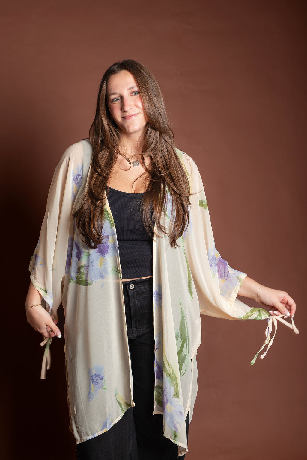 Kelsey Taupe Stripe Quarter Sleeve Cardigan