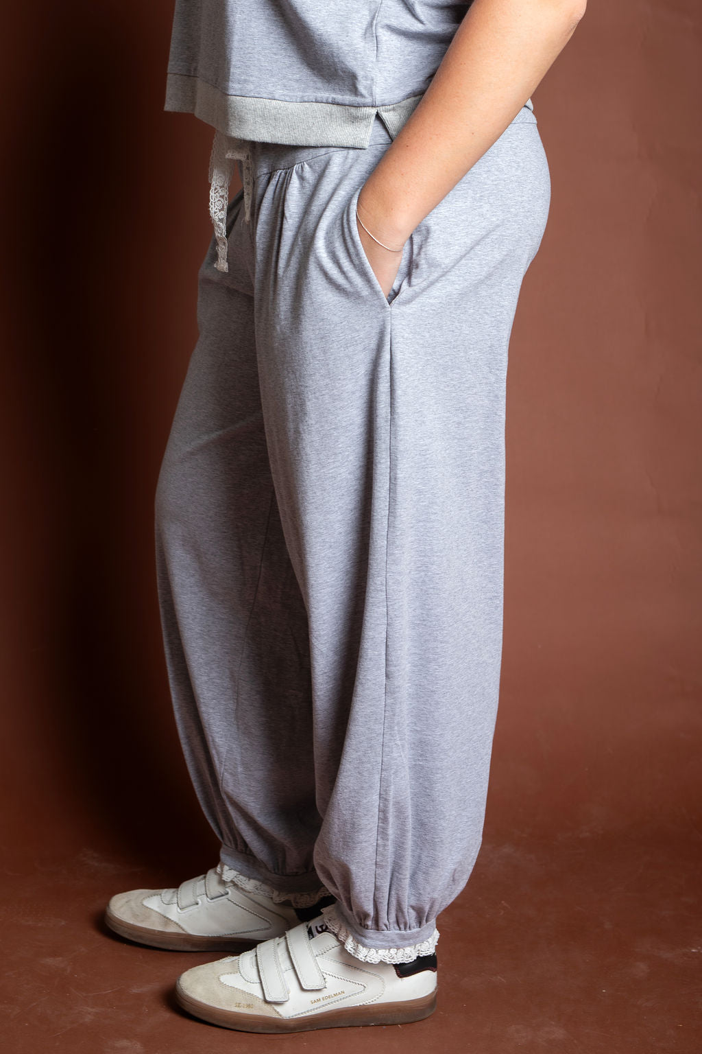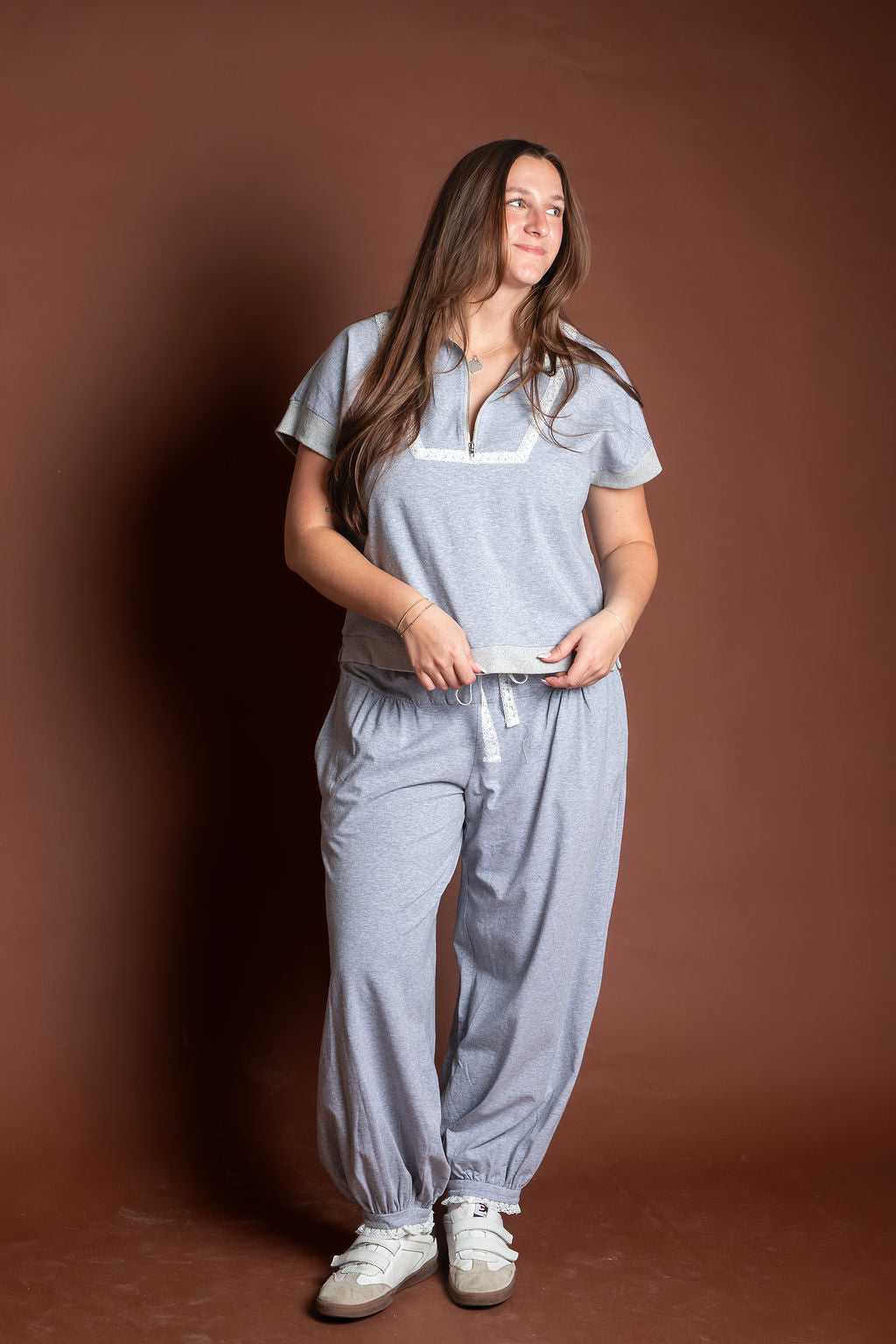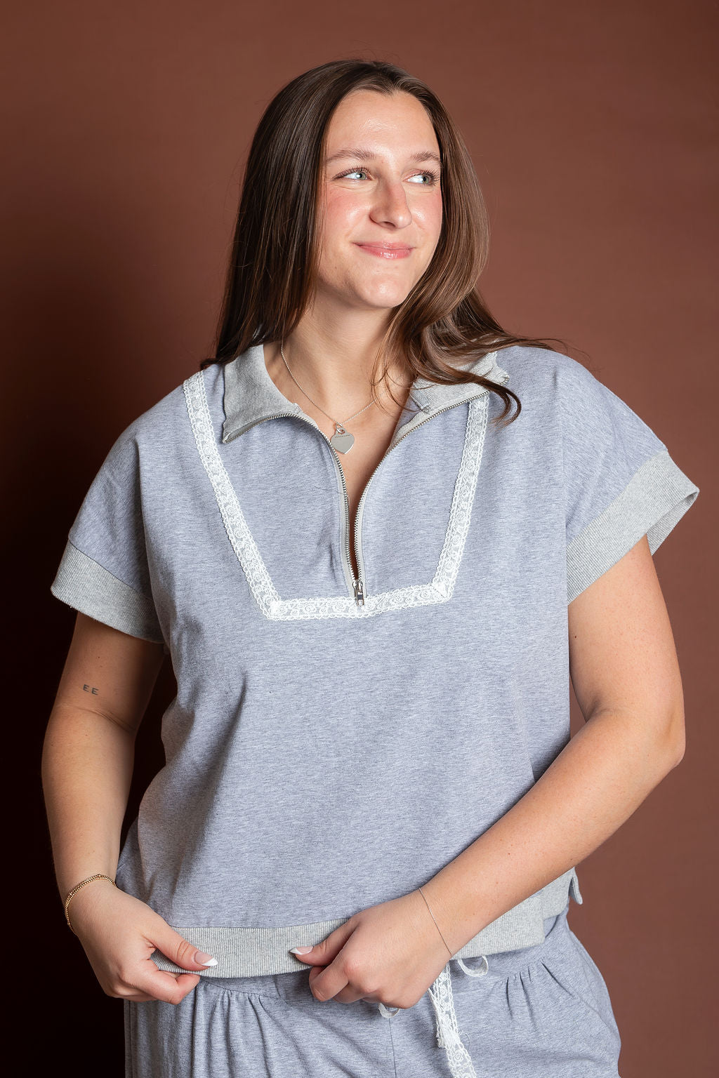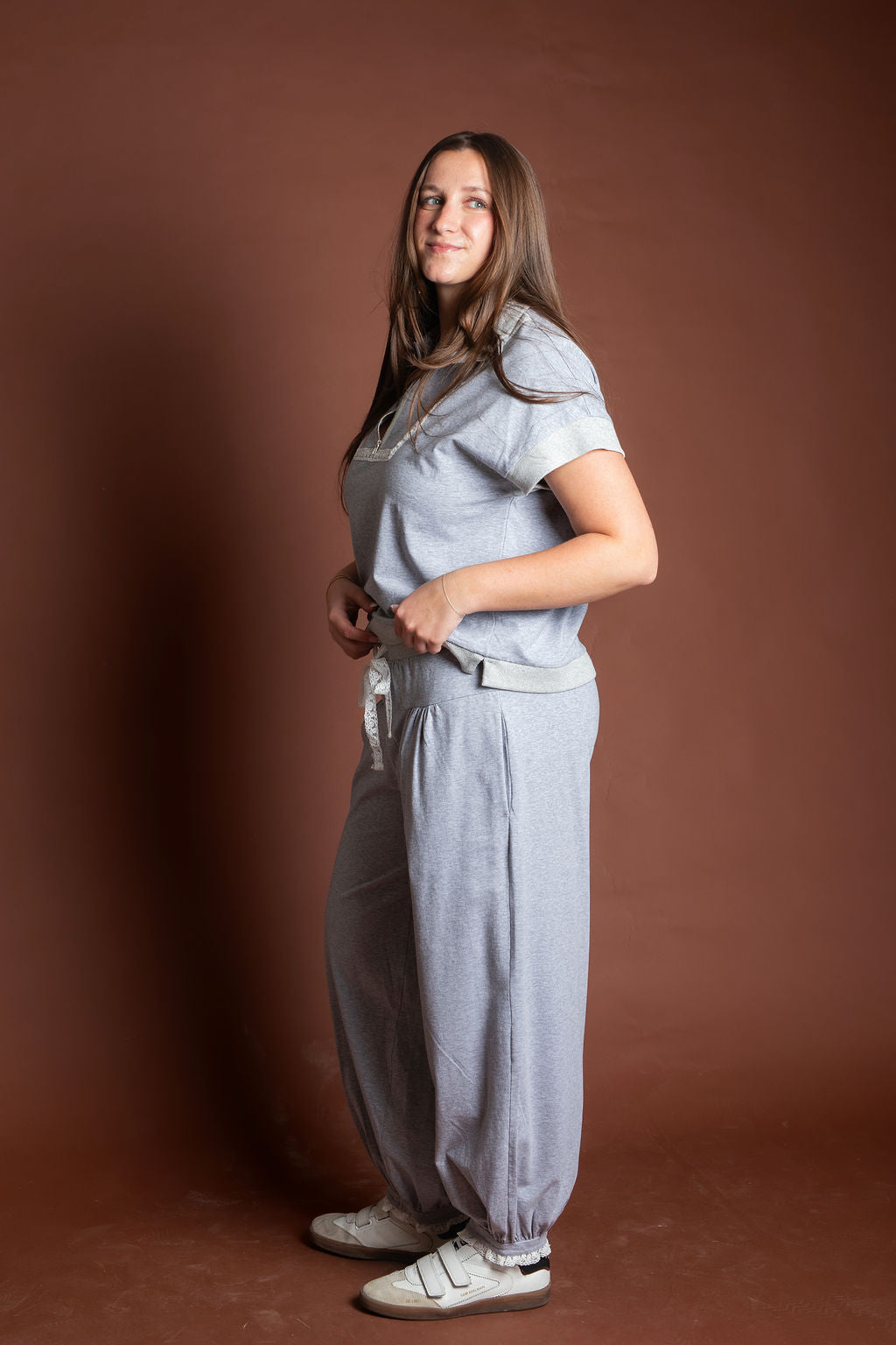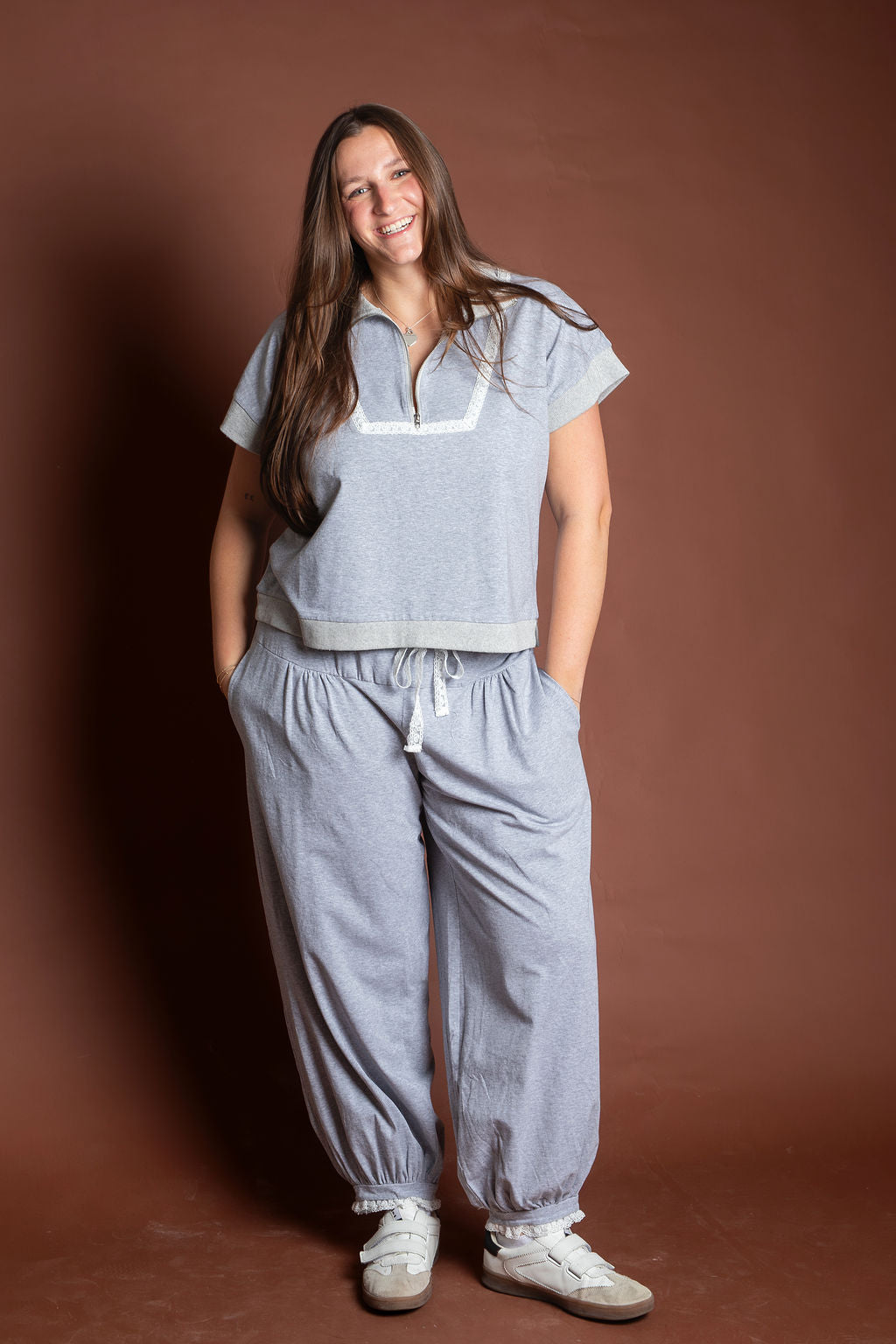SET: Mel Heather Grey Lace Trim Shirt/Sweatpant Set