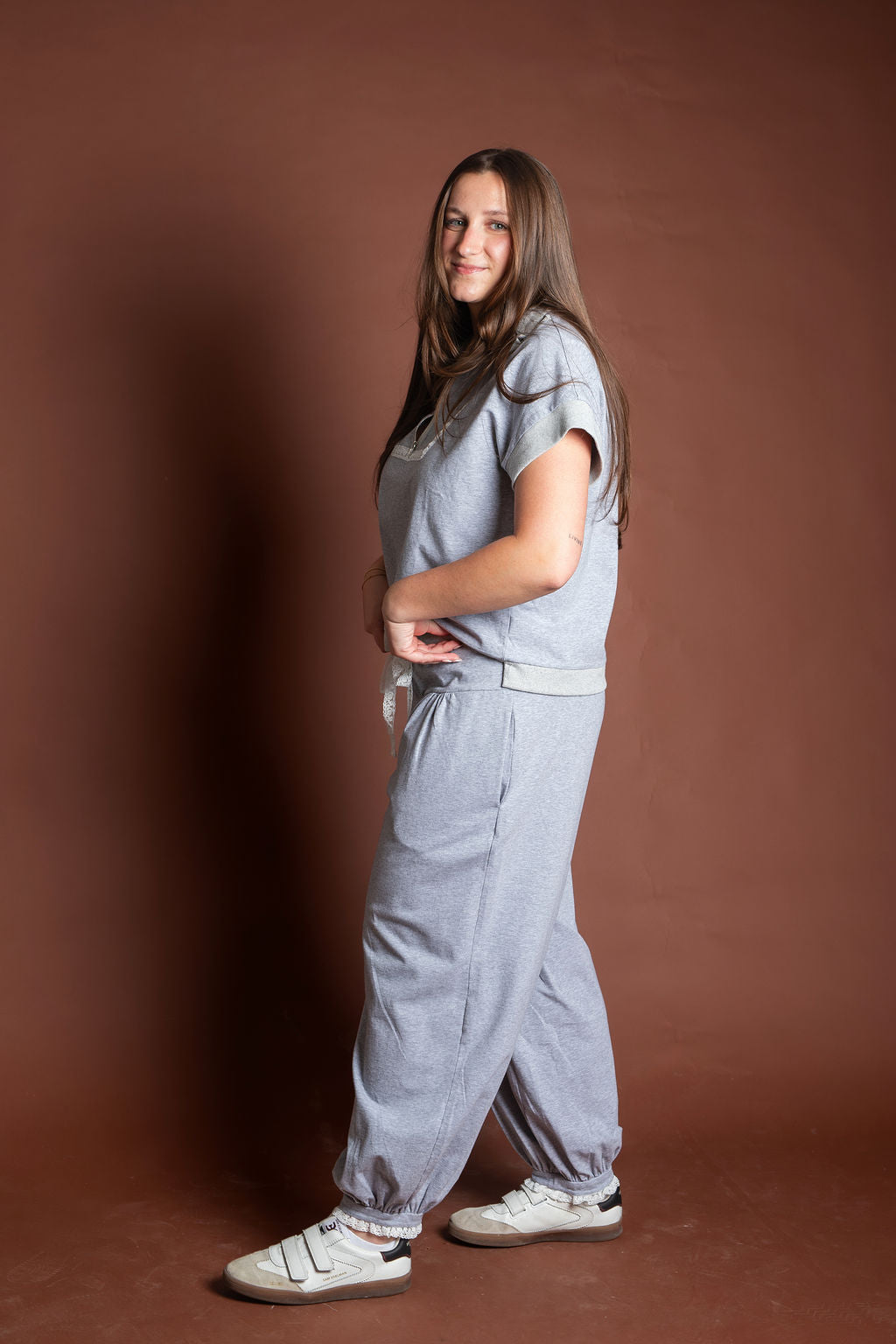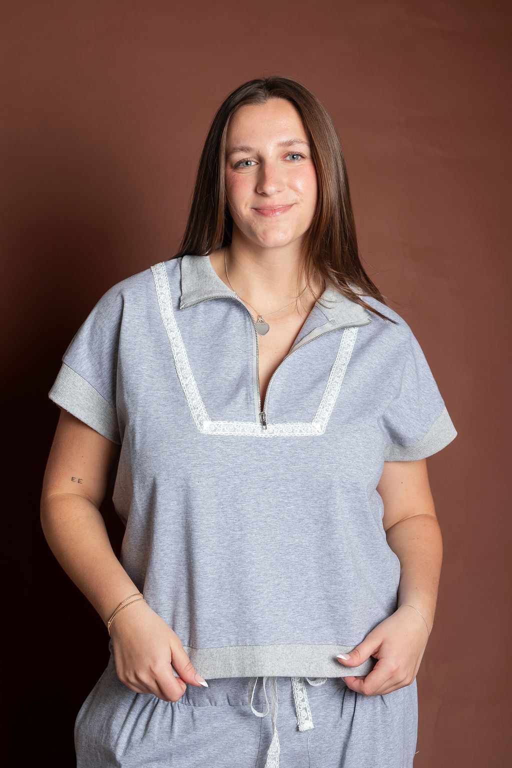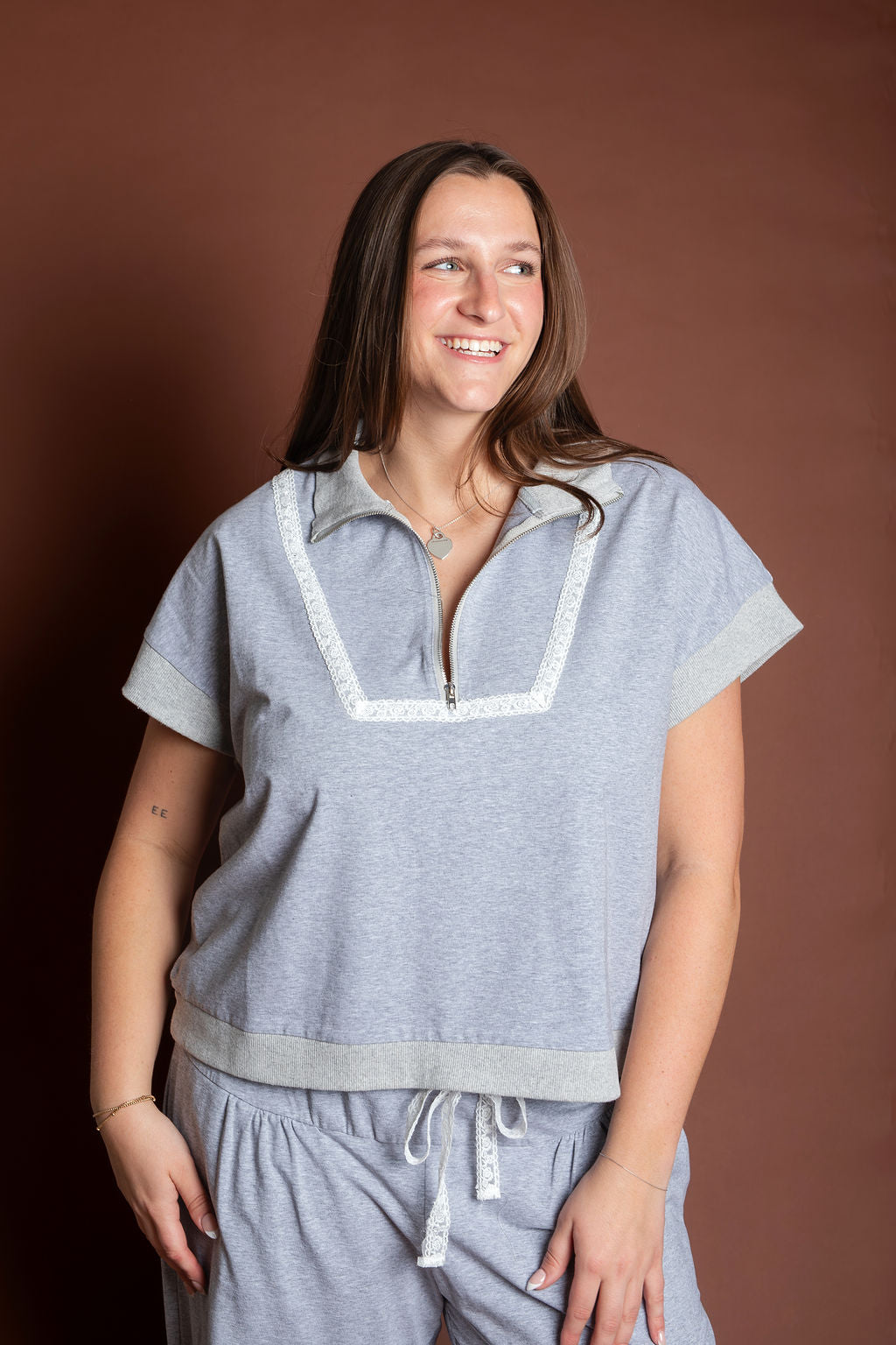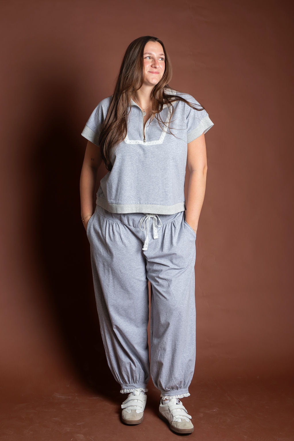 SET: Mel Heather Grey Lace Trim Shirt/Sweatpant Set