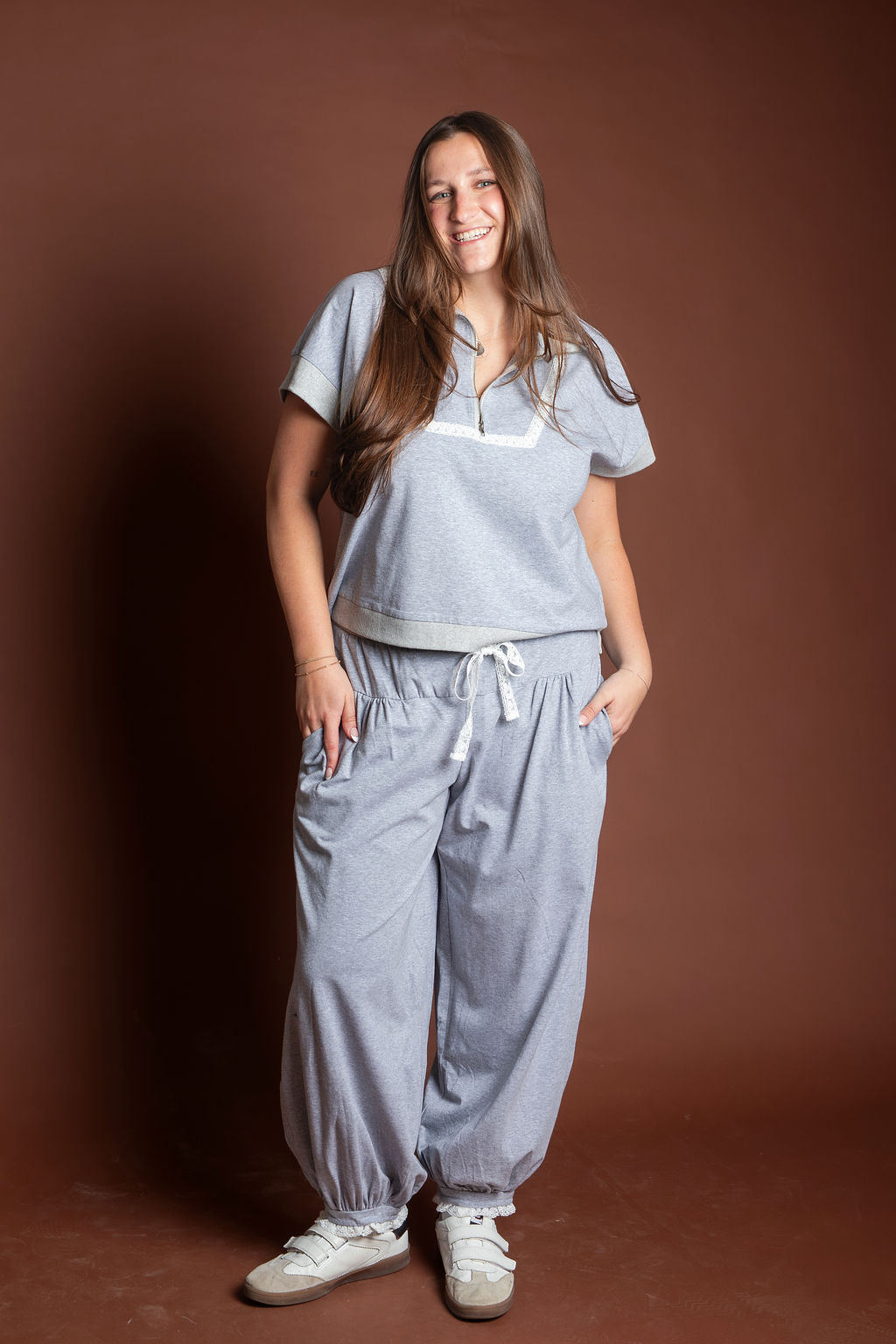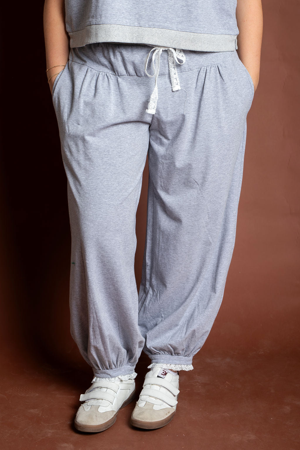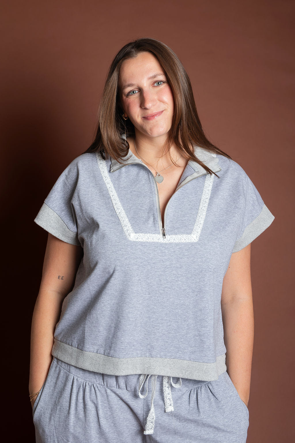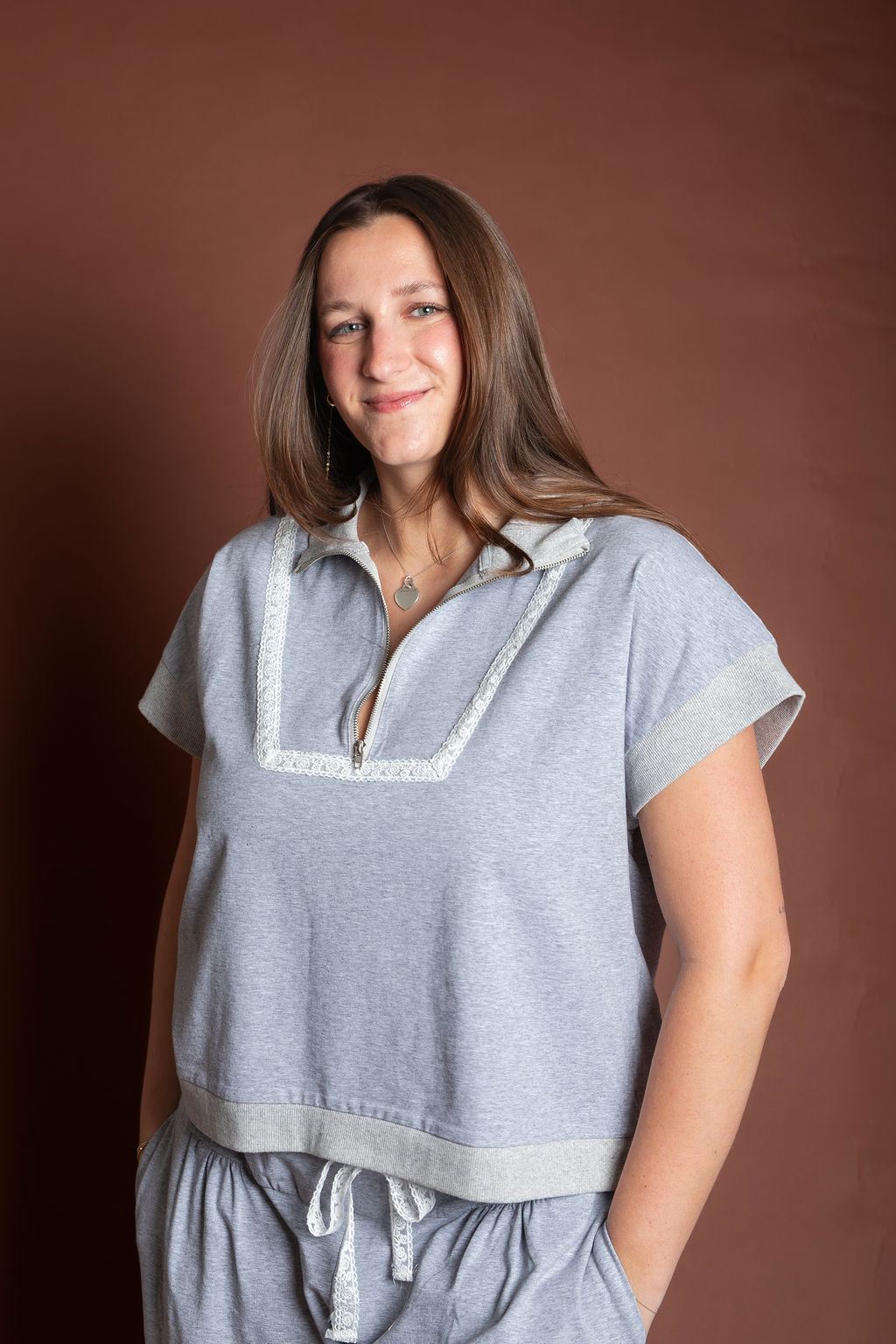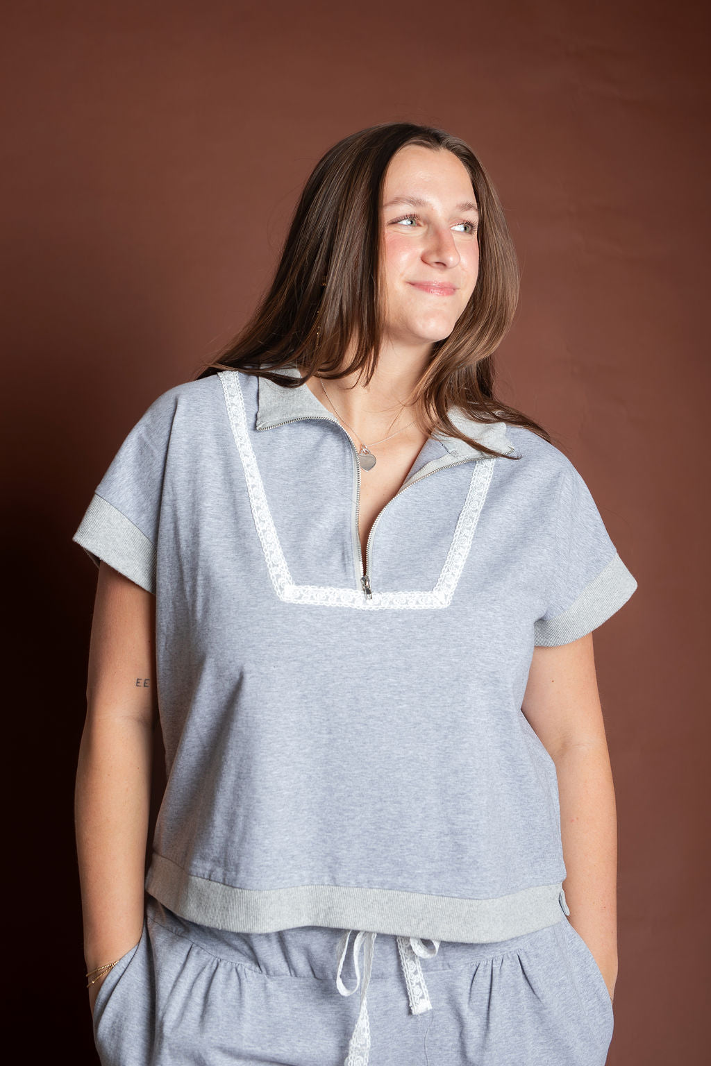 SET: Mel Heather Grey Lace Trim Shirt/Sweatpant Set