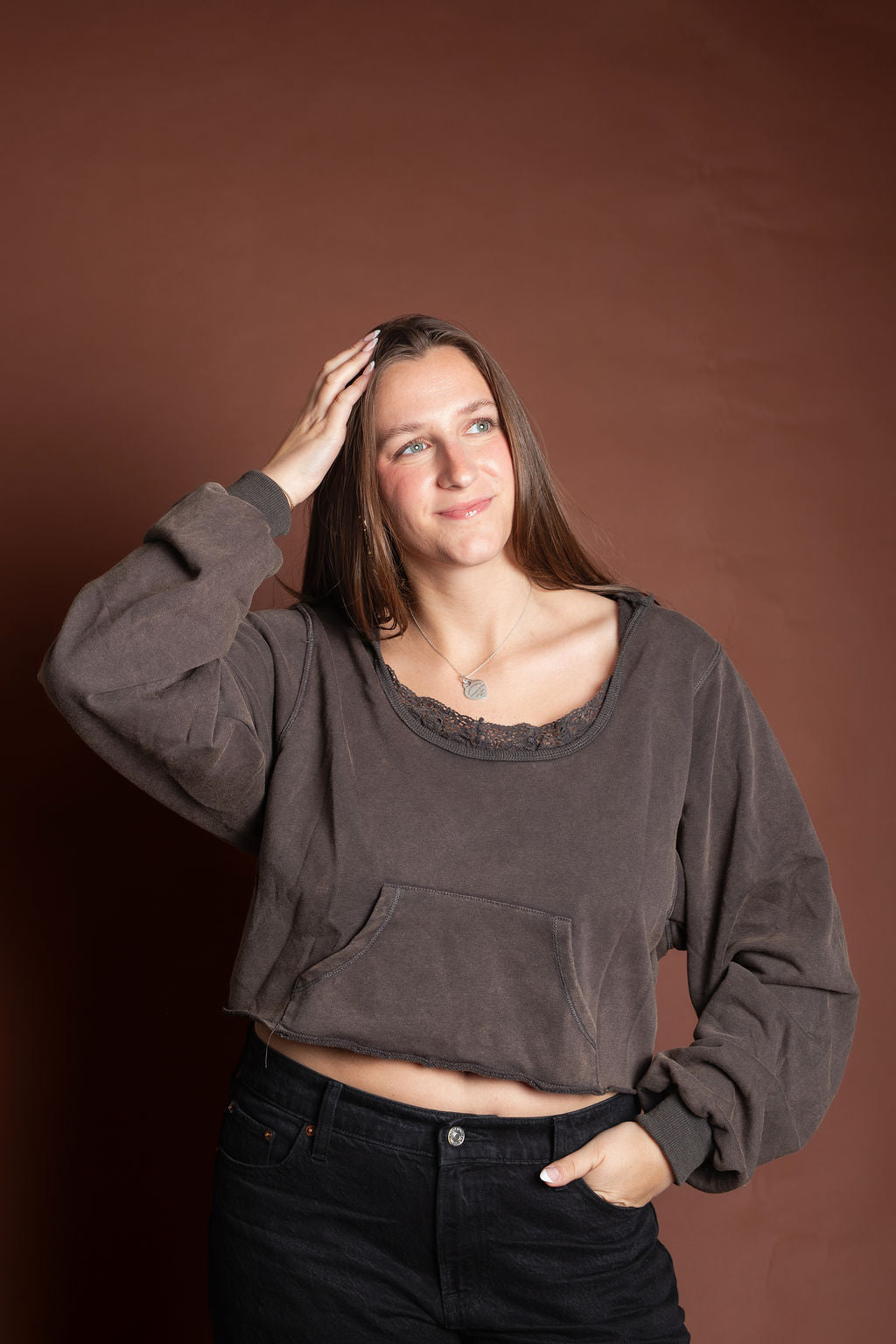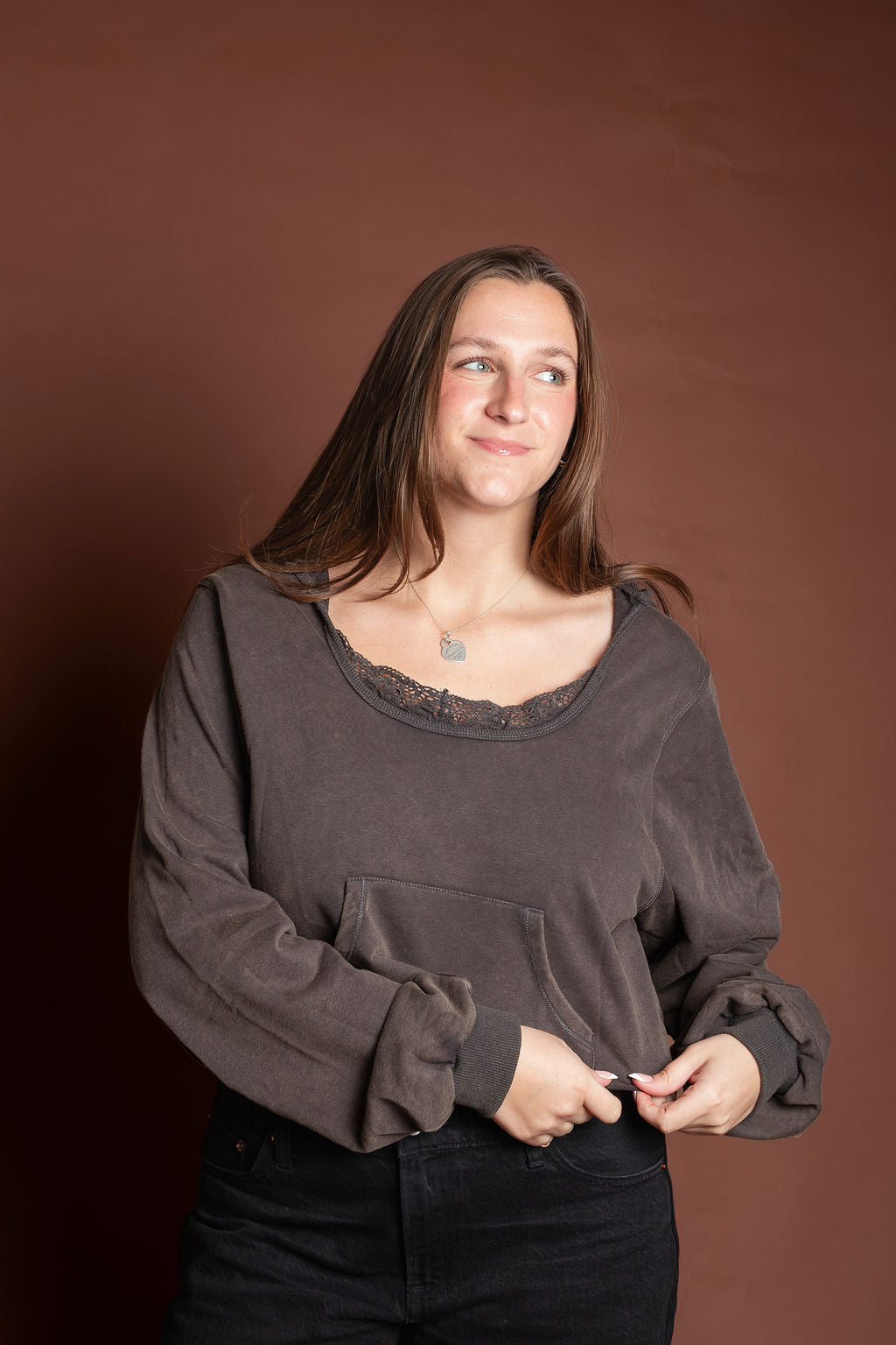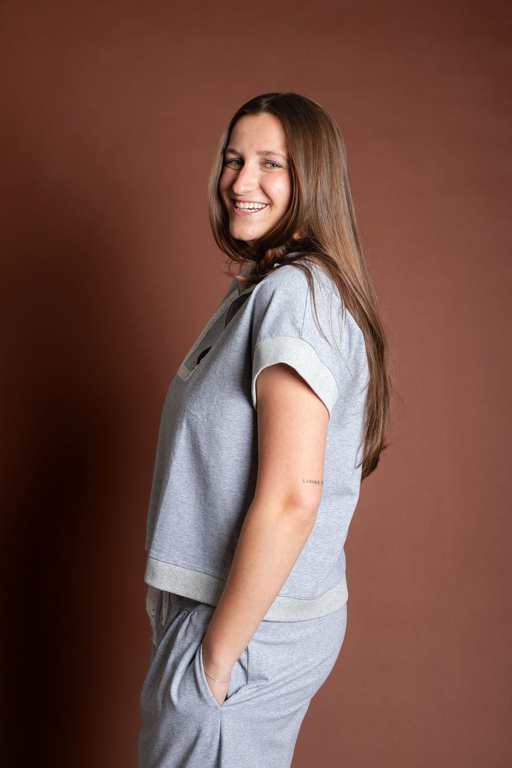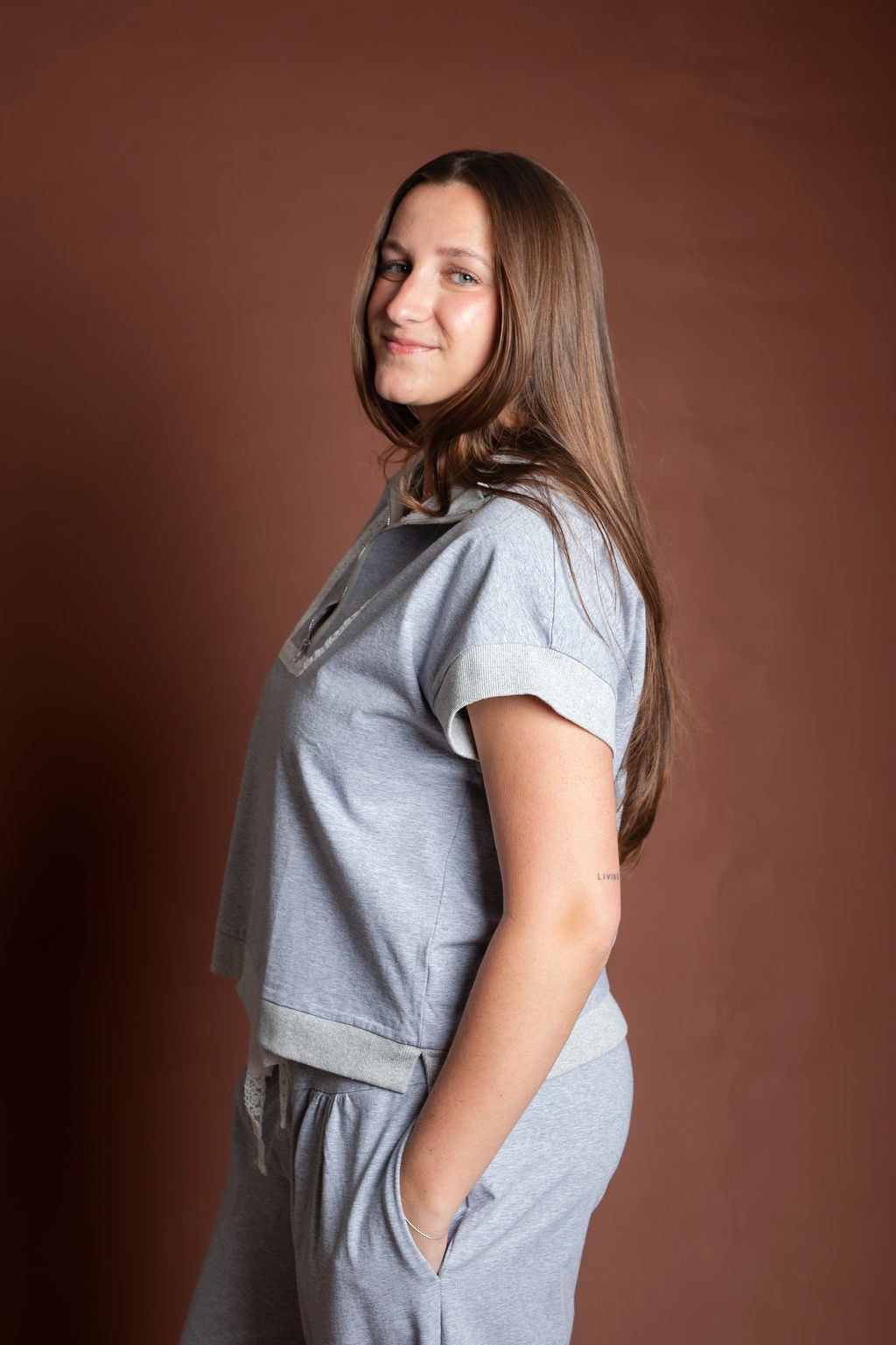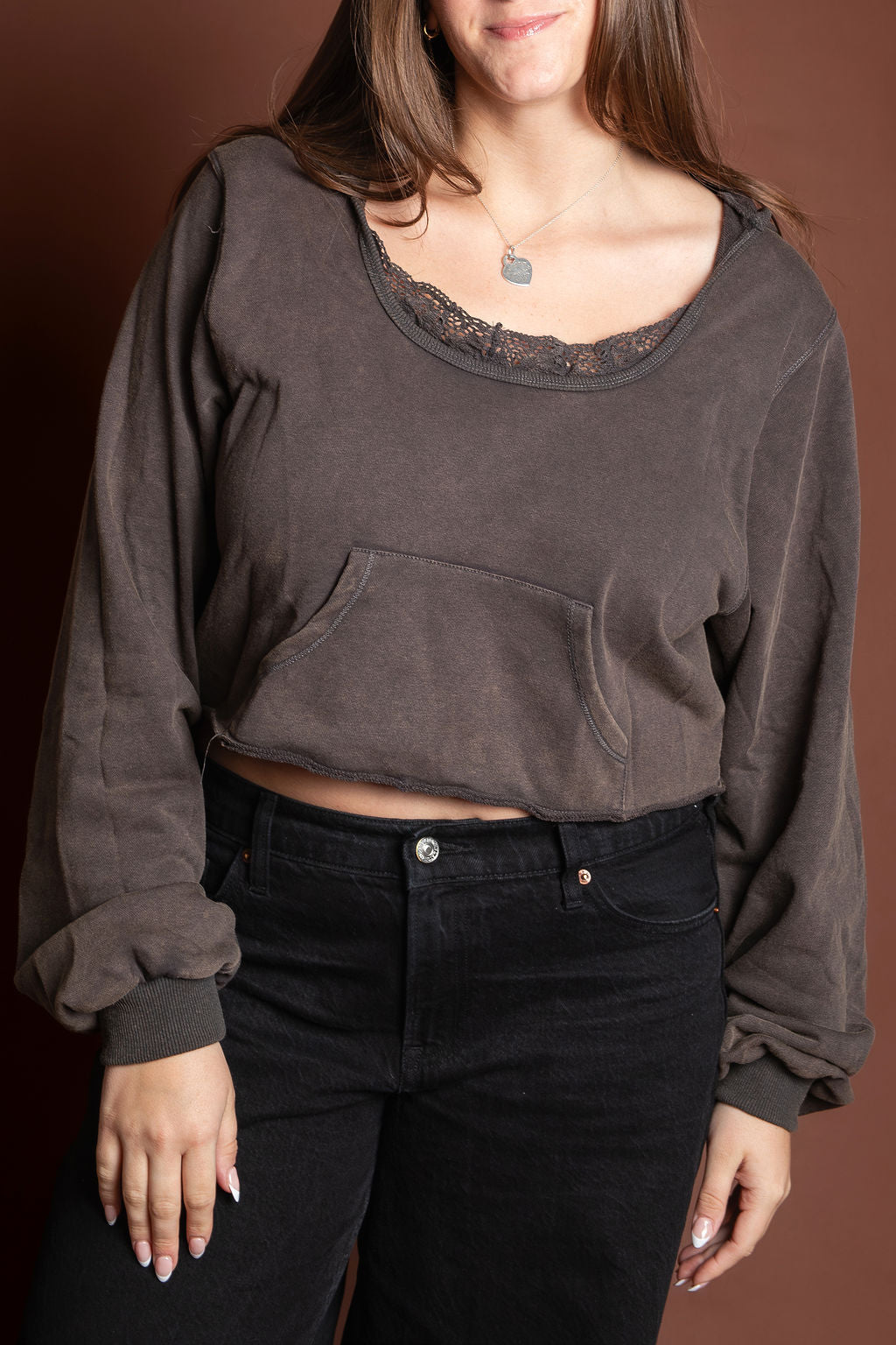 SET: Mel Heather Grey Lace Trim Shirt/Sweatpant Set