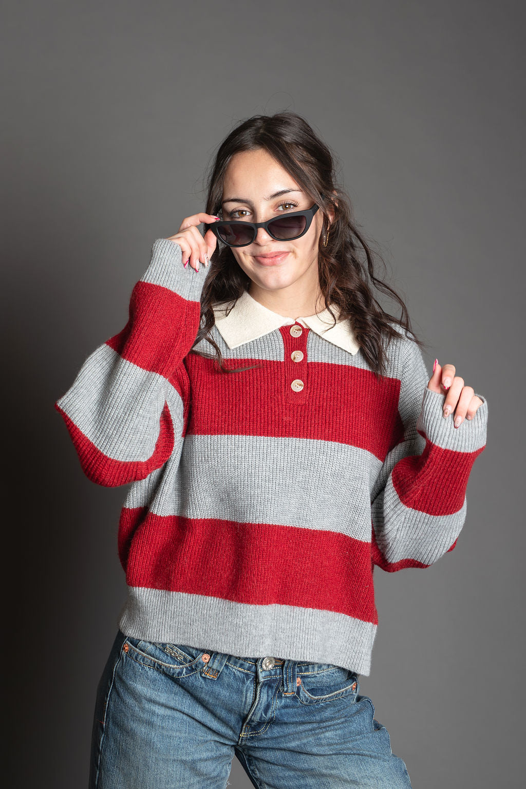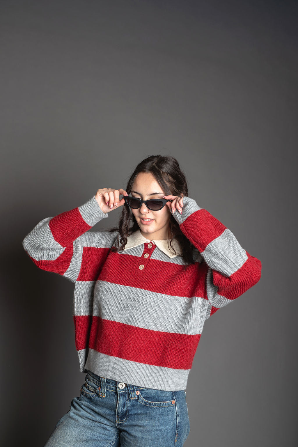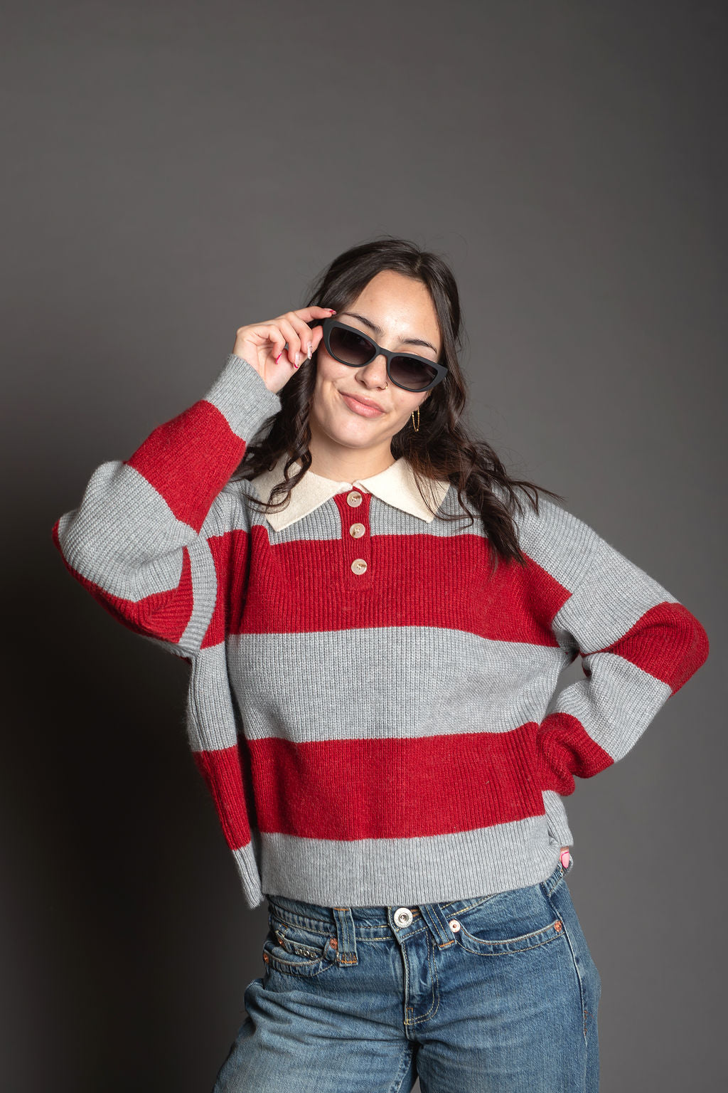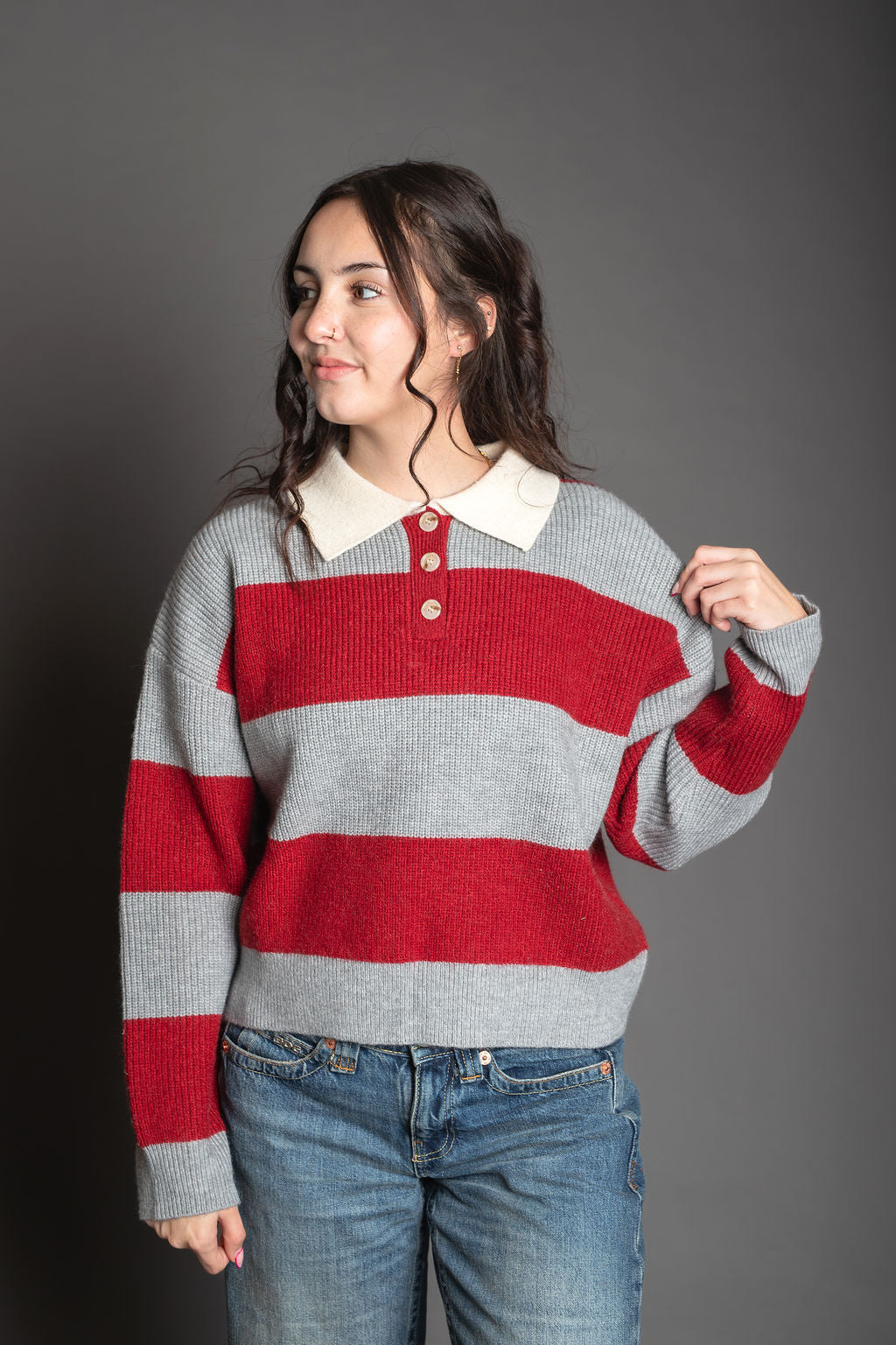 Smart and stylish, this buttoned striped collared long sleeve top offers a polished look with everyday comfort. Featuring classic stripes, a crisp collar, and full button-down front, it's perfect for work, casual outings, or an OSU Buckeyes game!!