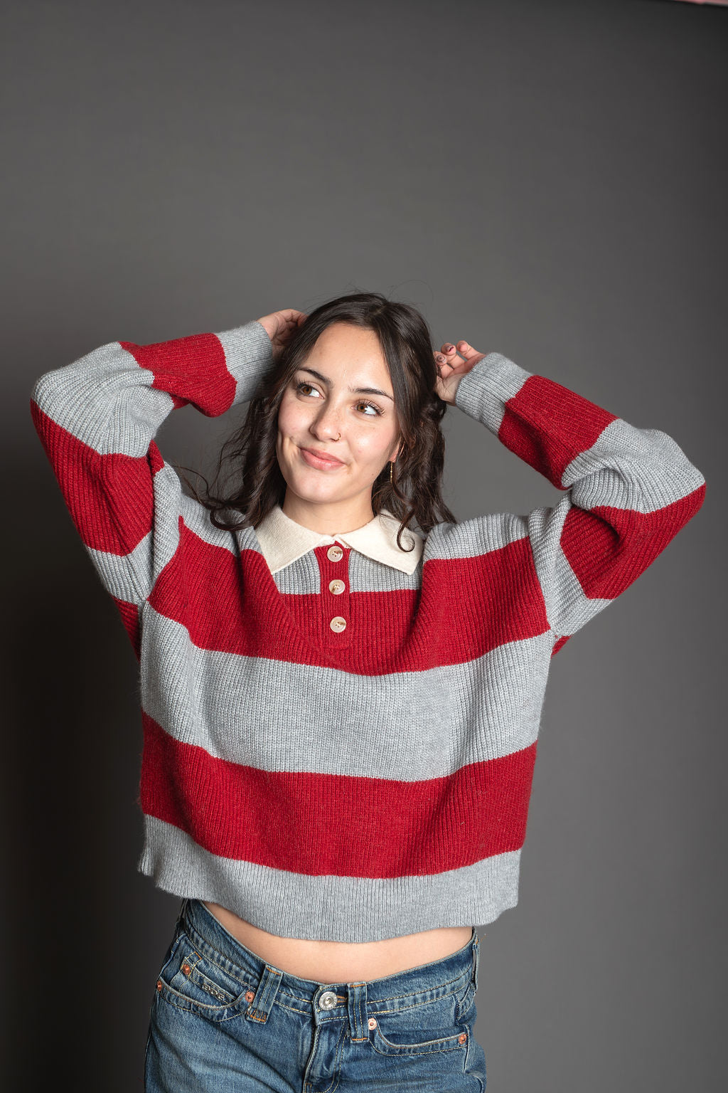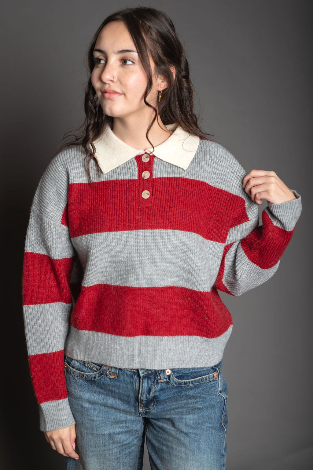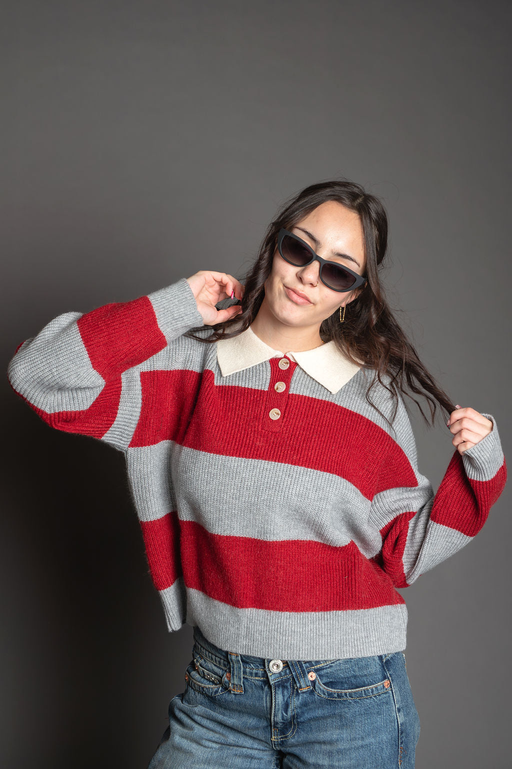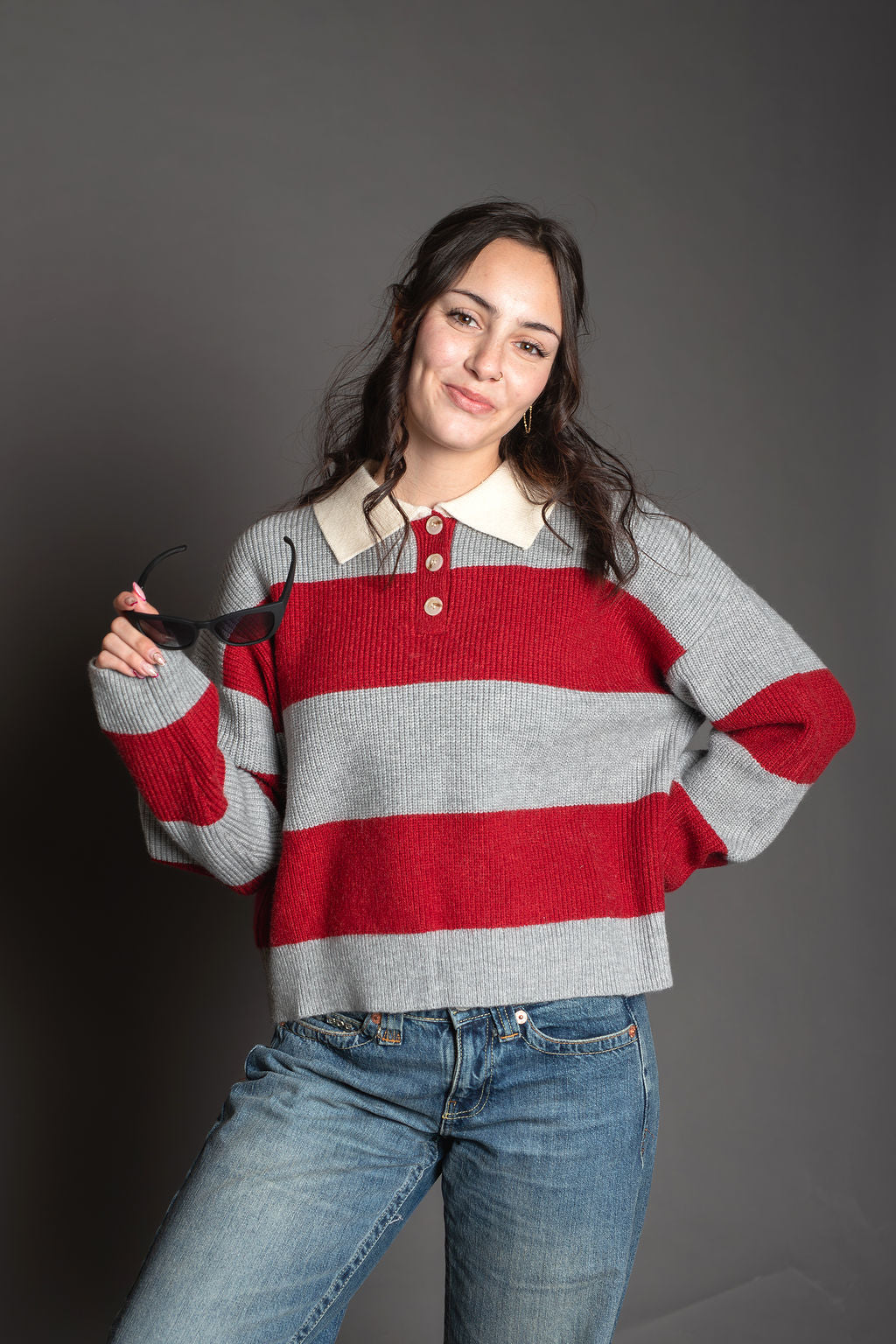 Smart and stylish, this buttoned striped collared long sleeve top offers a polished look with everyday comfort. Featuring classic stripes, a crisp collar, and full button-down front, it's perfect for work, casual outings, or an OSU Buckeyes game!!